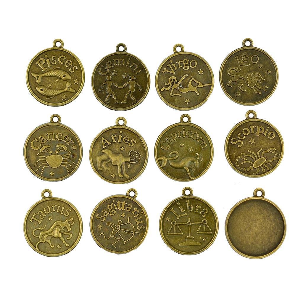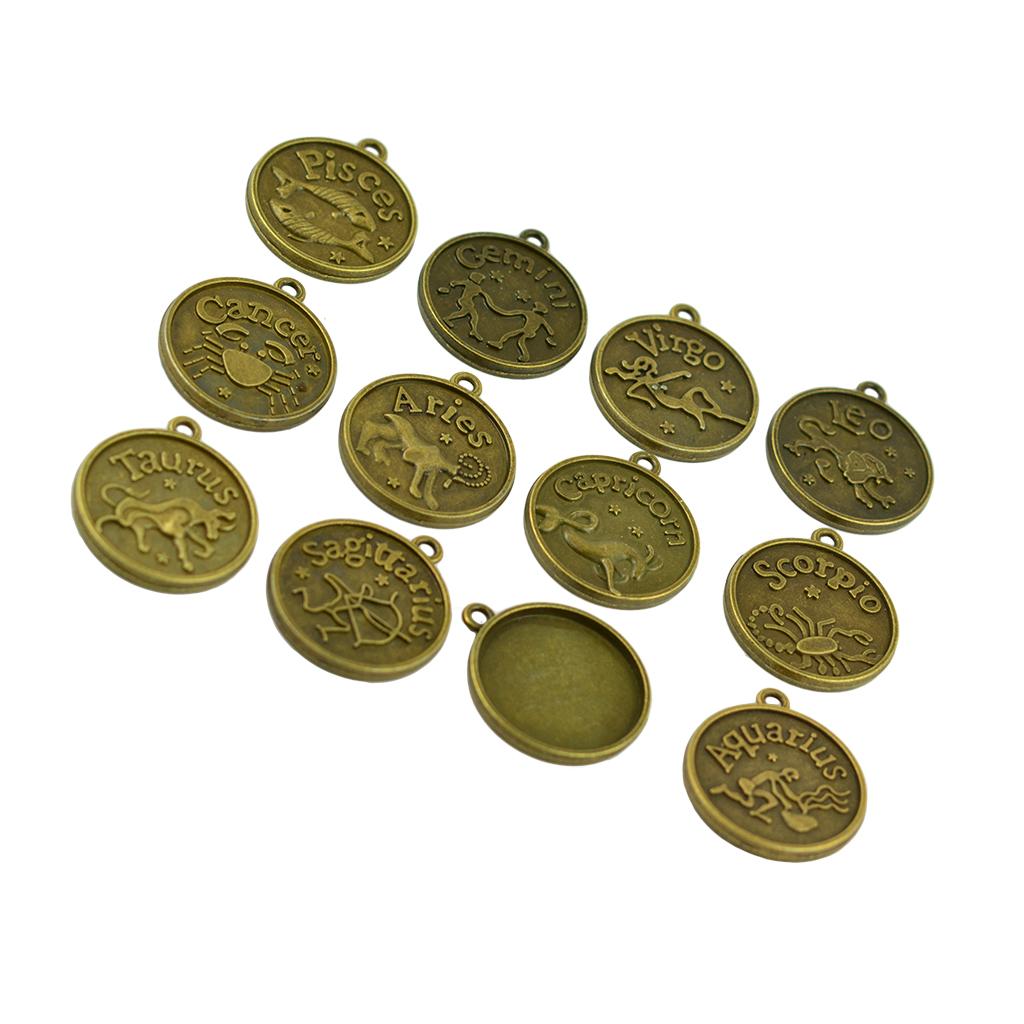 12 Pieces Zodiac Constellation Blank Cabochon Pendant