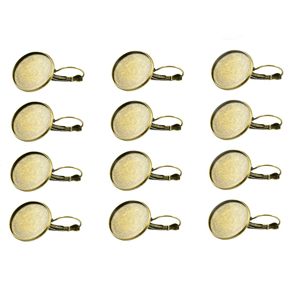 12pcs Hook Earring Cabochon Settings Round DIY Jewelry Making Bronze Brass