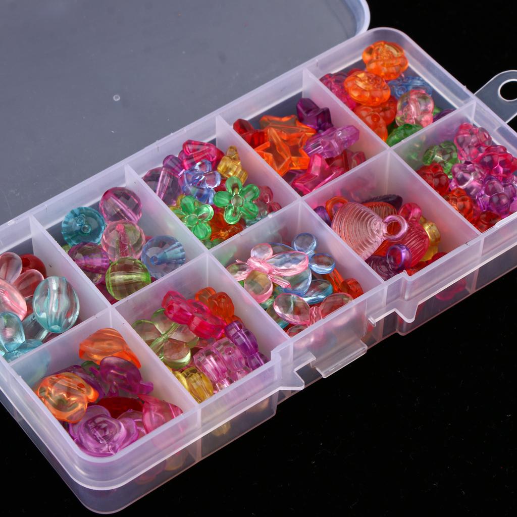 About 180 pieces of colorful beads in different shapes, sizes, and colors.