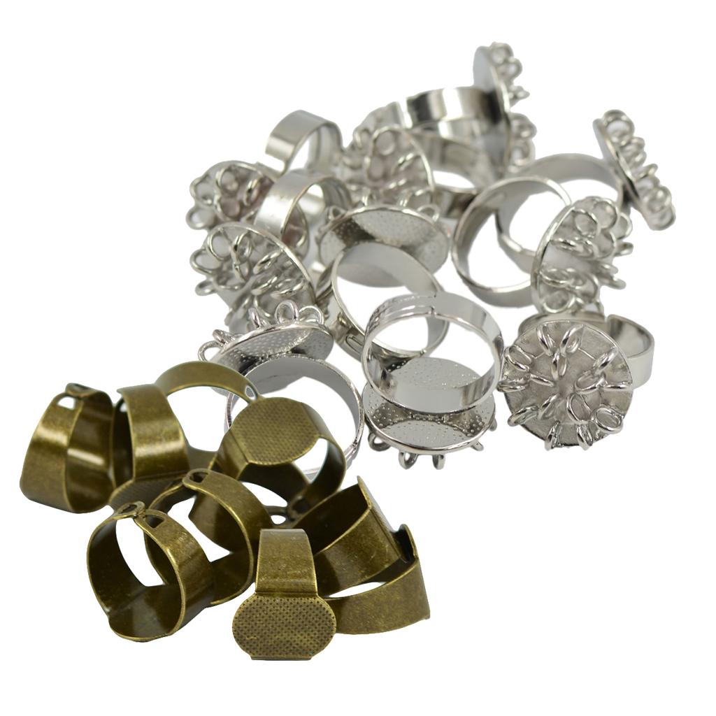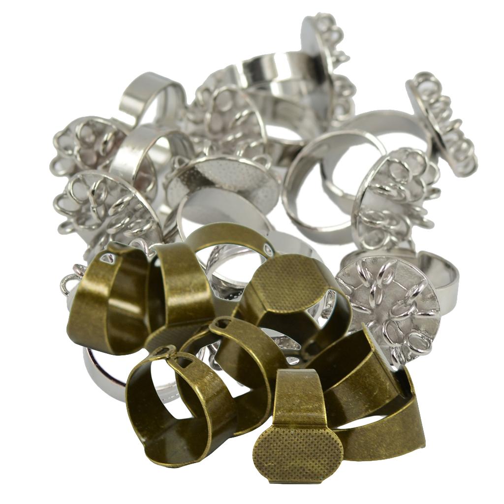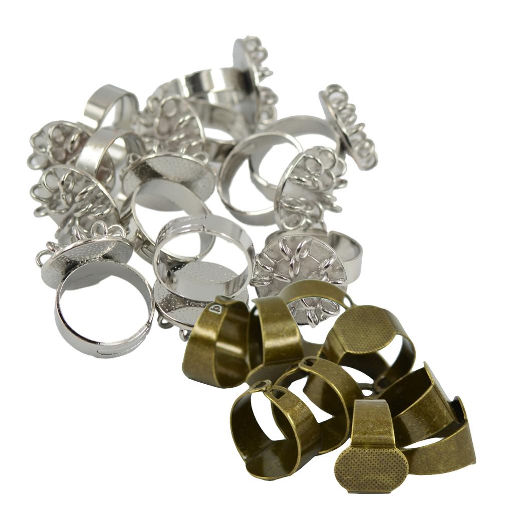20 Pieces Adjustable Brass Ring Blank Oval/Round Bezel Cabochon DIY Ring