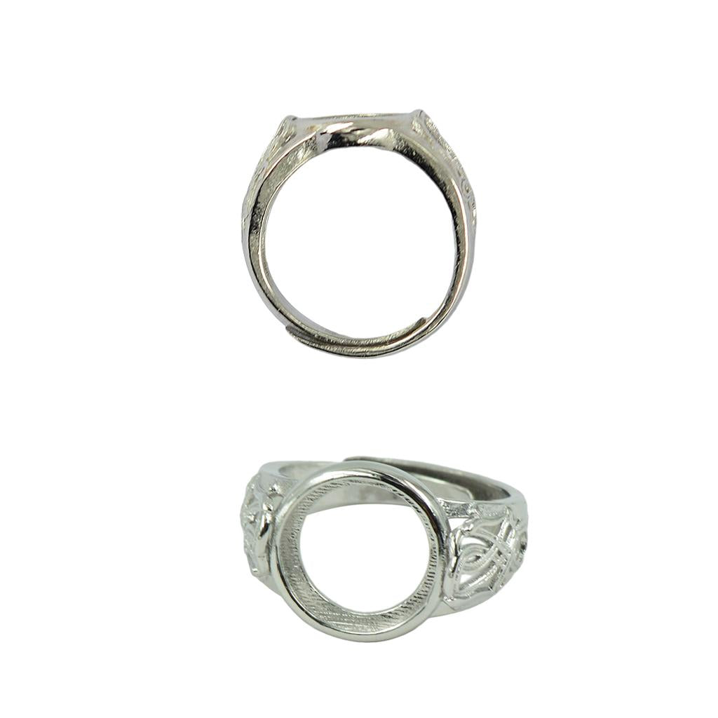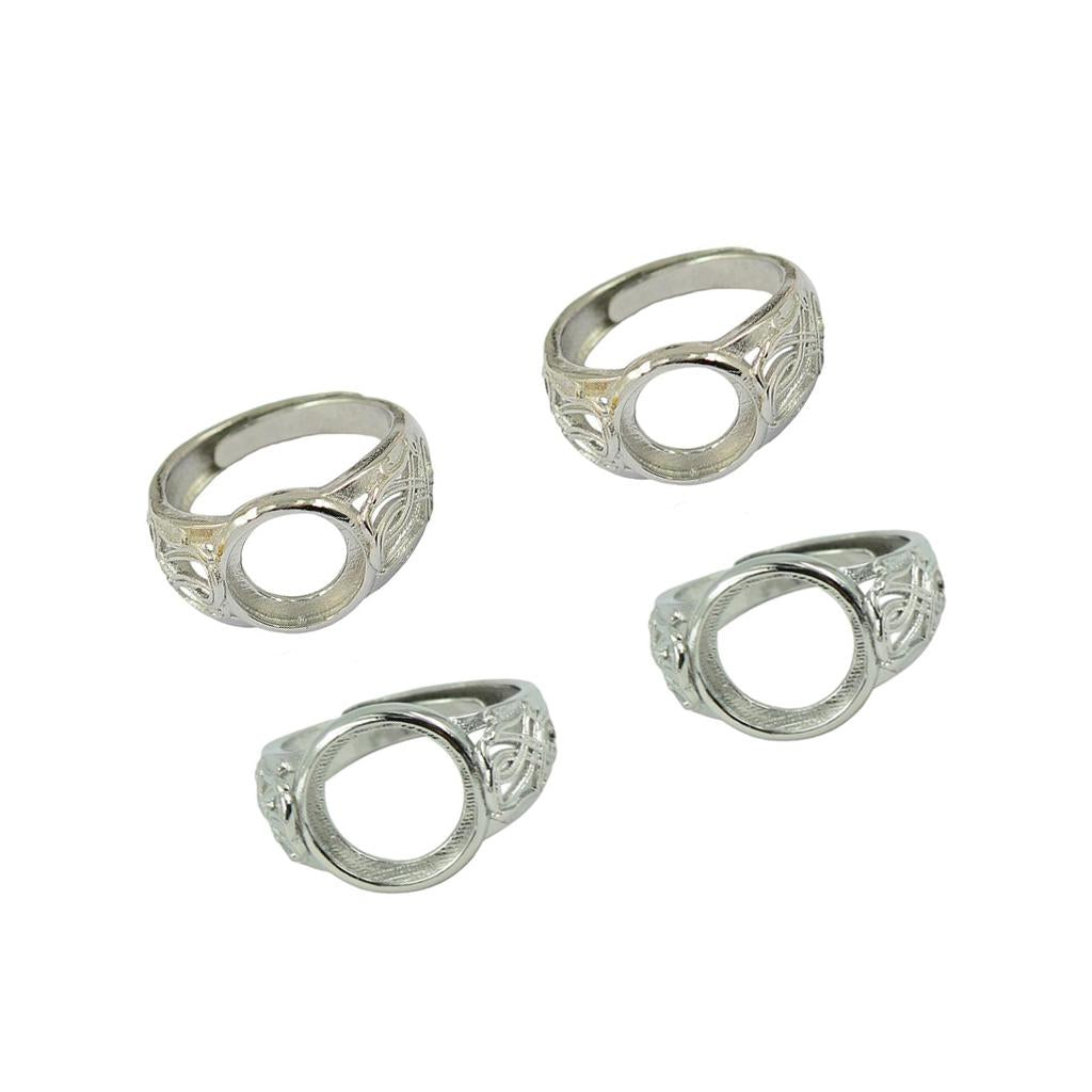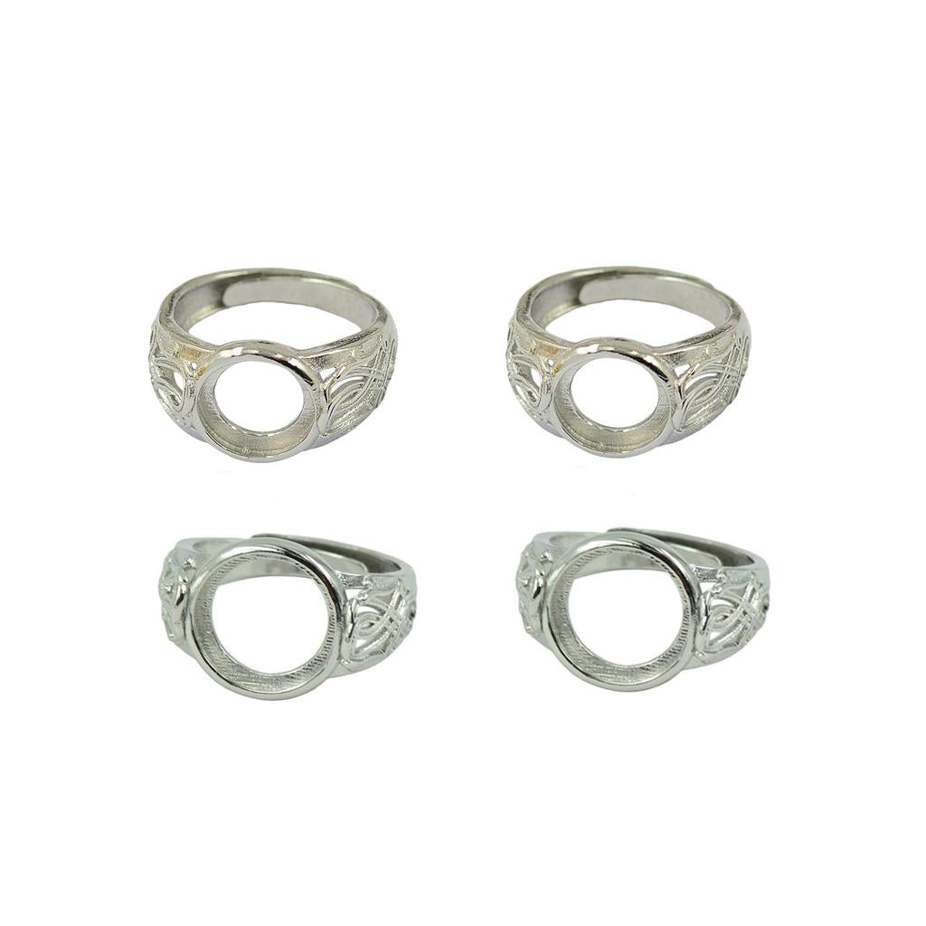 4 Pieces Silver 10mm 12mm Round Bezel Adjustable Flower Ring Blank Bases