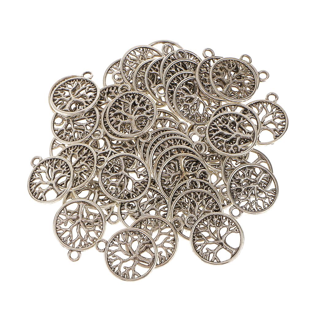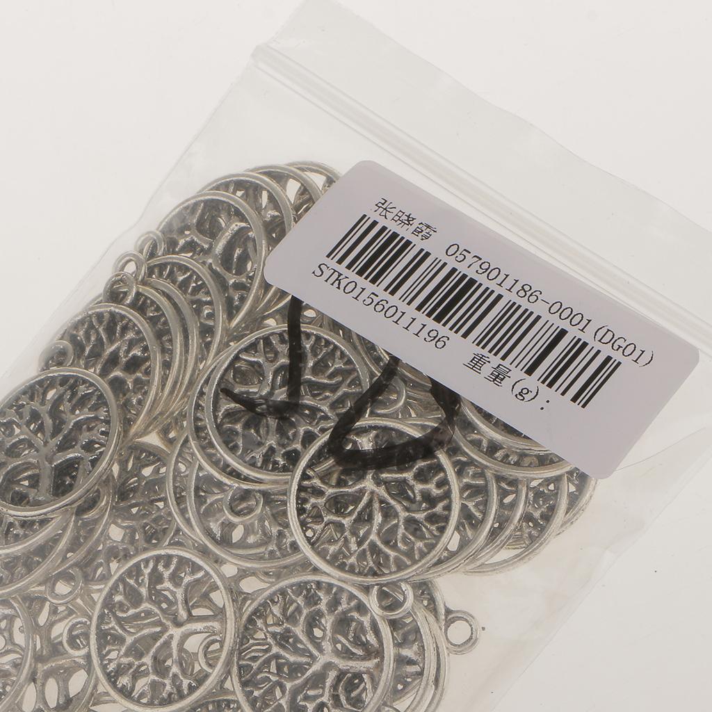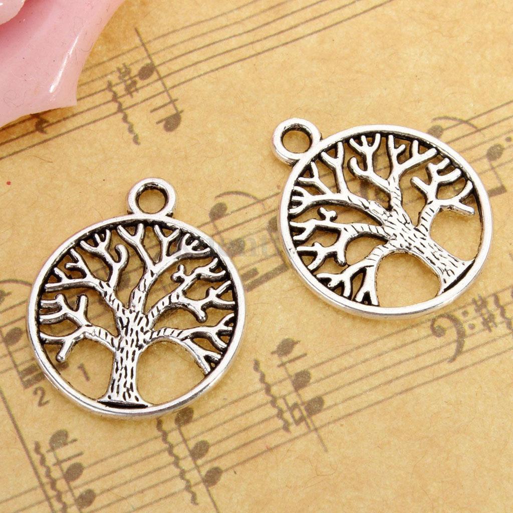 50Pcs Antique Silver Tree of Life Circle Charms Pendants Jewelry Findings