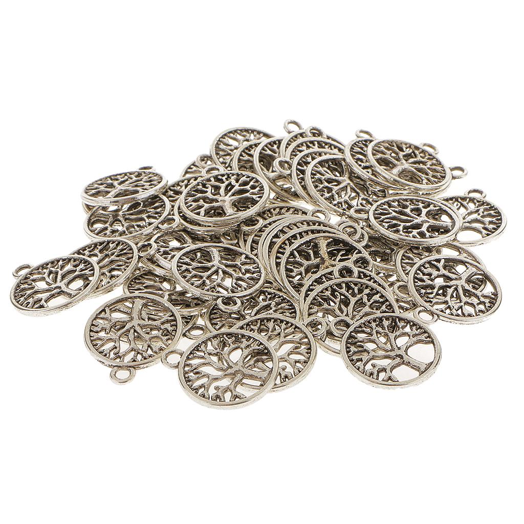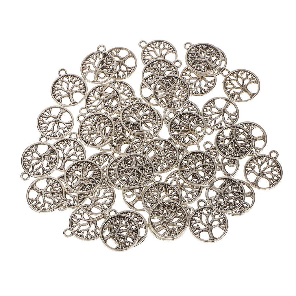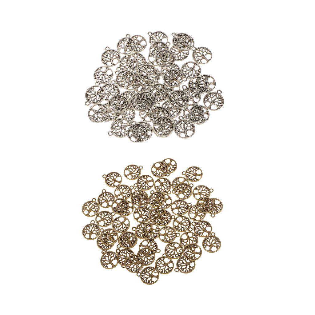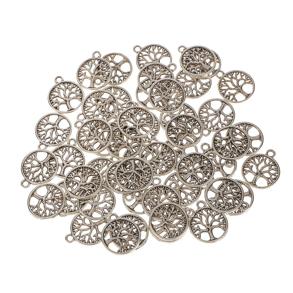 50Pcs Antique Silver Tree of Life Circle Charms Pendants Jewelry Findings