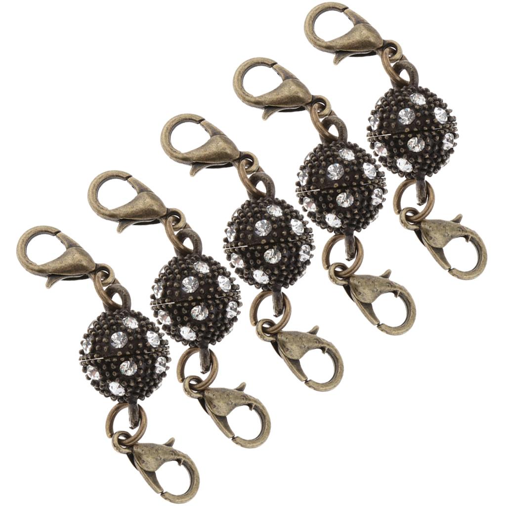 5Pcs Ball Rhinestone Lobster Magnetic Clasp DIY Jewelry Making Findings 10mm