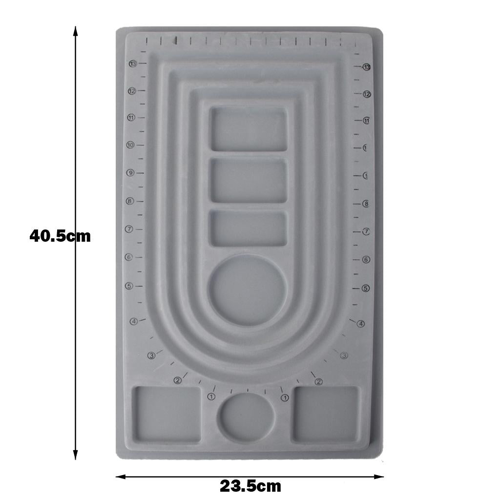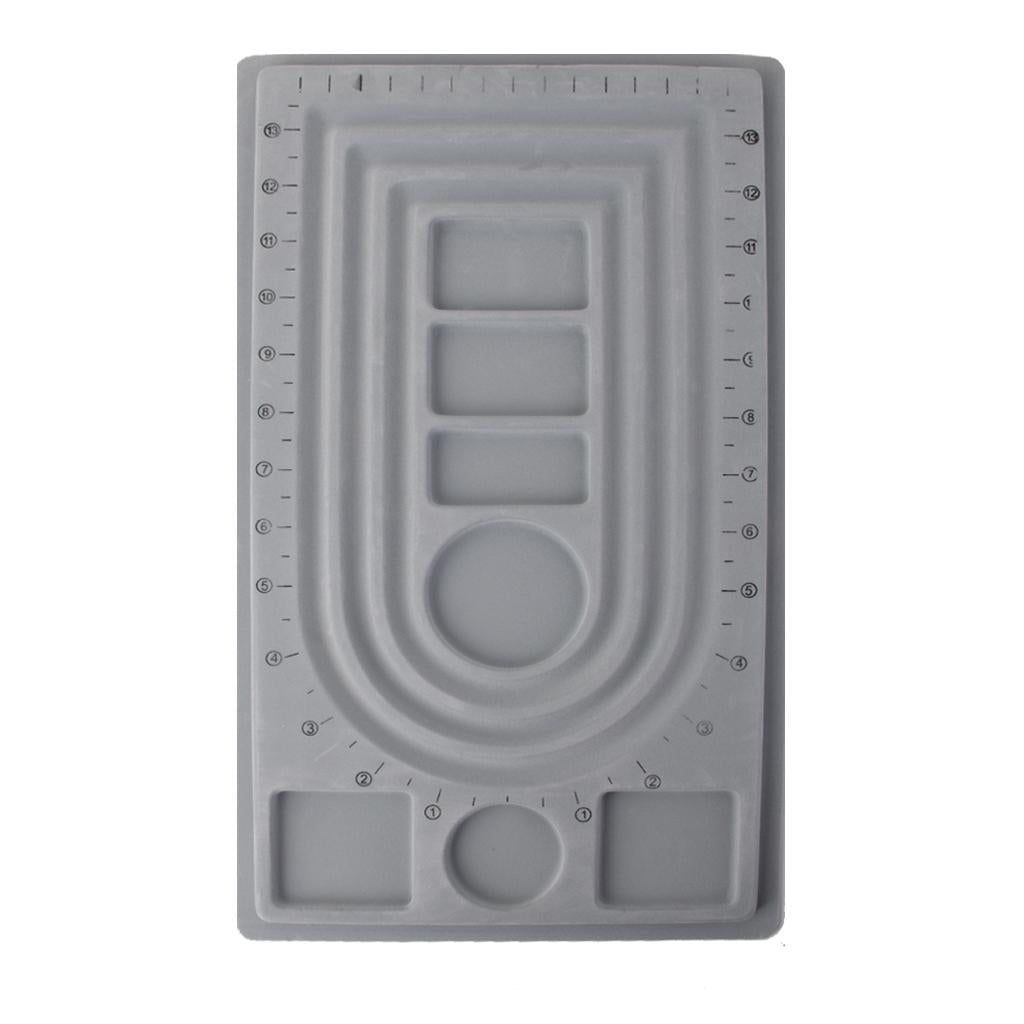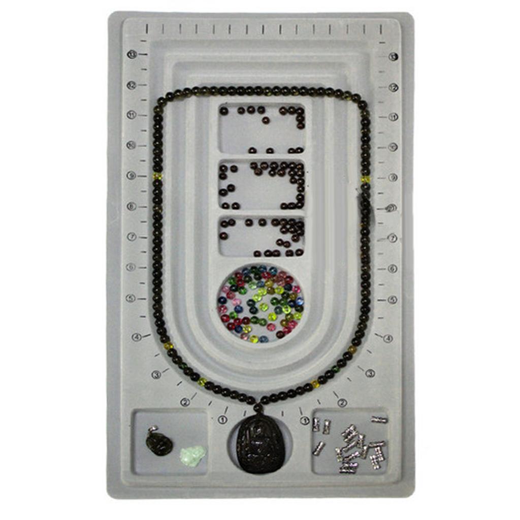Introducing necklace and bracelet design disk and measure tool is good for professional bead and necklace designing.This DIY tools is for Jewelry and other designs. The grooves can help beads necklace design plate positioning, scale of tray more let you easily master the length of beaded work. The square on the board and the semicircular canals convenient beads store tools and temporary beads to be used. This product comes with palstic flannel meterial and excellent gray design.