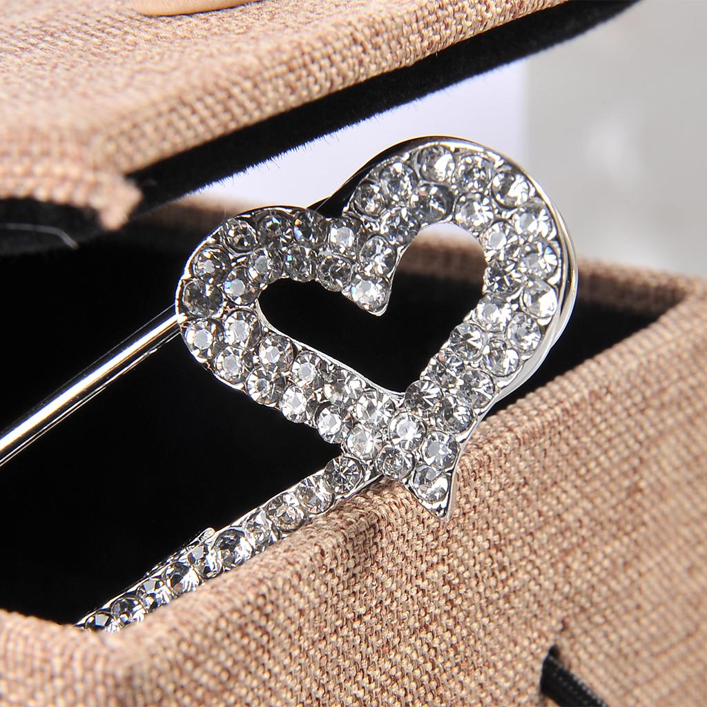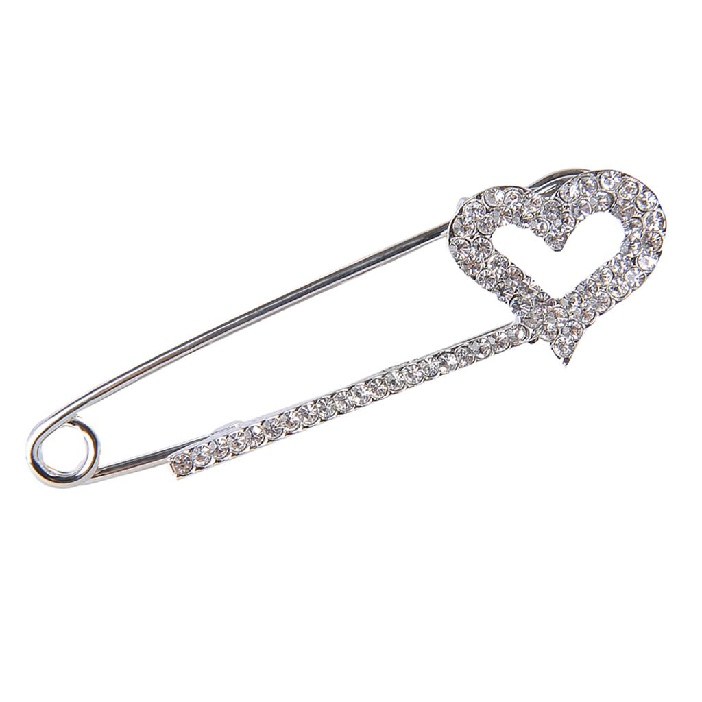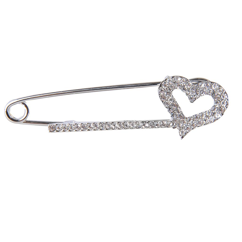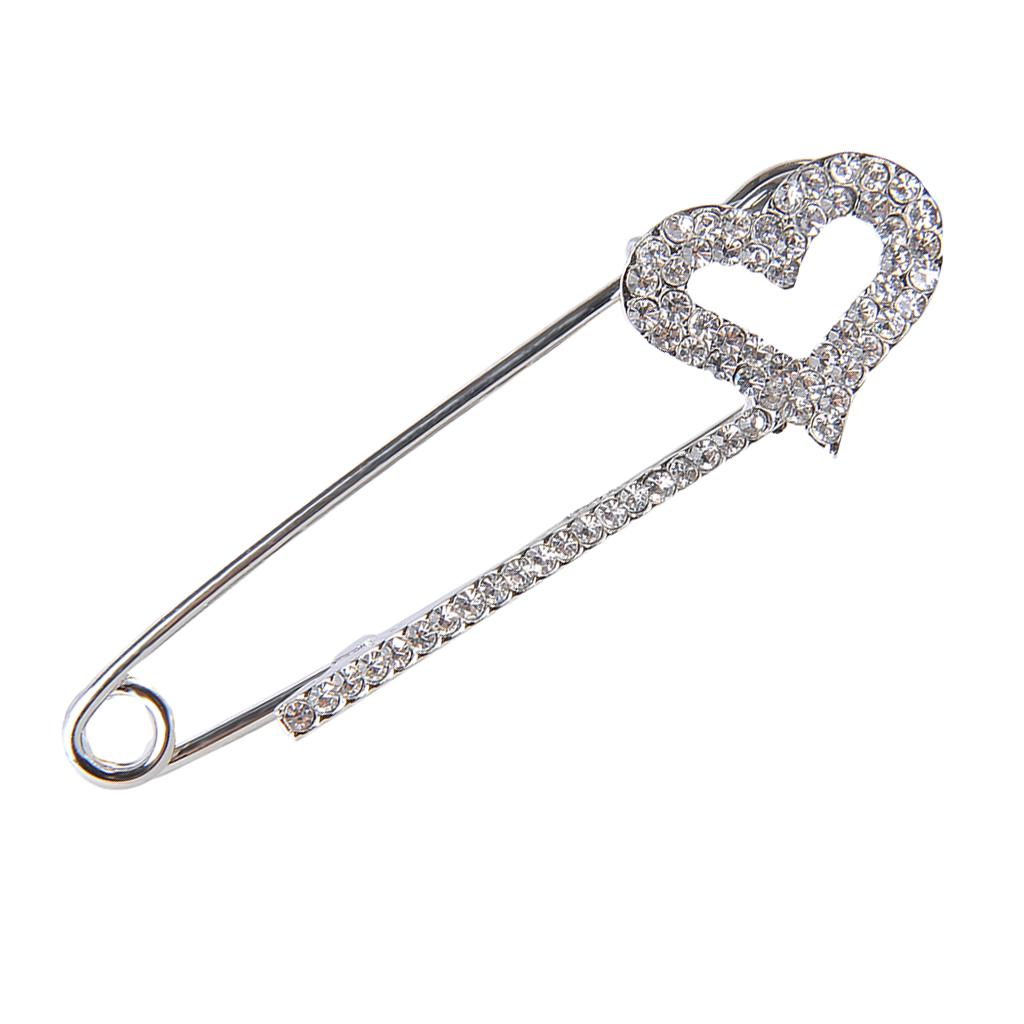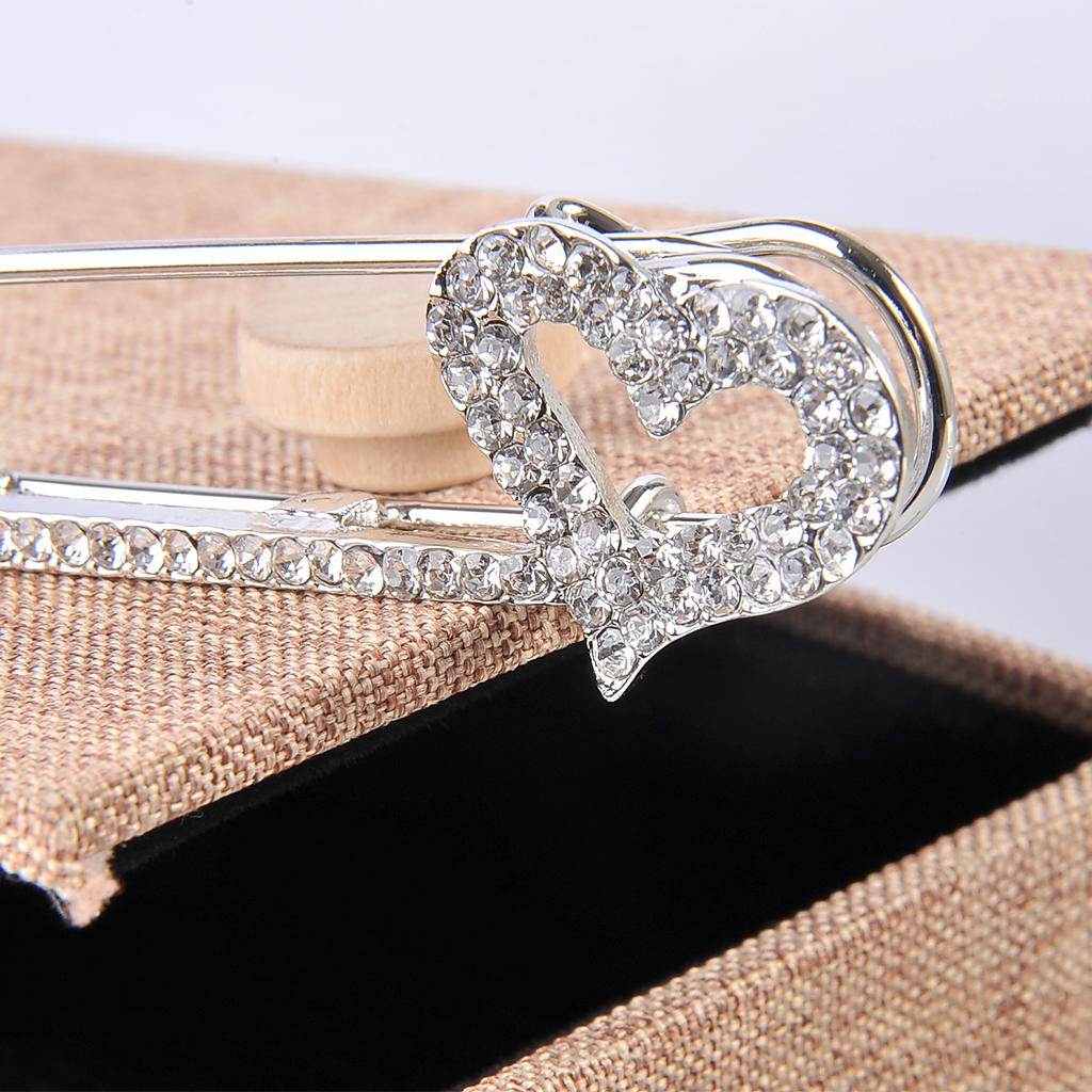 Crystal Safety Pin Scarf Coat Gown Clip Collar Lapel Pin Heart Silver