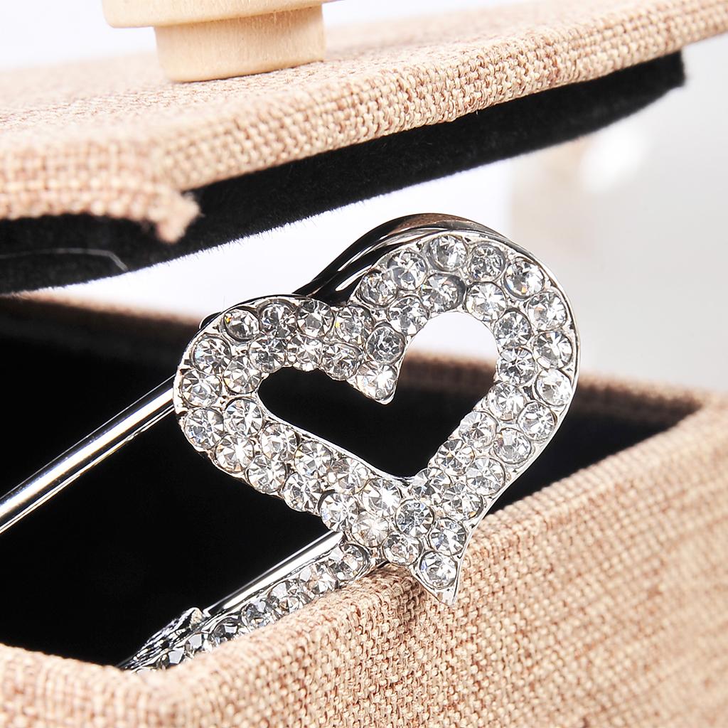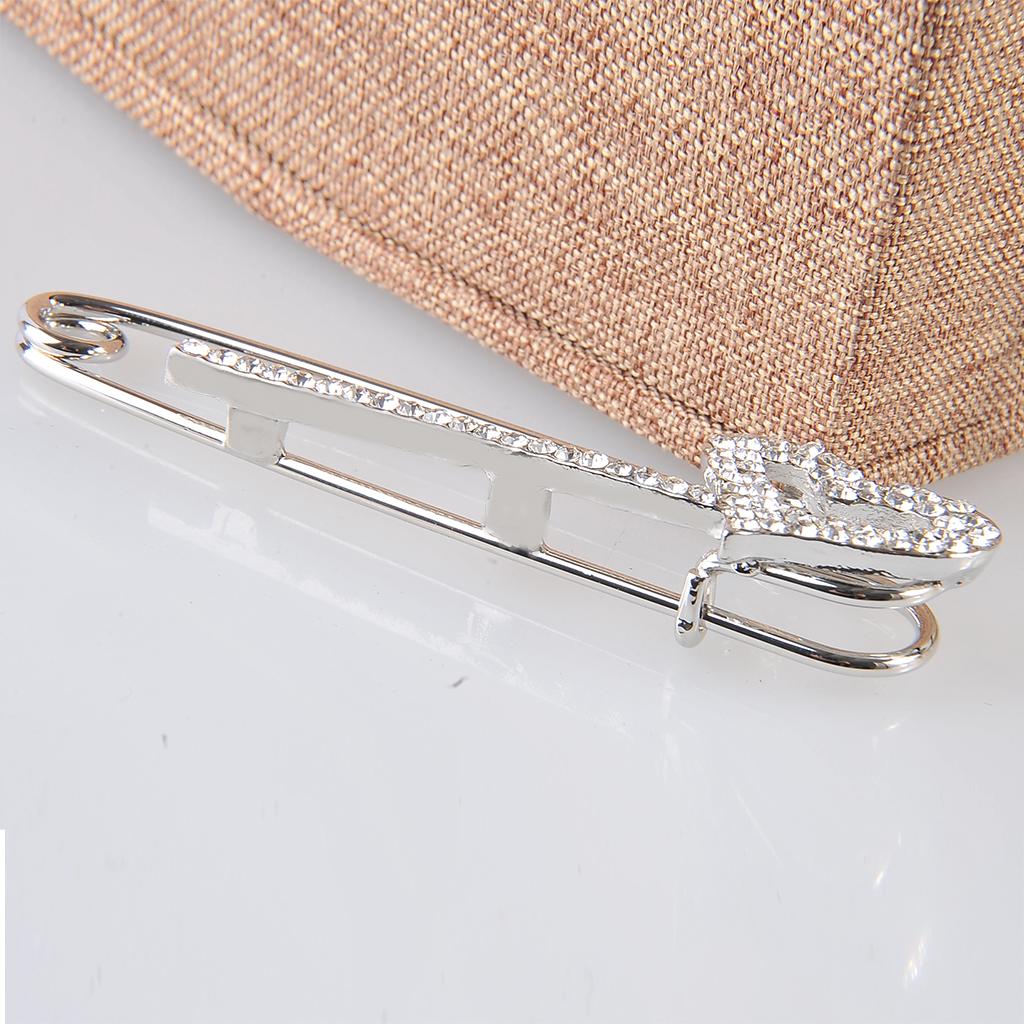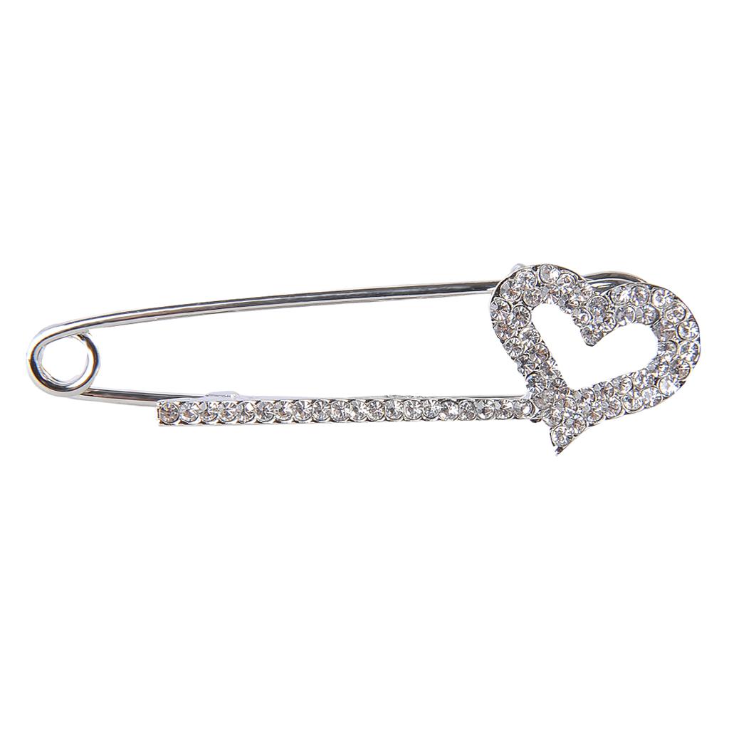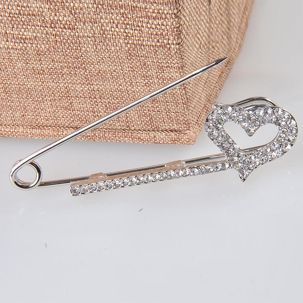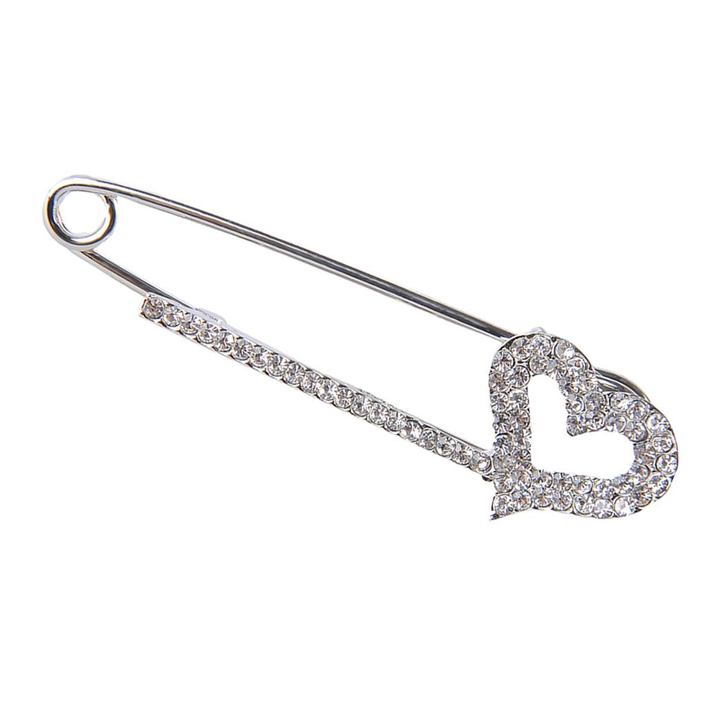 Crystal Safety Pin Scarf Coat Gown Clip Collar Lapel Pin Heart Silver