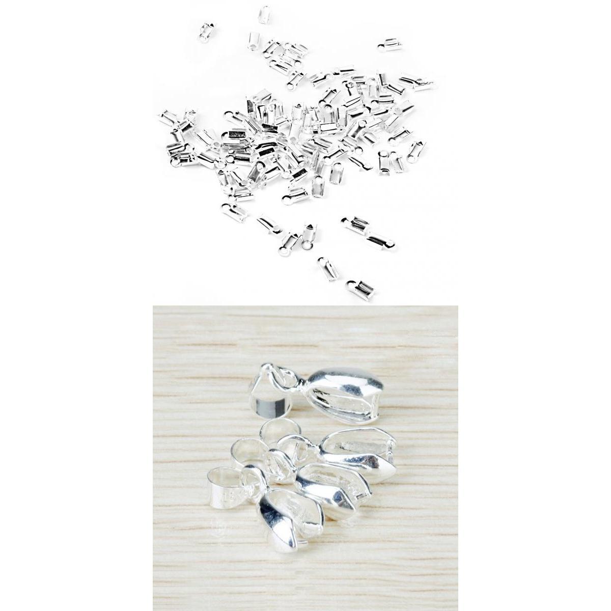 Fashionable Silver Plated Pendant Pinch Bails 13mm Pack of 20PCS + Pack of 100PCS Folding Crimps Silver