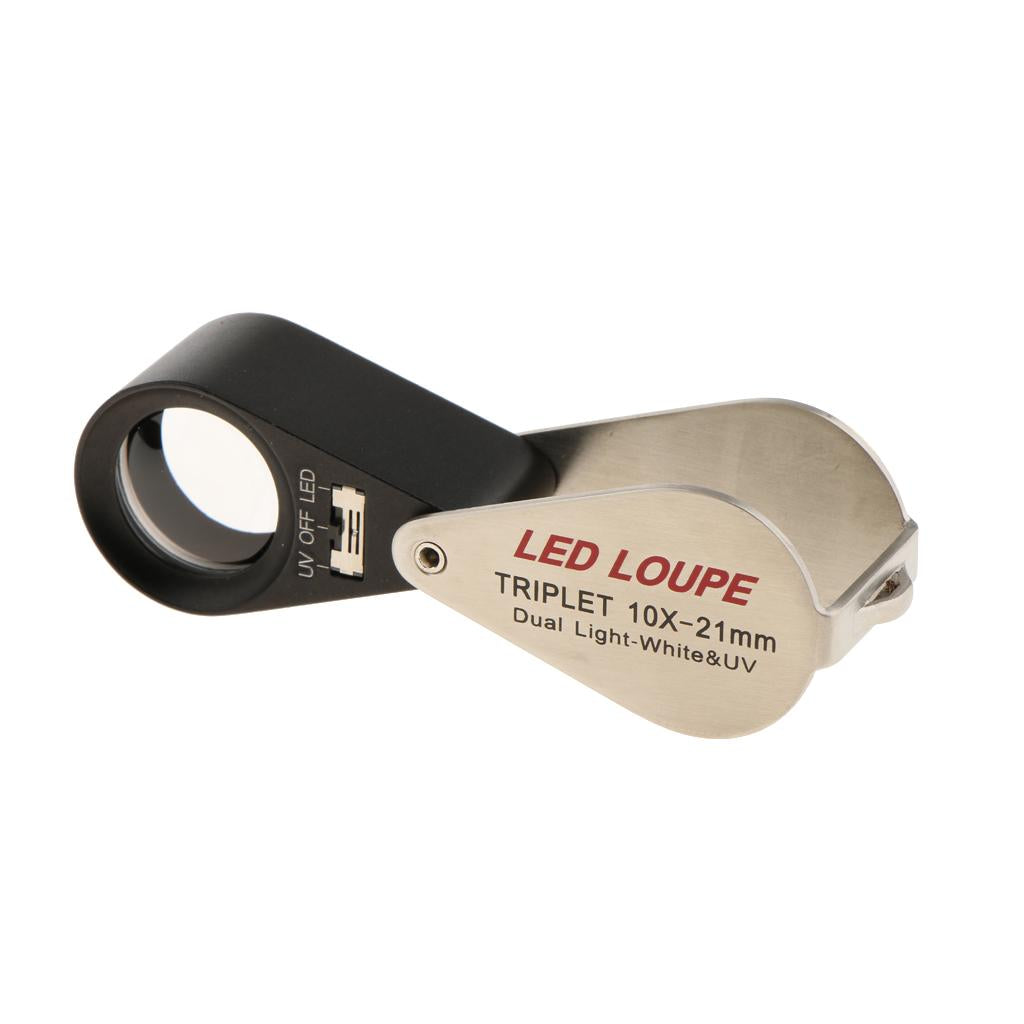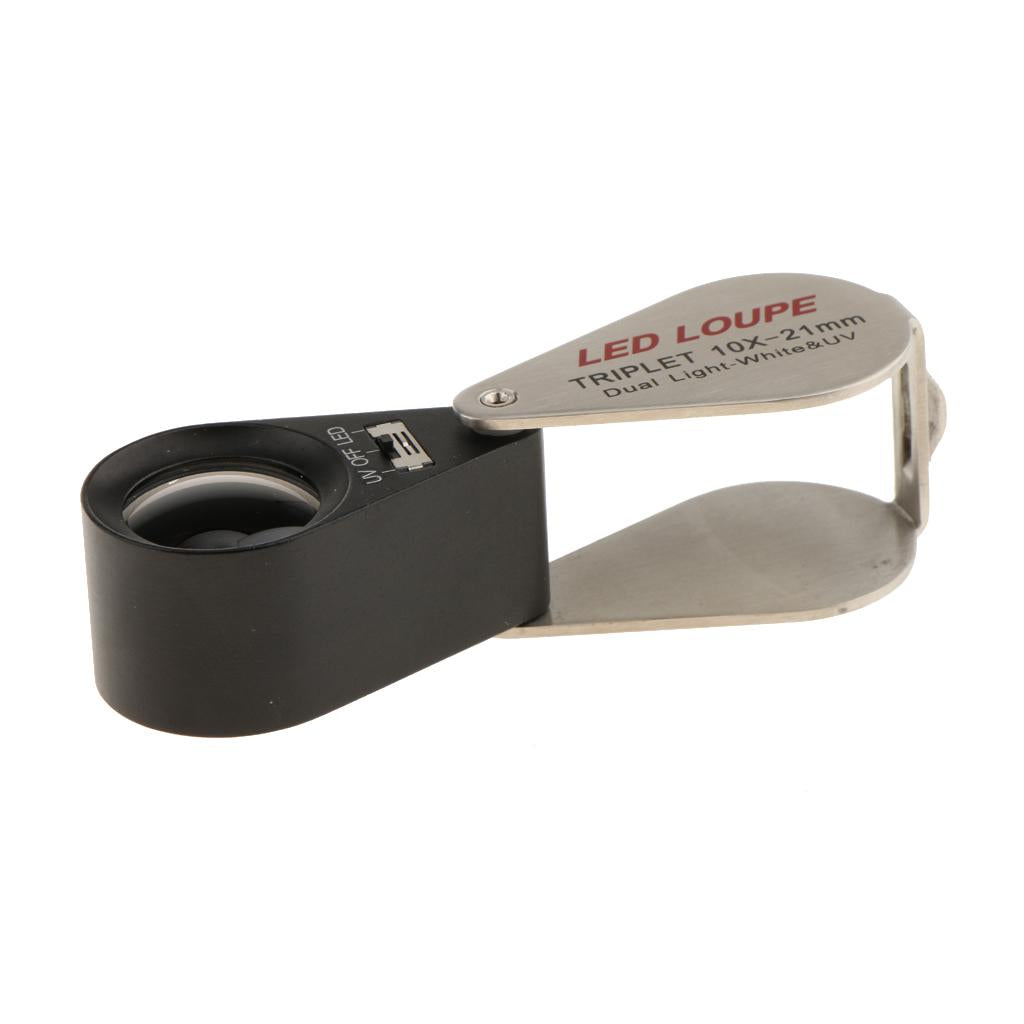 Foldable portable UV and LED light loupe magnifier power with LR927 battery (battery Not Include)