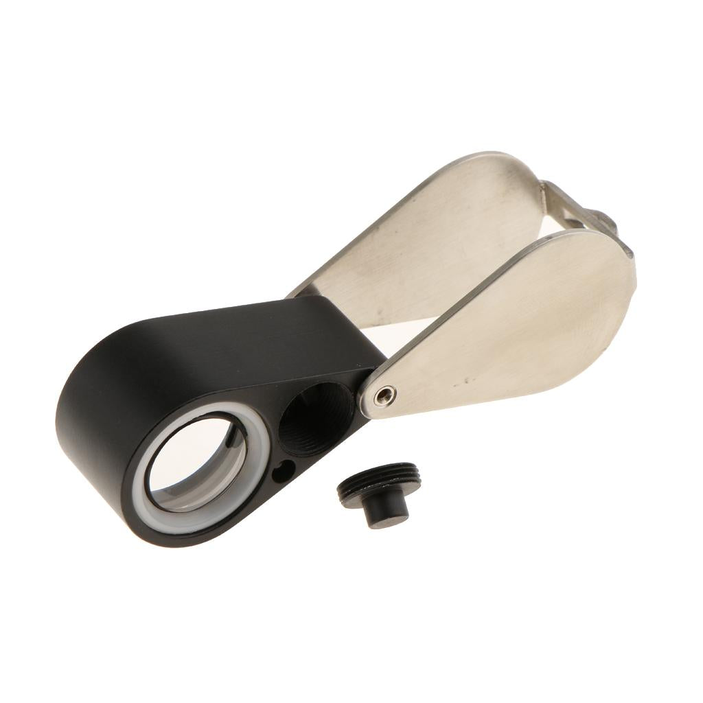 Glass Lens Jewelry Magnifier LED Light Magnification Silver Black 10X