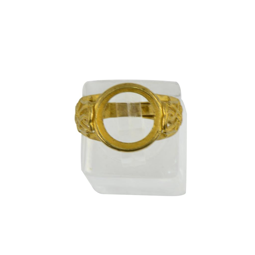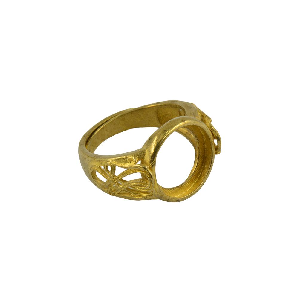 Golden Brass Round Bezel Adjustable Hollow Flower Ring Blank Bases DIY 12mm