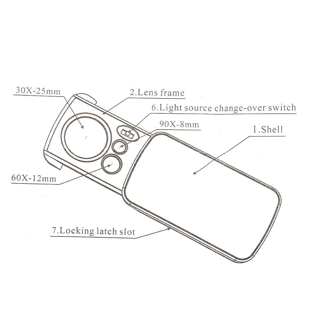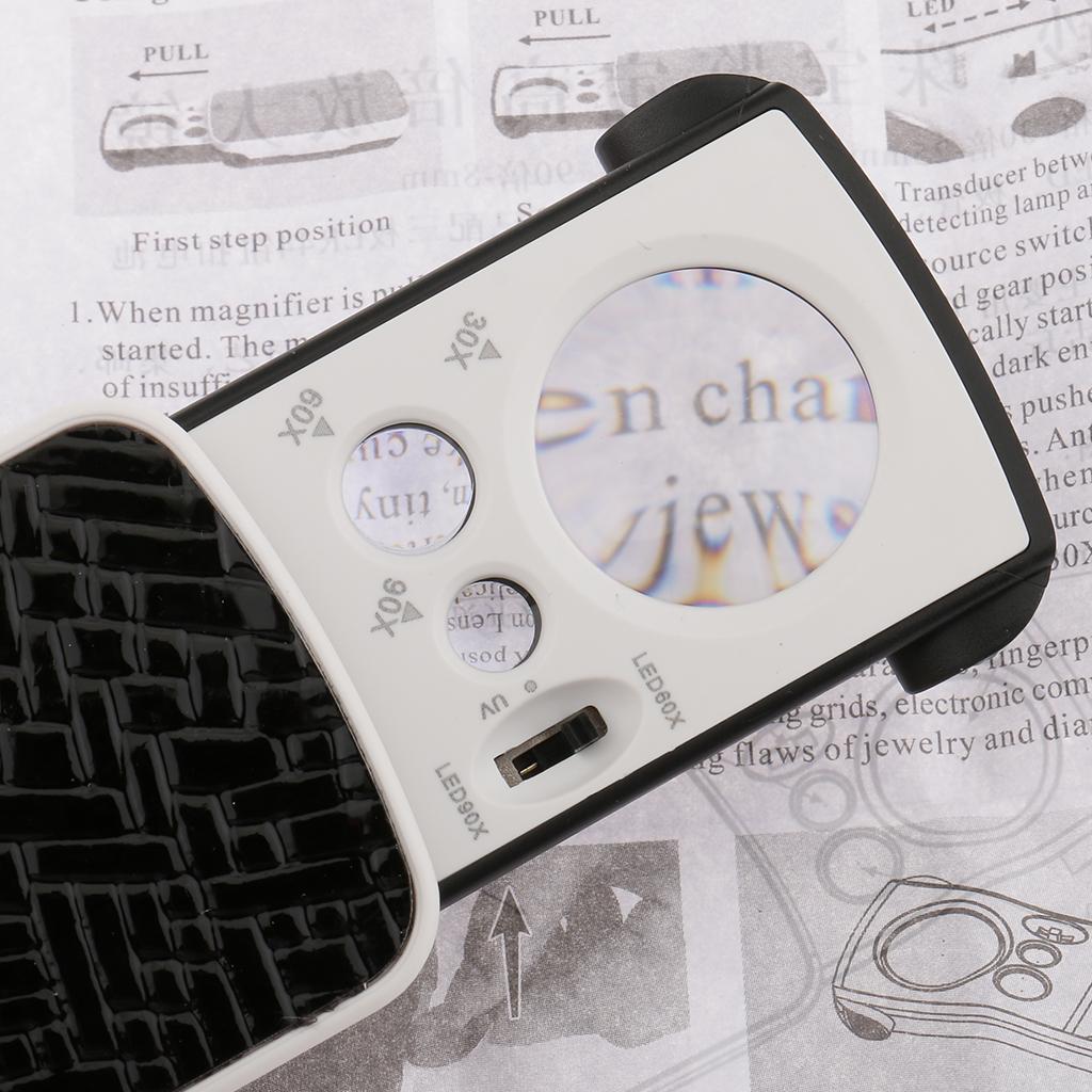 Pocket magnifying glass with 3 stronger magnification: 30x,60x,90x