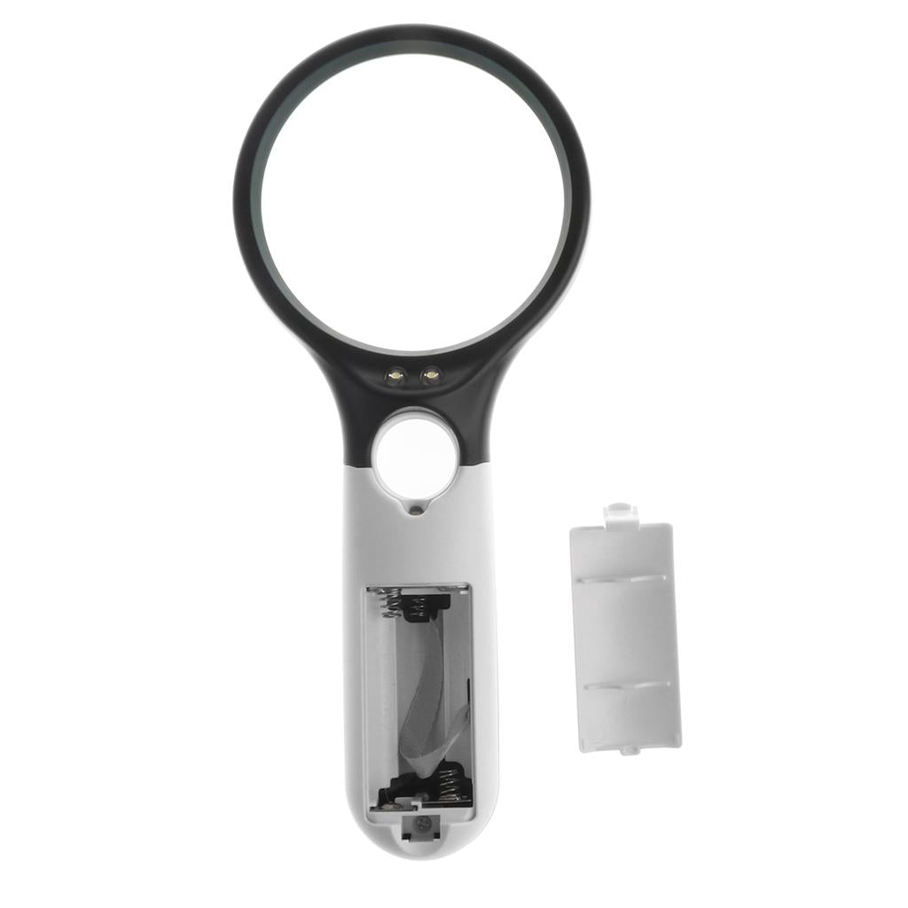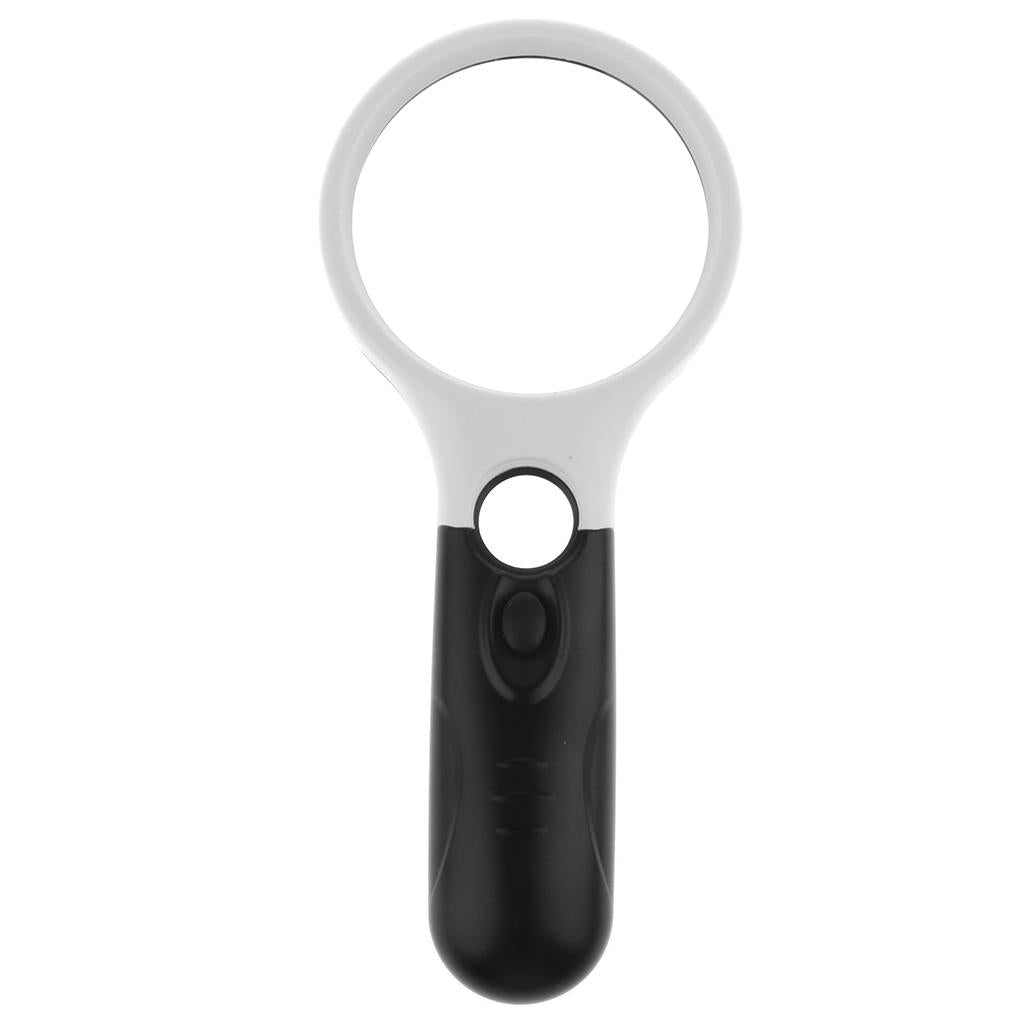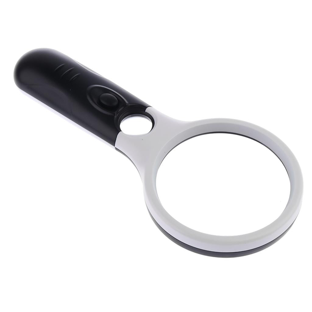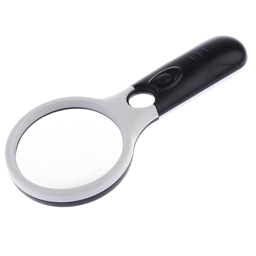 - A stylish handheld magnifying glass and loupe combination: Magnification: Large Lens - 3x, Loupe – 45x