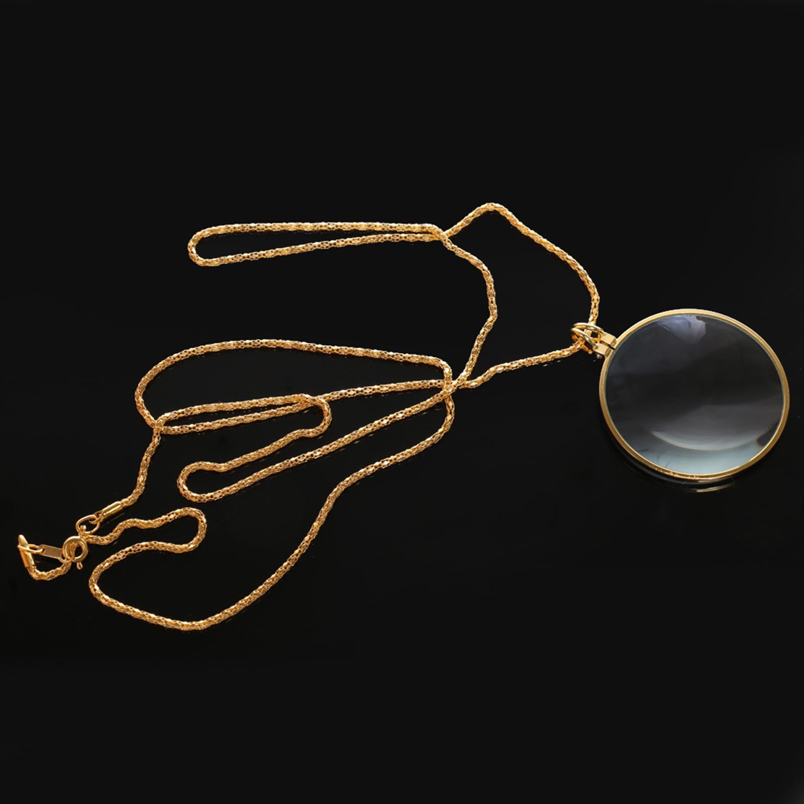 Golden Strap Chain Necklace metal lanyards with Magnifying Glass Pendant Loupe