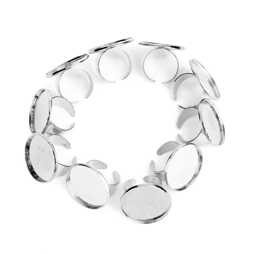 Phenovo Adjustable Brass DIY Blank Ring Bezel Base for 25mm Cabochon Silver