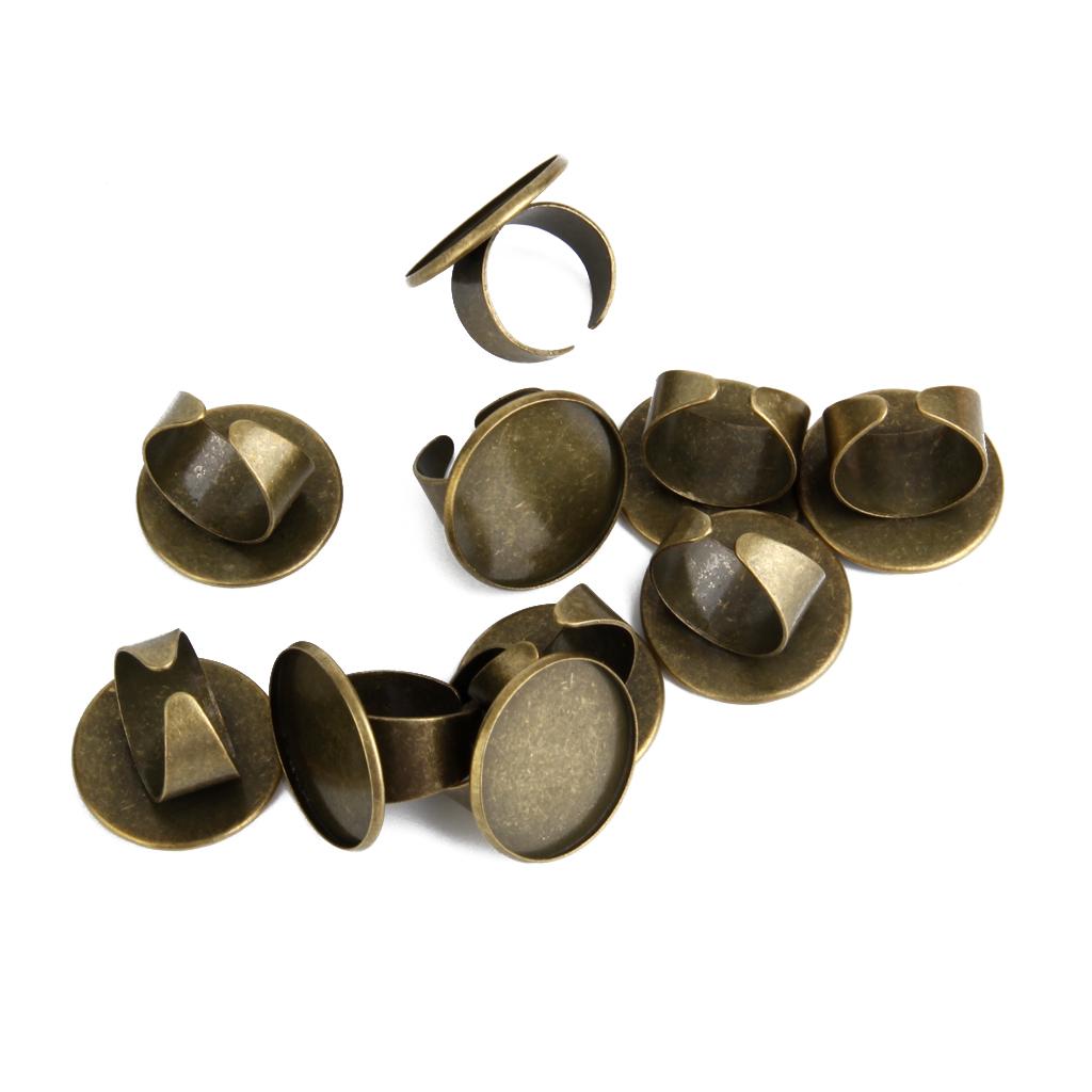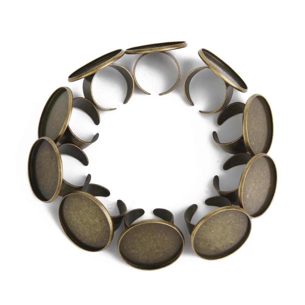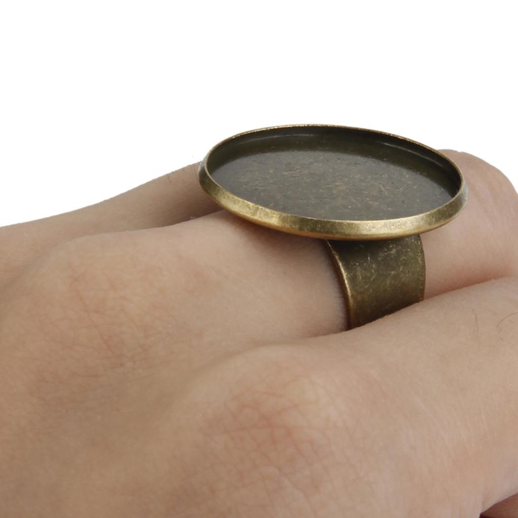 Phenovo Adjustable DIY Blank Ring Bezel Base for 25mm Cabochon Ancient Cyan