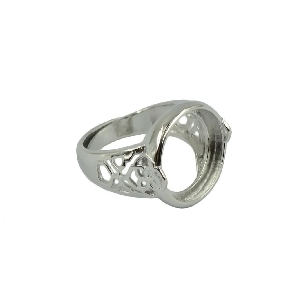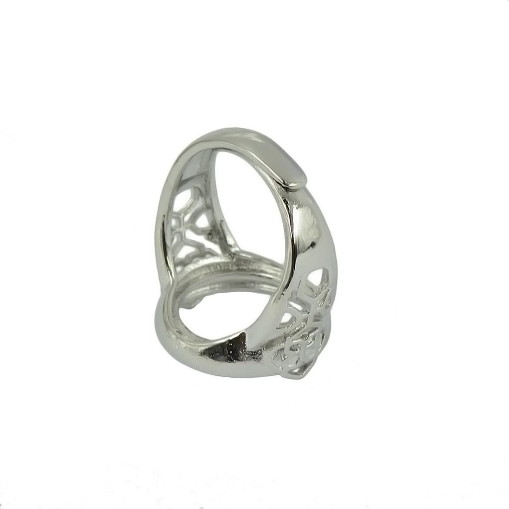 Silver Brass Round Bezel Adjustable Flower Ring Blank Bases Setting DIY 16mm