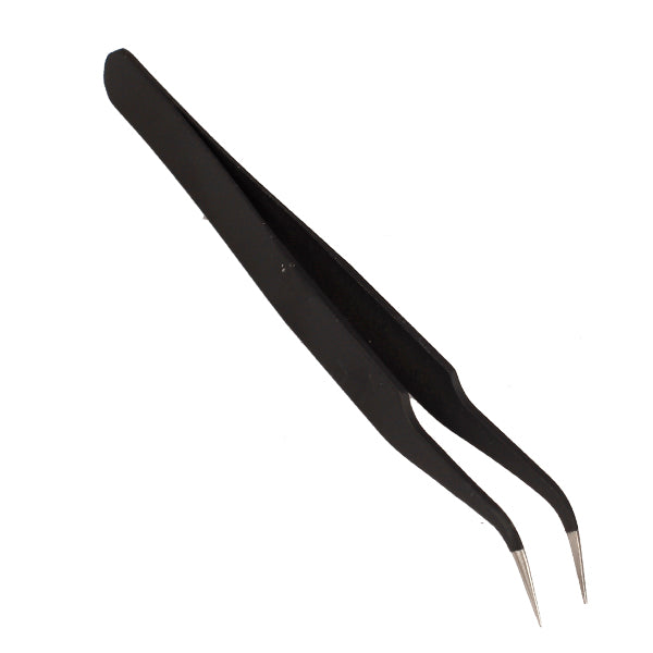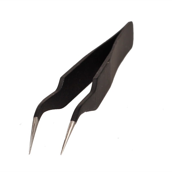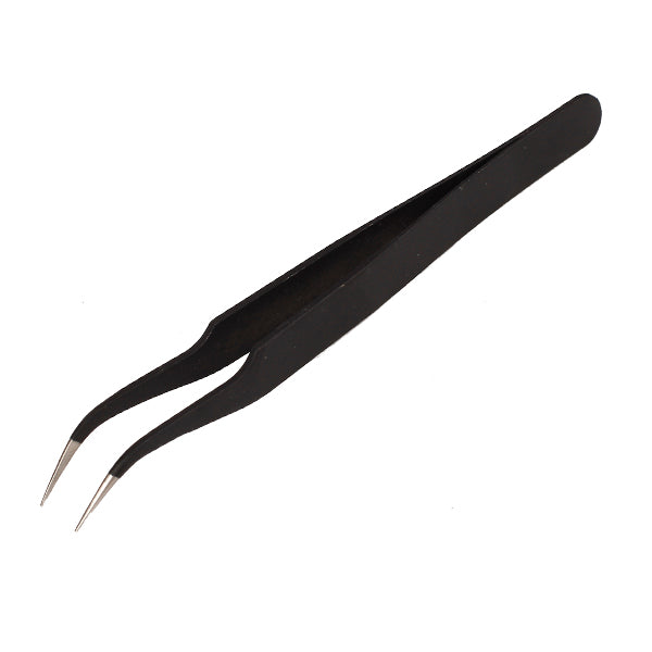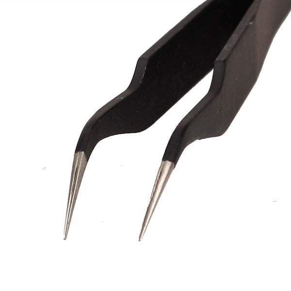 This pair of tweezers features 45 degree curved tips. This Curved Tips Tweezers is made of Stainless Steel and Anti-magnetic as well as Antistatic. This pair of tweezers is ideal for applications in craftwork, model making and electronics, also great for nail art, watch repair or other handicraft tool.
