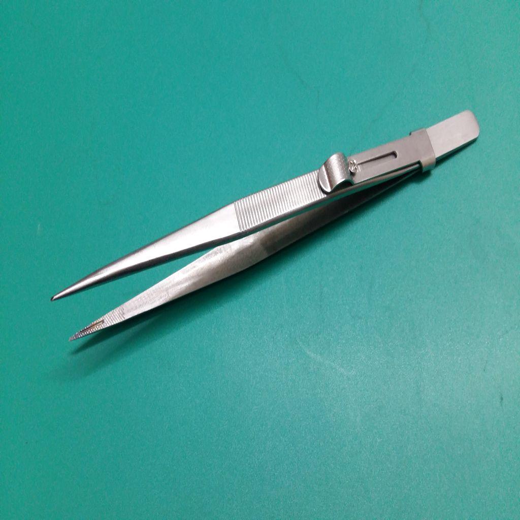 These diamond tweezers with slide lock are ideal for handling stones and small components. The locking mechanism holds stones securely positioned