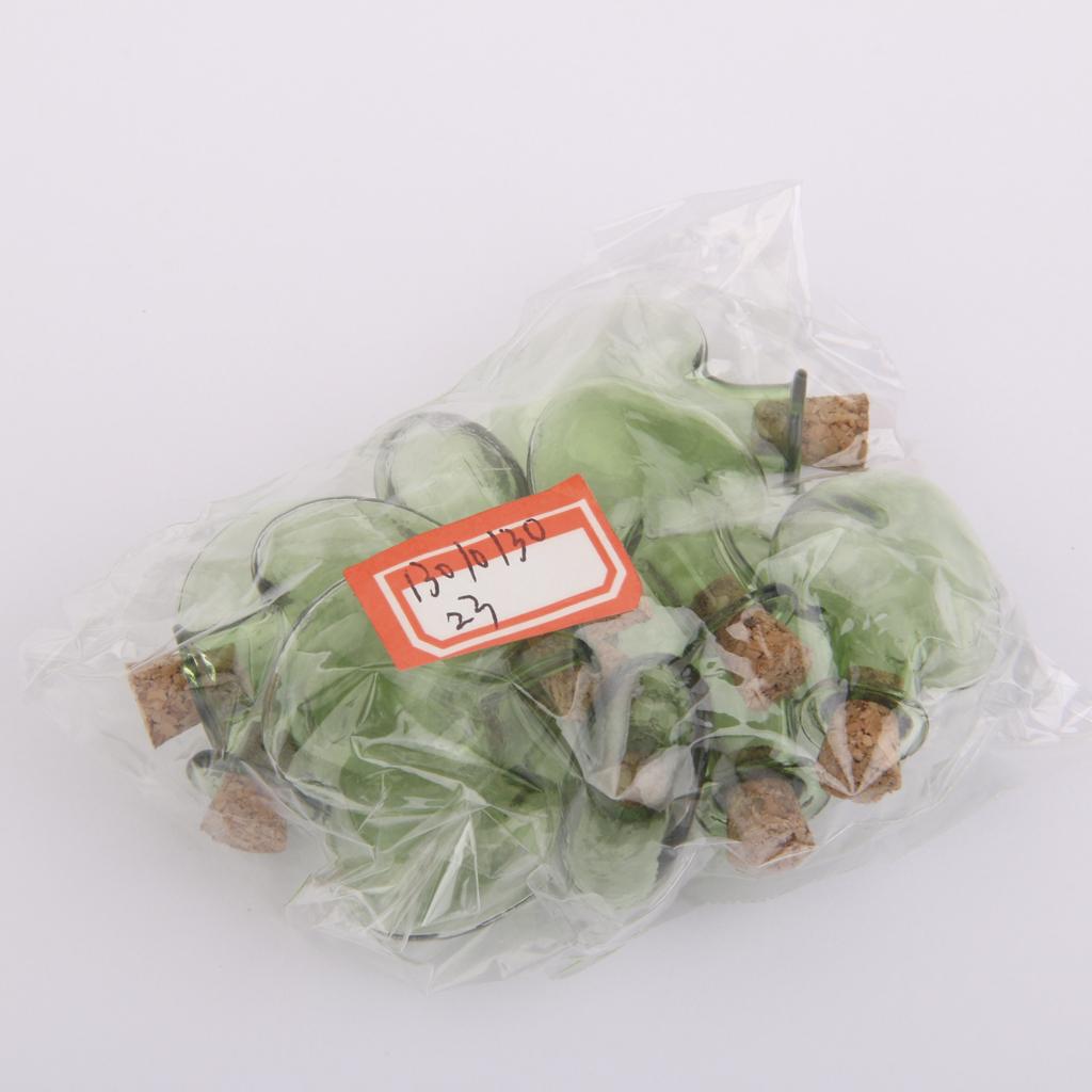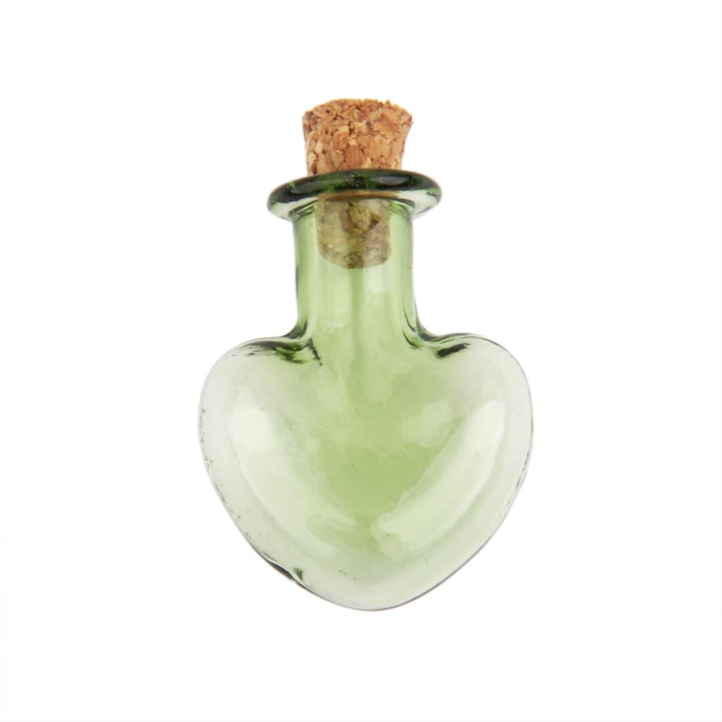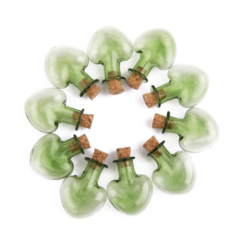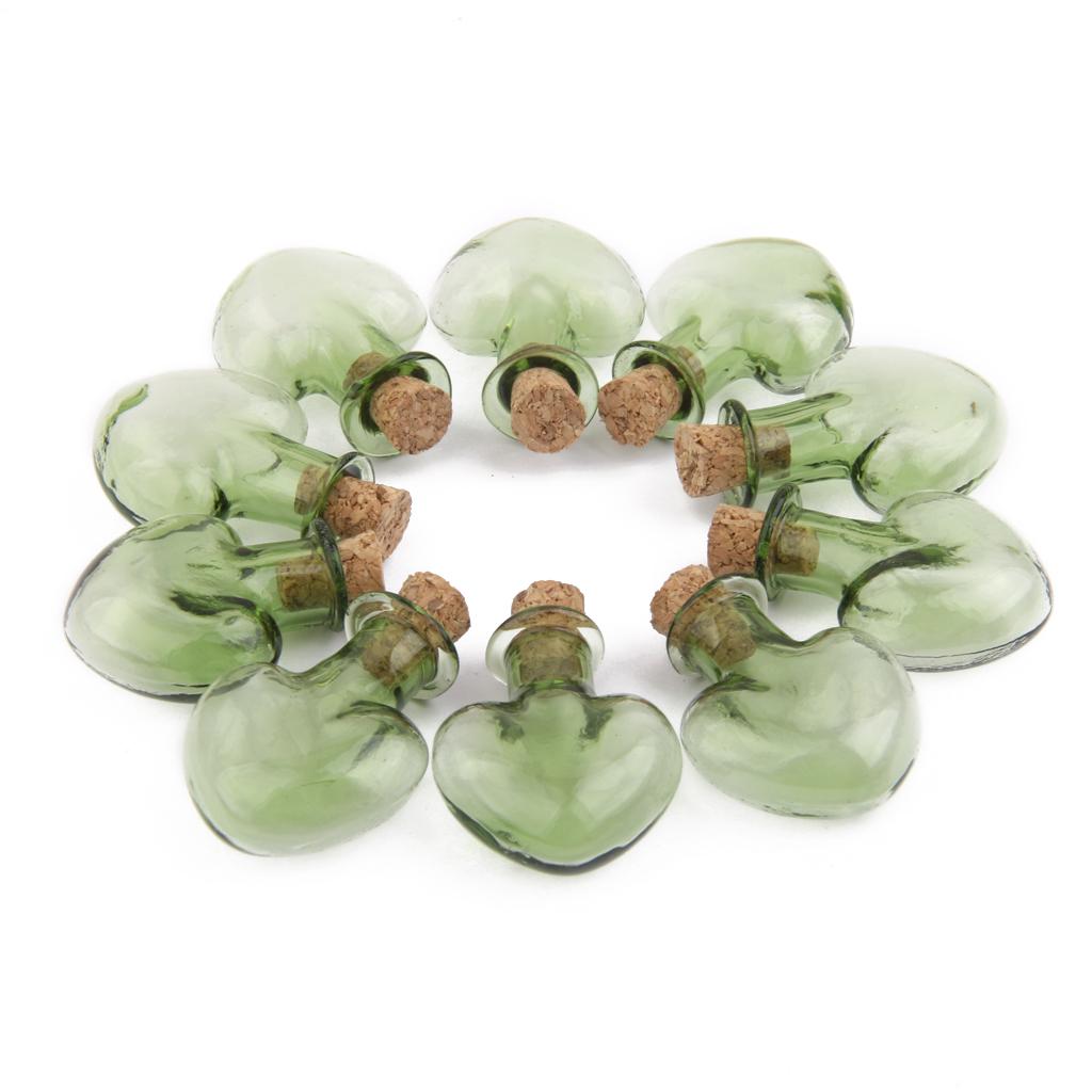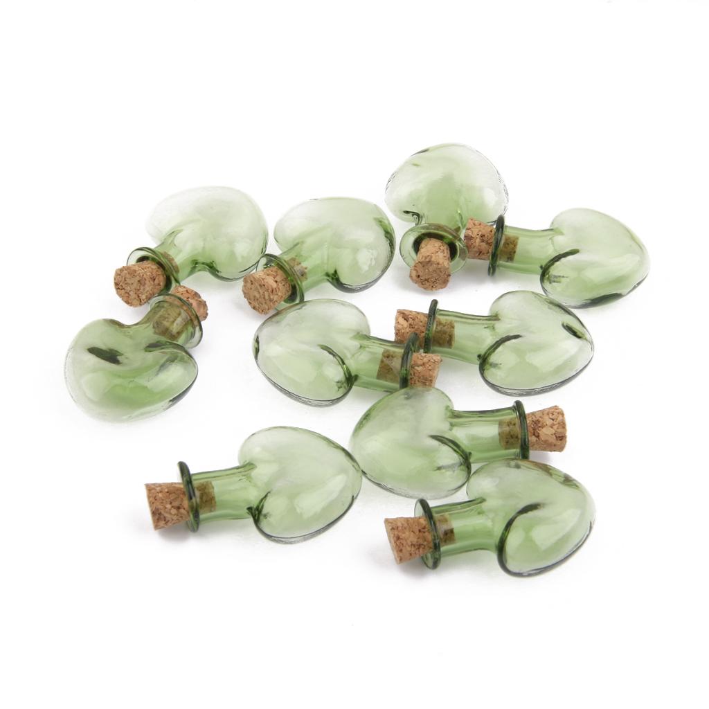 10Pcs Mini Glass Bottle Heart Jars Vials Wishing Message Cork Bottles Green