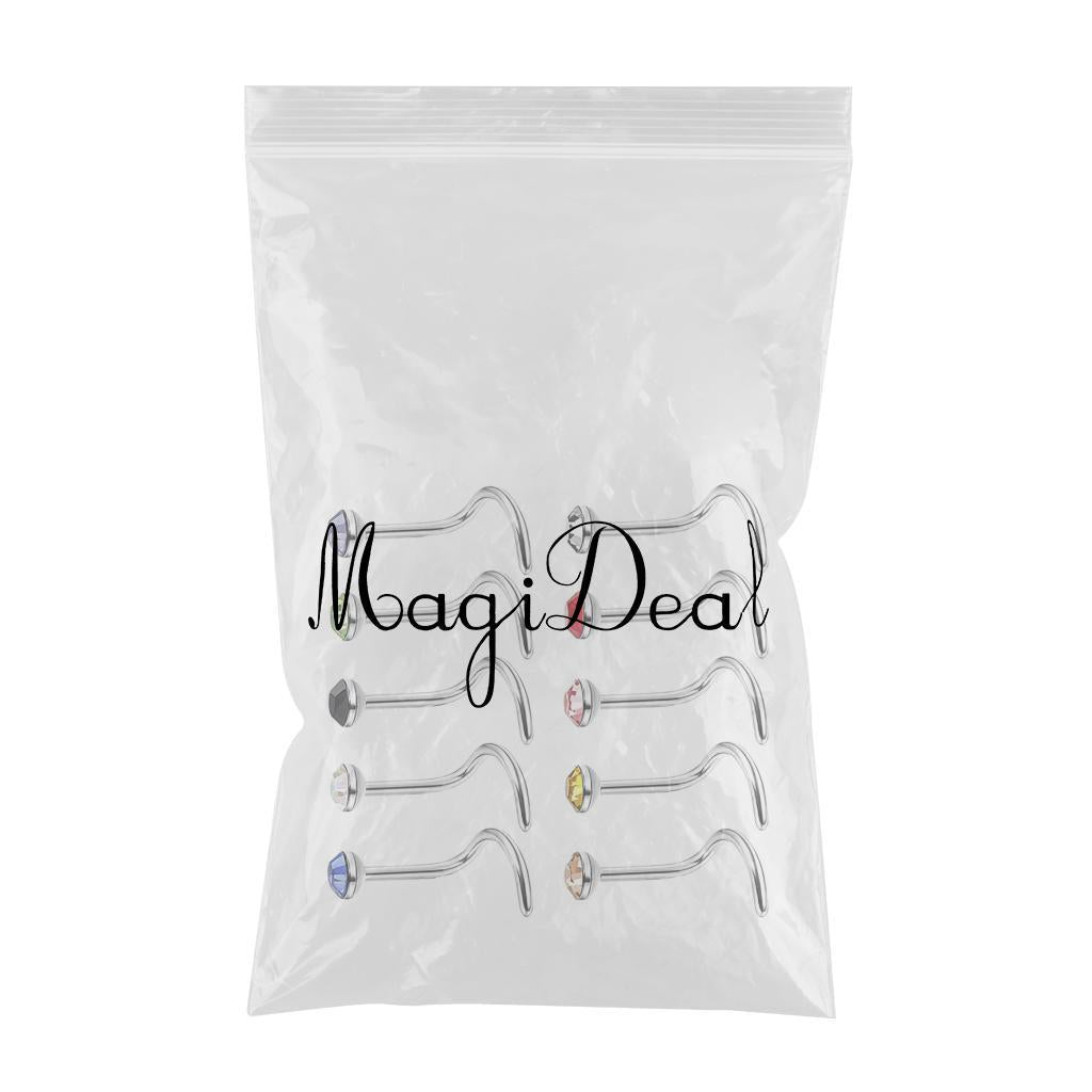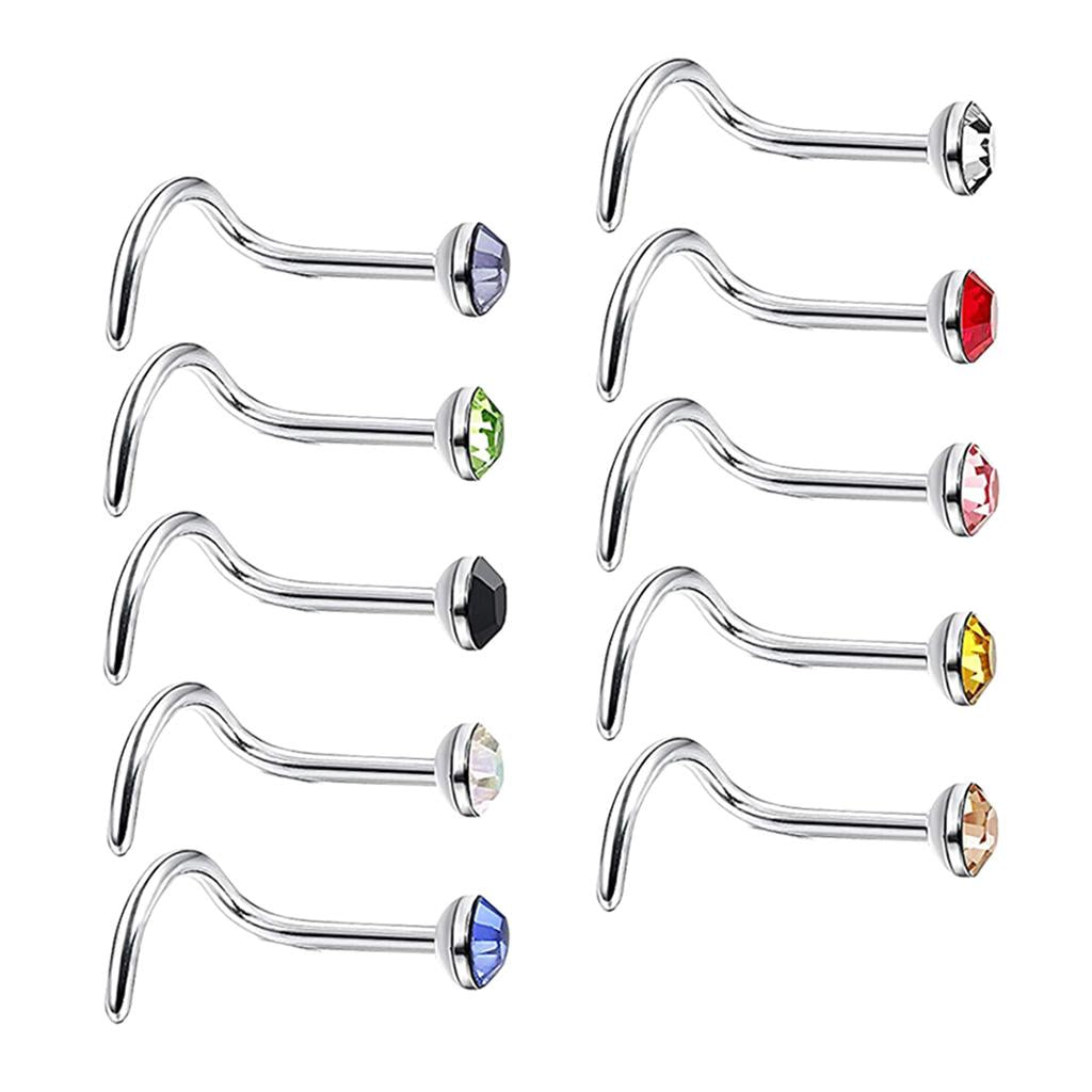 Nose piercing ring with crystal,Curved Nose Screw Ring Stud Body Piercing Jewelry 18 Gauge (1.0mm)