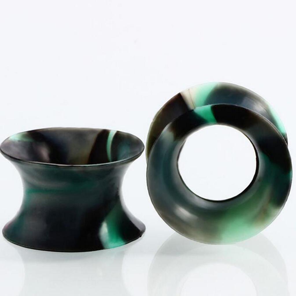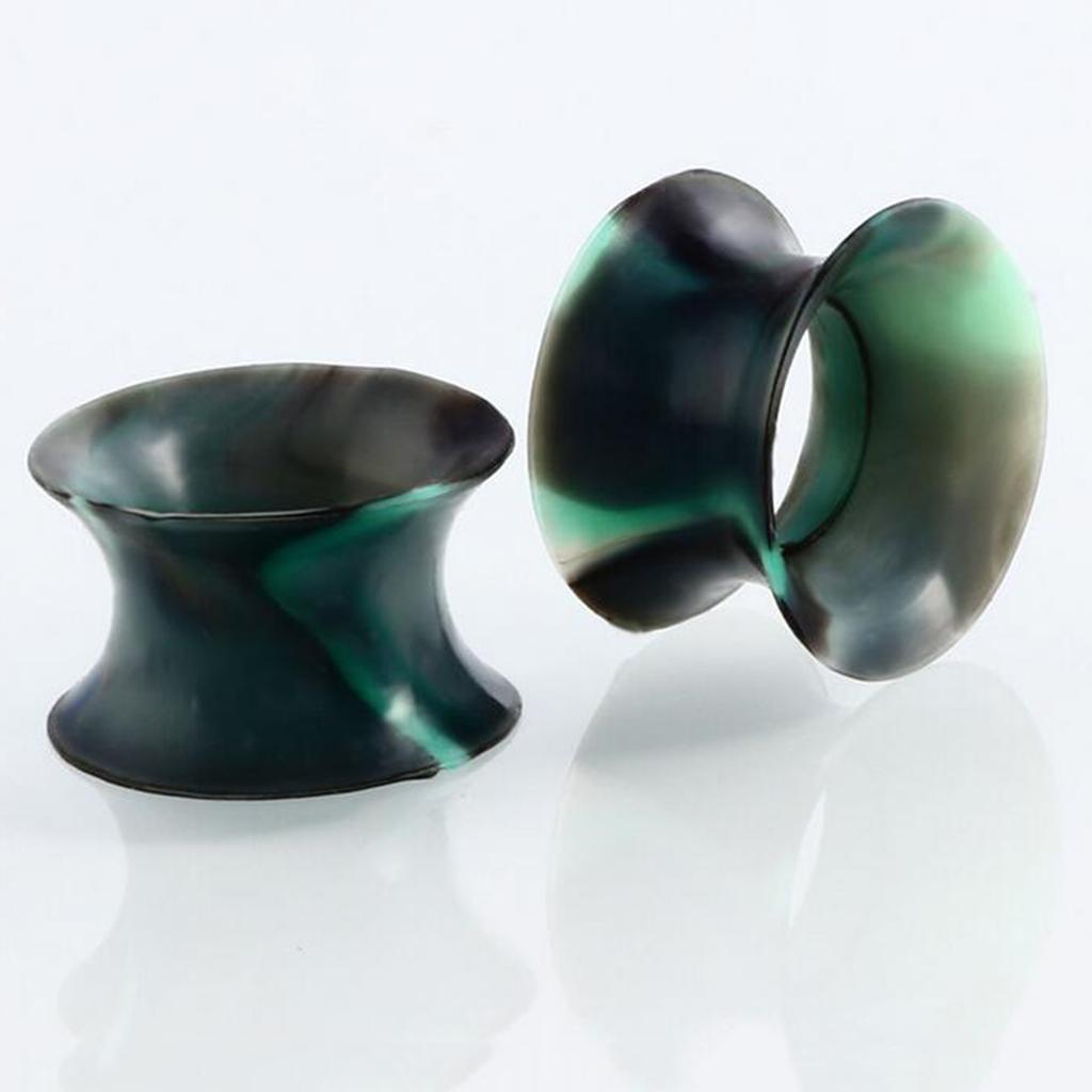 Organic soft silicone double flared/saddle. You will receive 11 pairs (same size in one pack) colorful silicone earrings plugs.