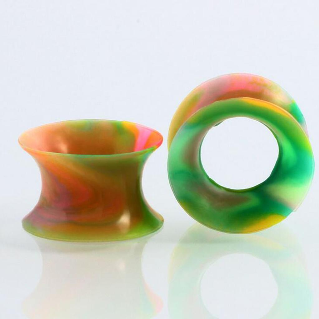 Organic soft silicone double flared/saddle. You will receive 11 pairs (same size in one pack) colorful silicone earrings plugs.