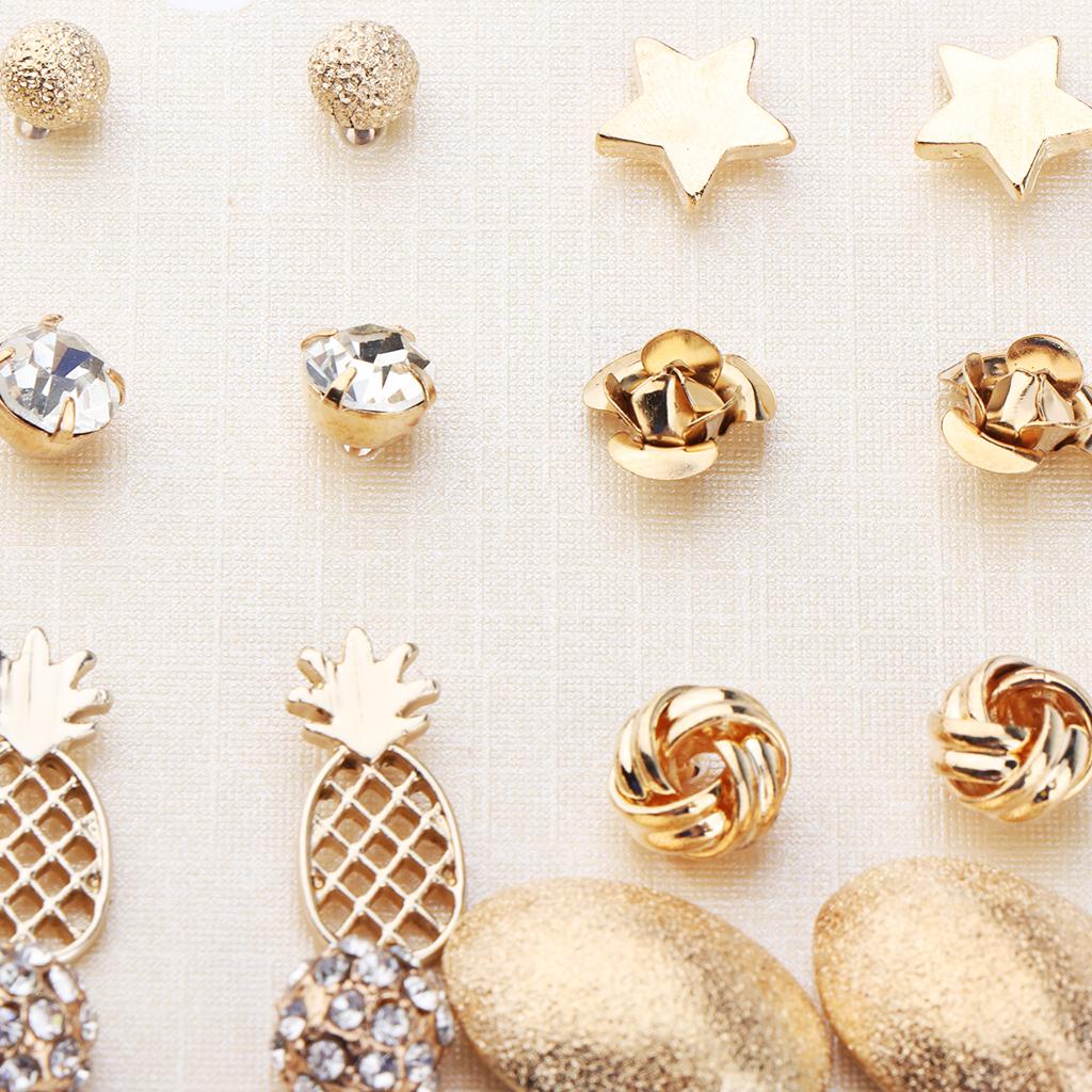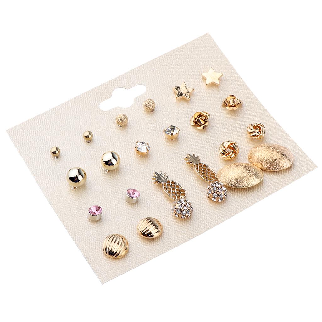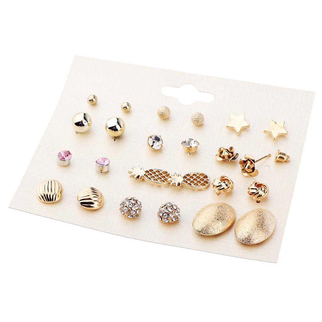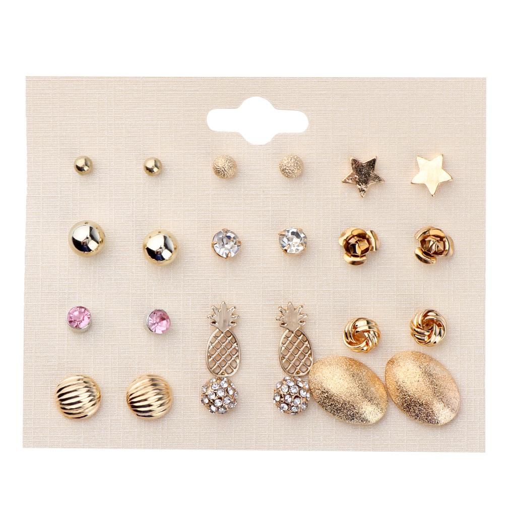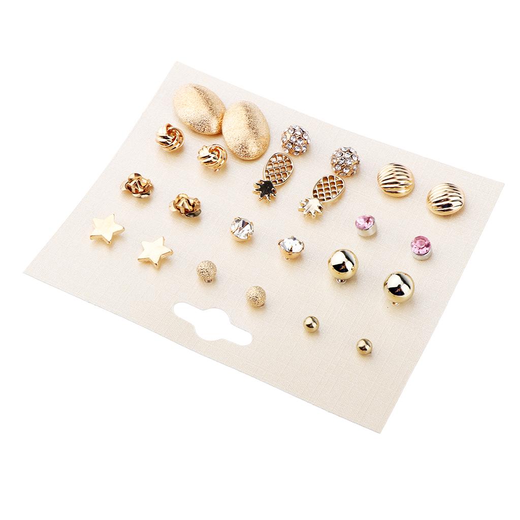12 Pairs Fashion Women Girls Star Crystal Diamante Stud Earrings Jewelry Set