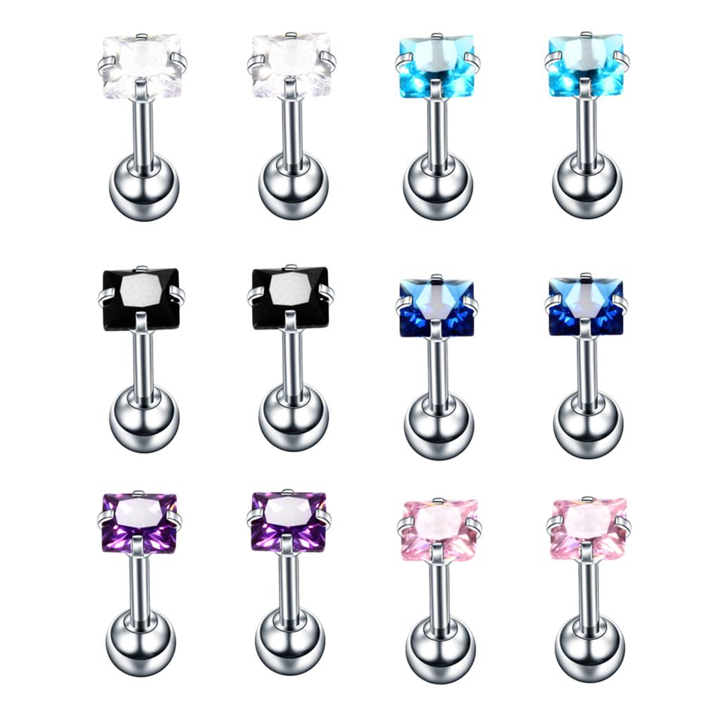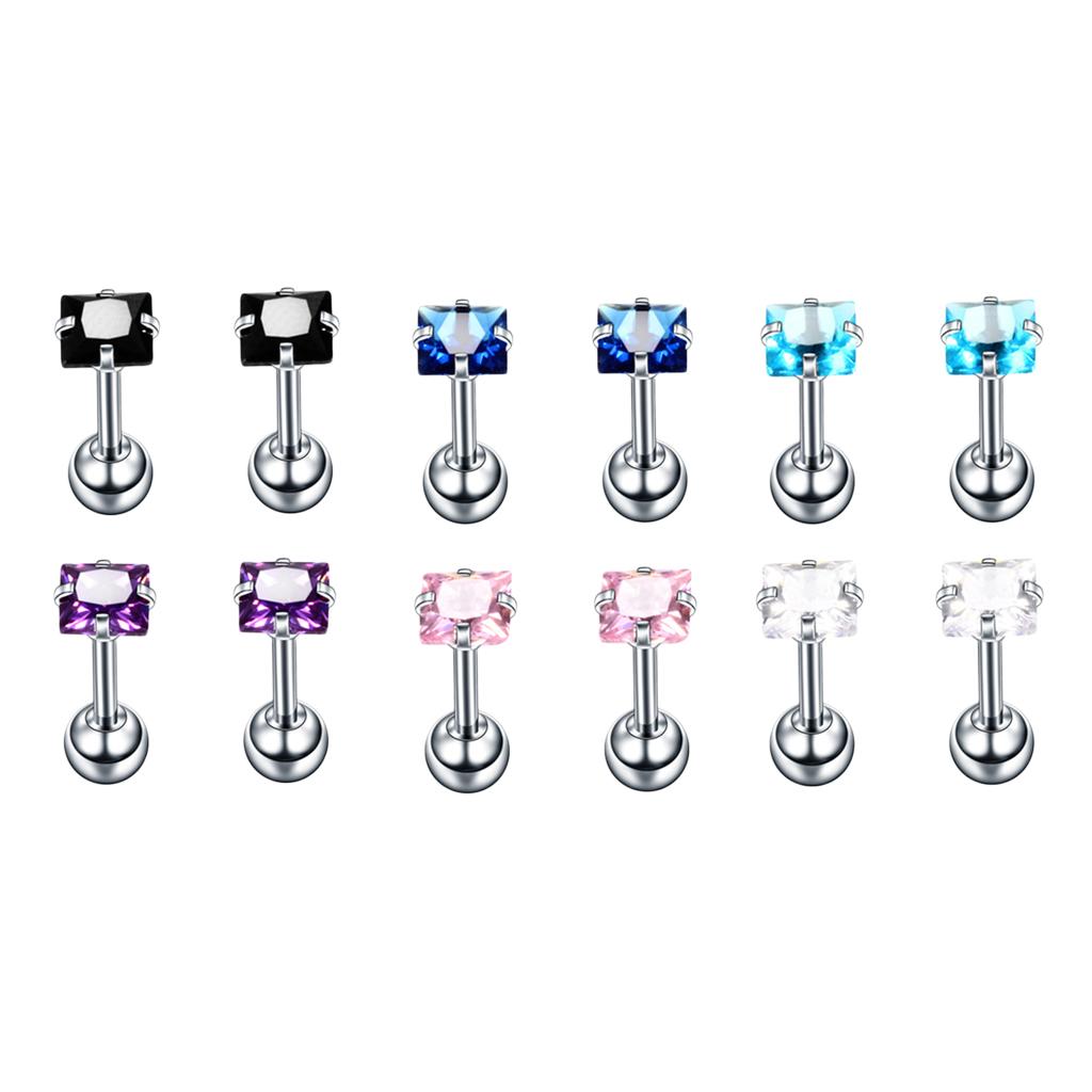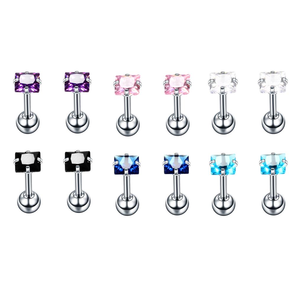 Package: 12 Pieces (6Pairs) Stud Earrings Set(Including Clear,