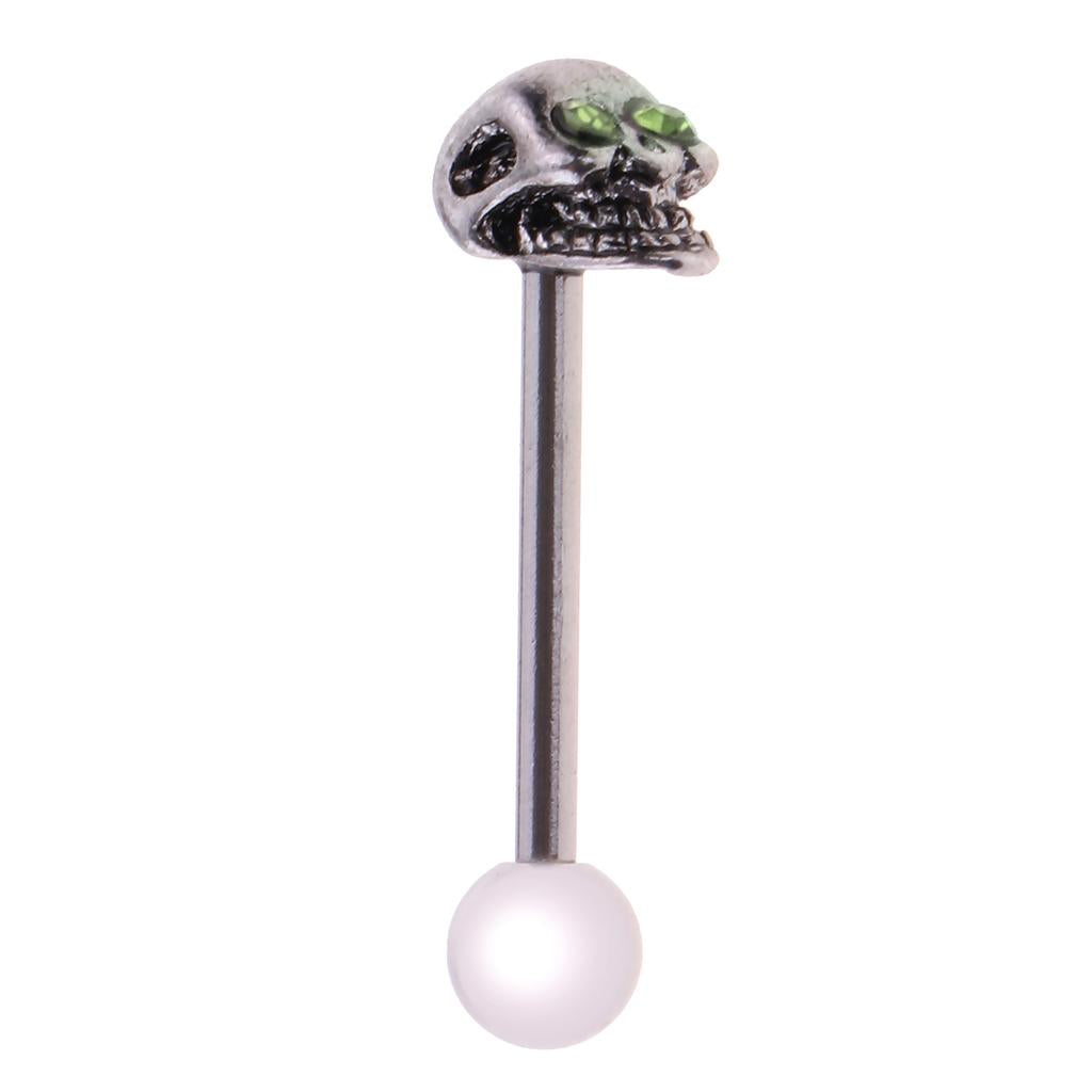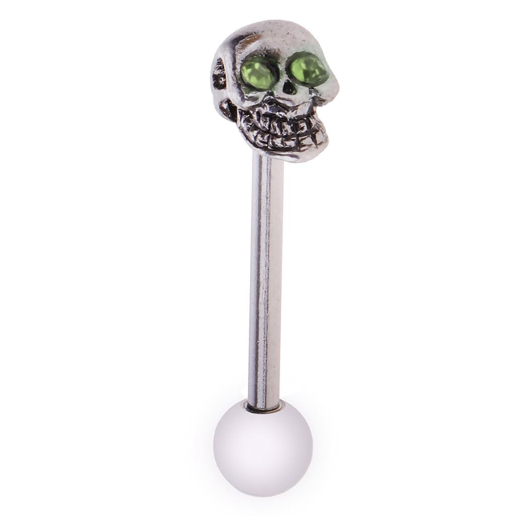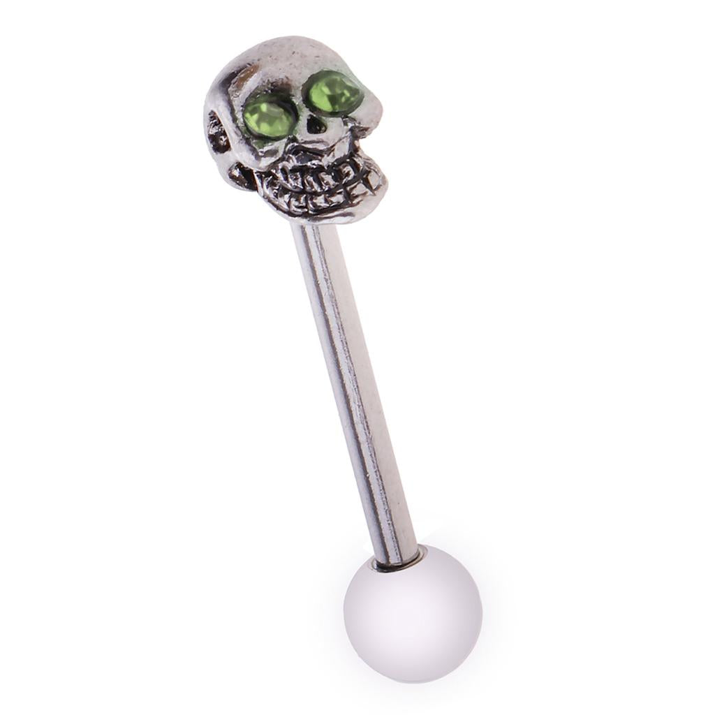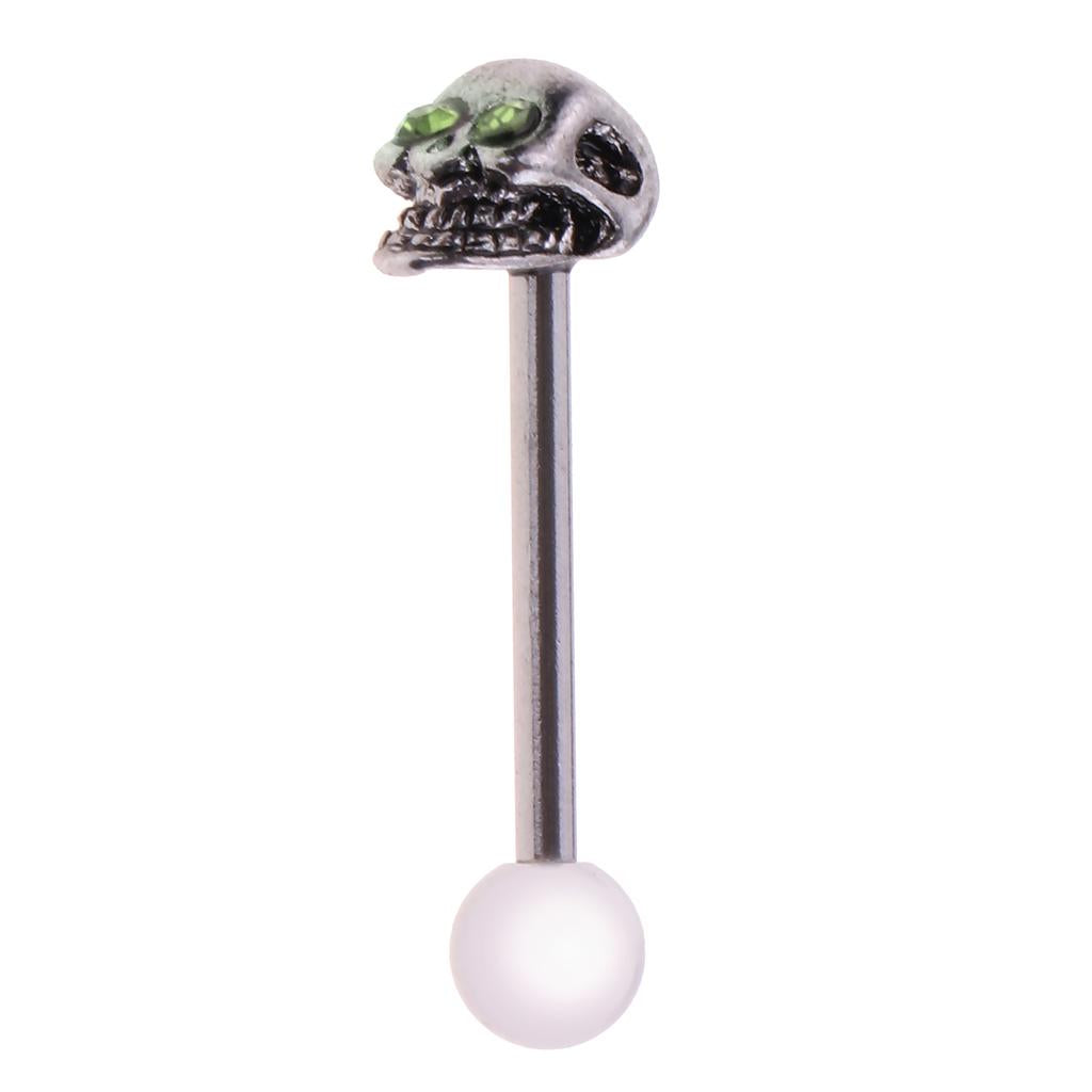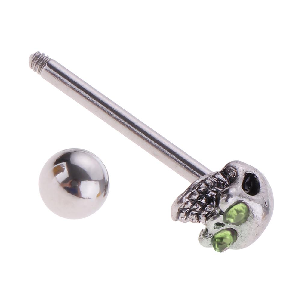 14G Skull Head Tongue Bar Barbell Ring Ear Ring Stud Piercing Jewelry Green