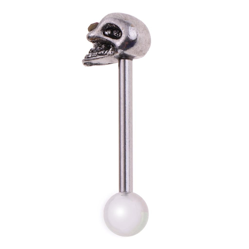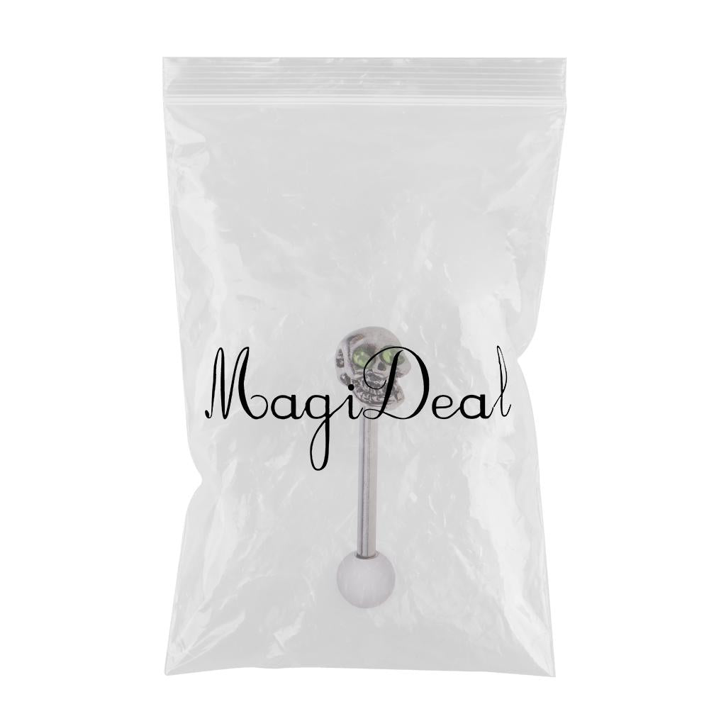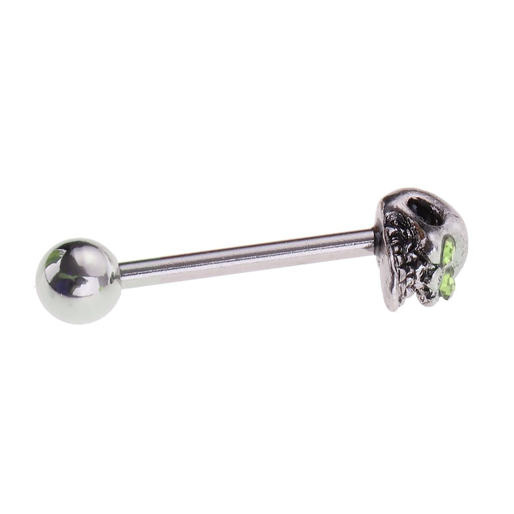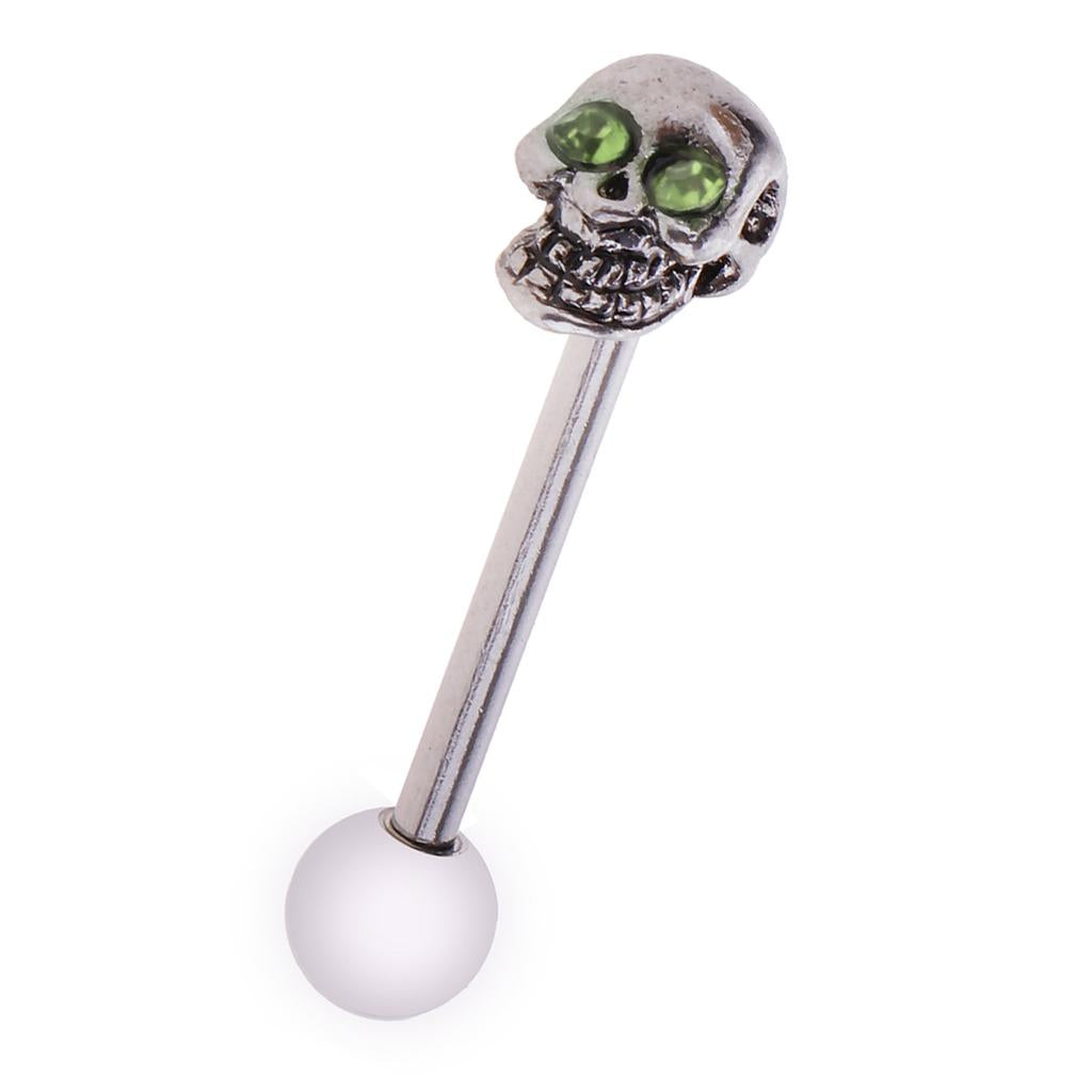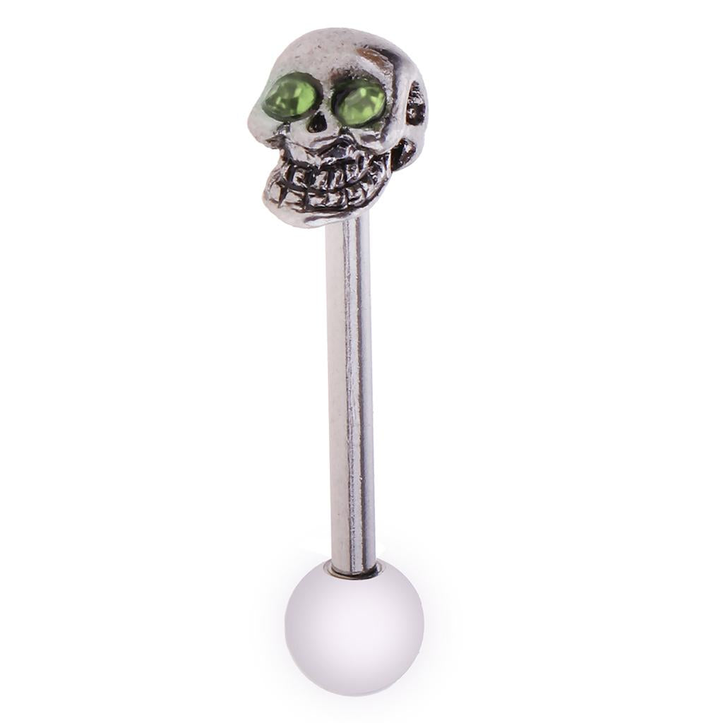 14G Skull Head Tongue Bar Barbell Ring Ear Ring Stud Piercing Jewelry Green