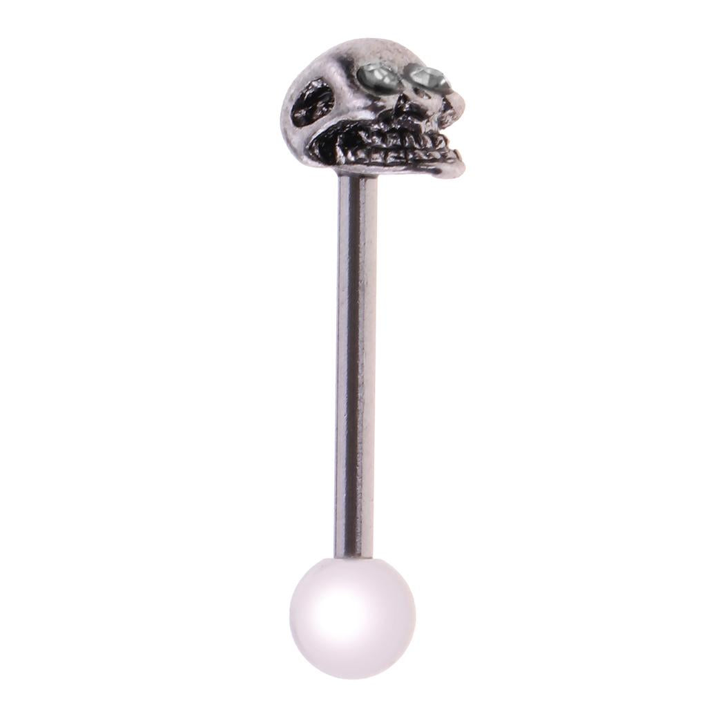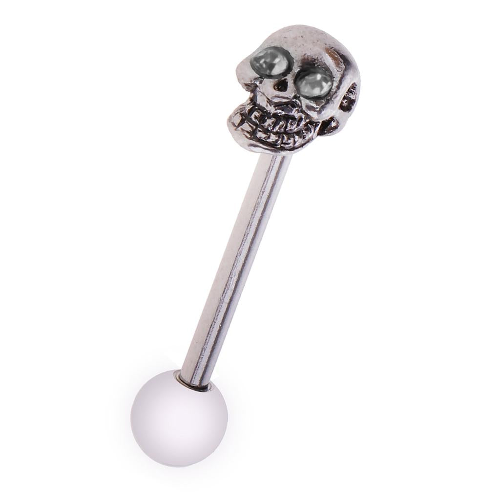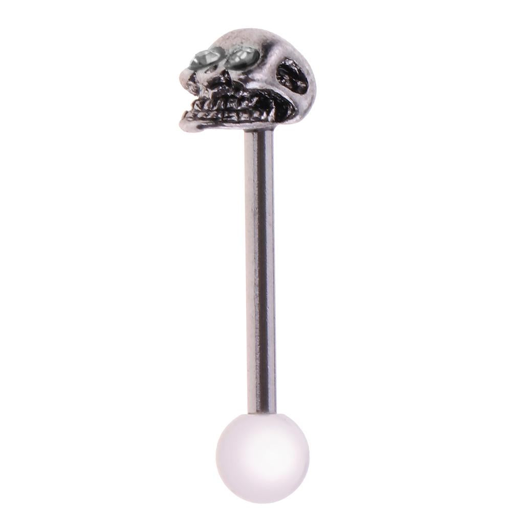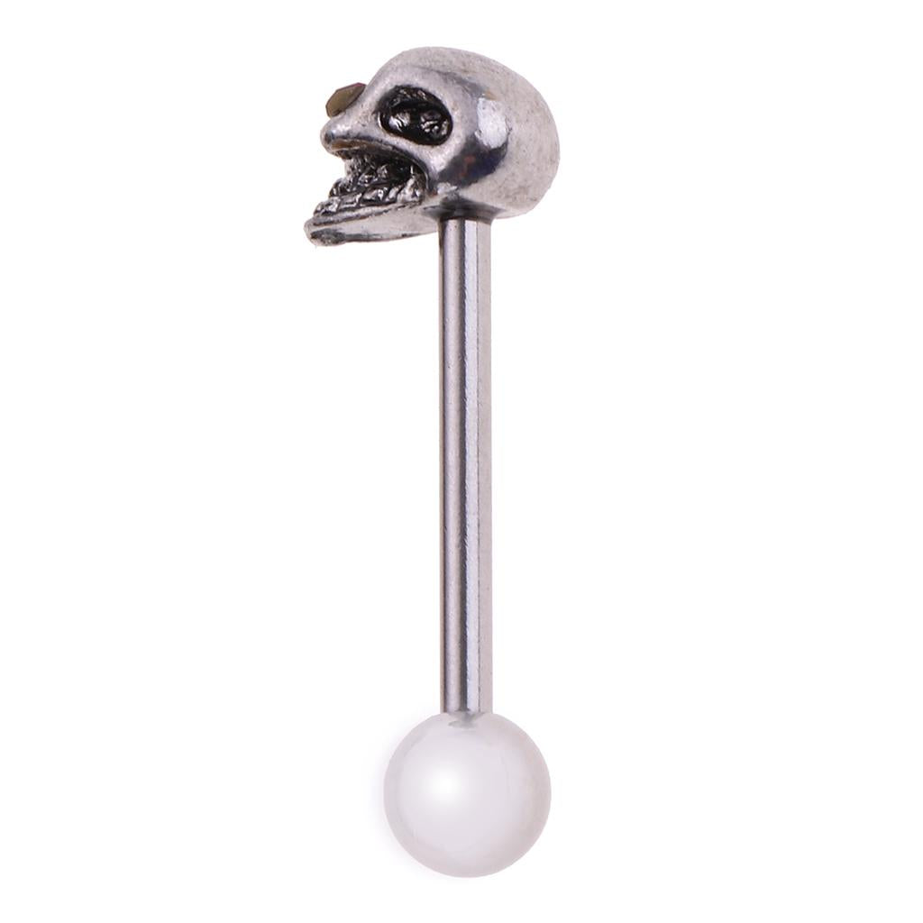 14G Skull Head Tongue Bar Barbell Ring Ear Ring Stud Piercing Jewelry White