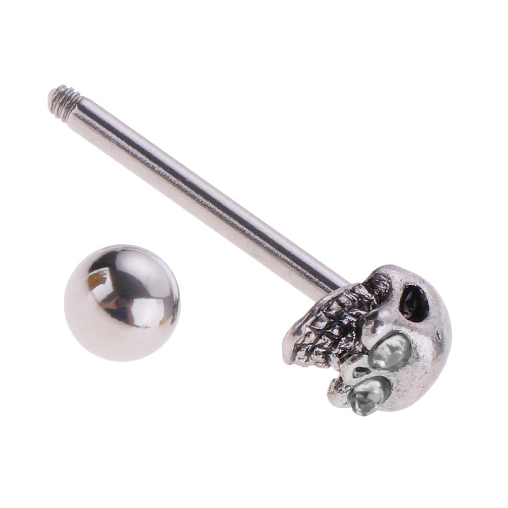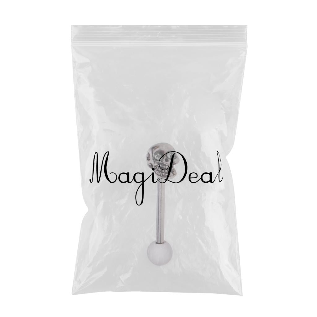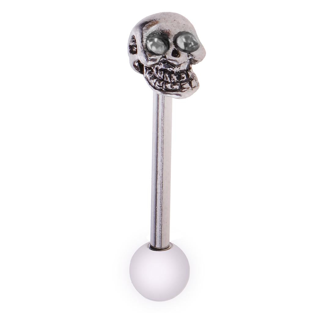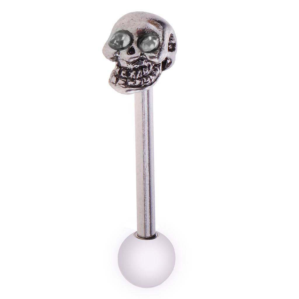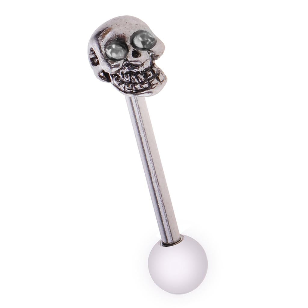 14G Skull Head Tongue Bar Barbell Ring Ear Ring Stud Piercing Jewelry White