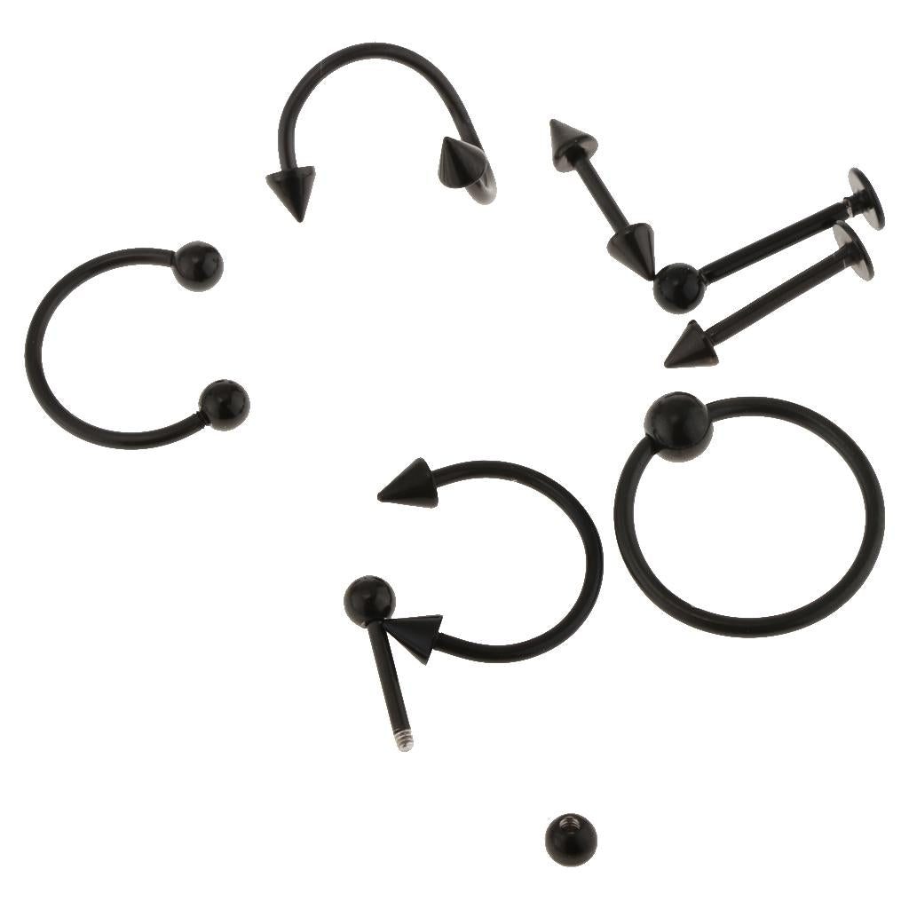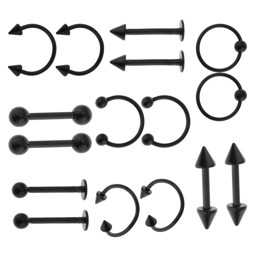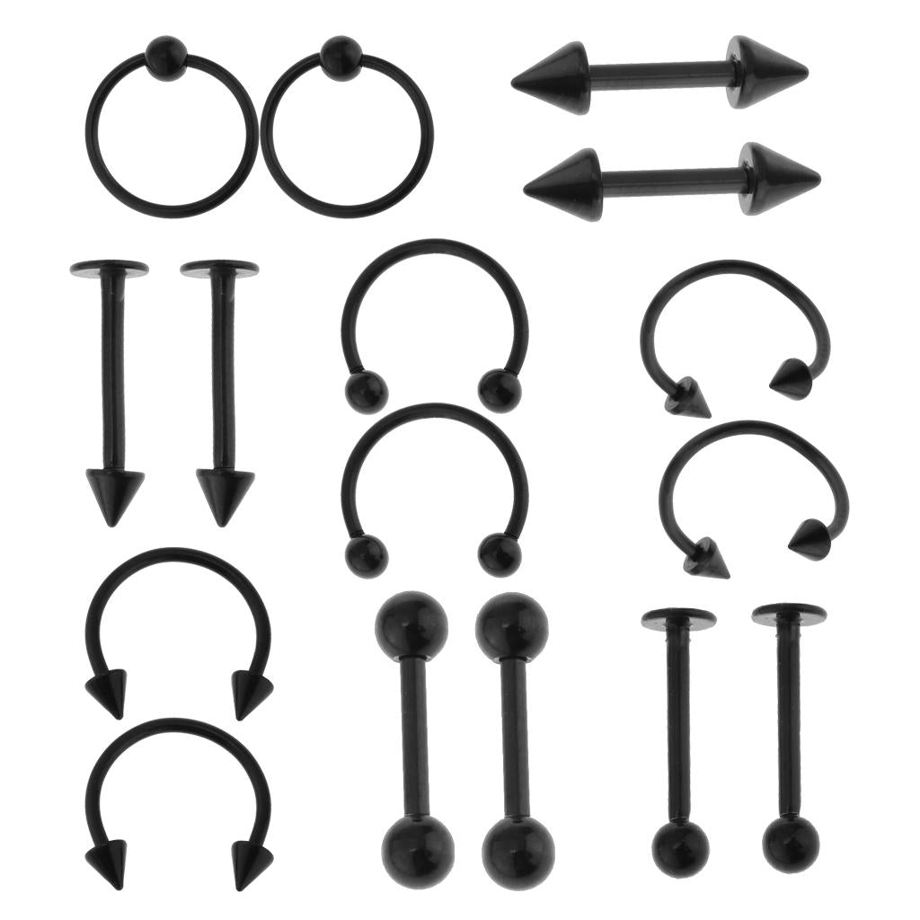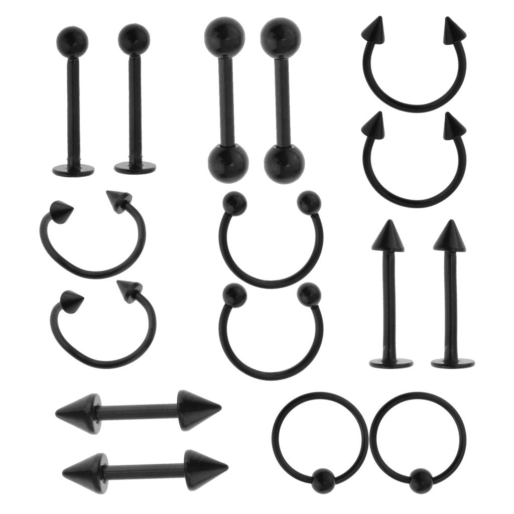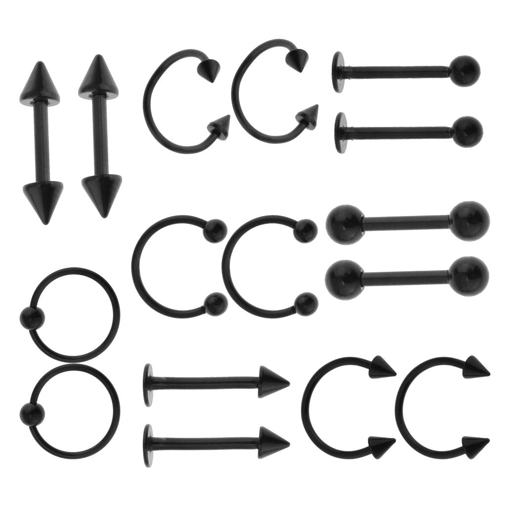 16pcs 16G Curved Barbell Spike Nose Navel Eyebrow Tongue Ring Black