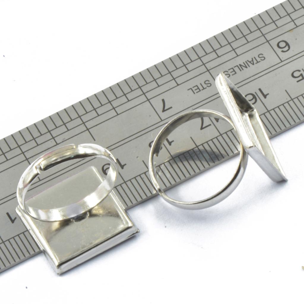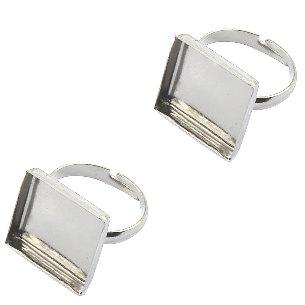 2 x 16mm Adjustable Square Blank Cabochon Bezel Base DIY Ring Silver