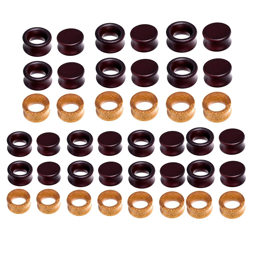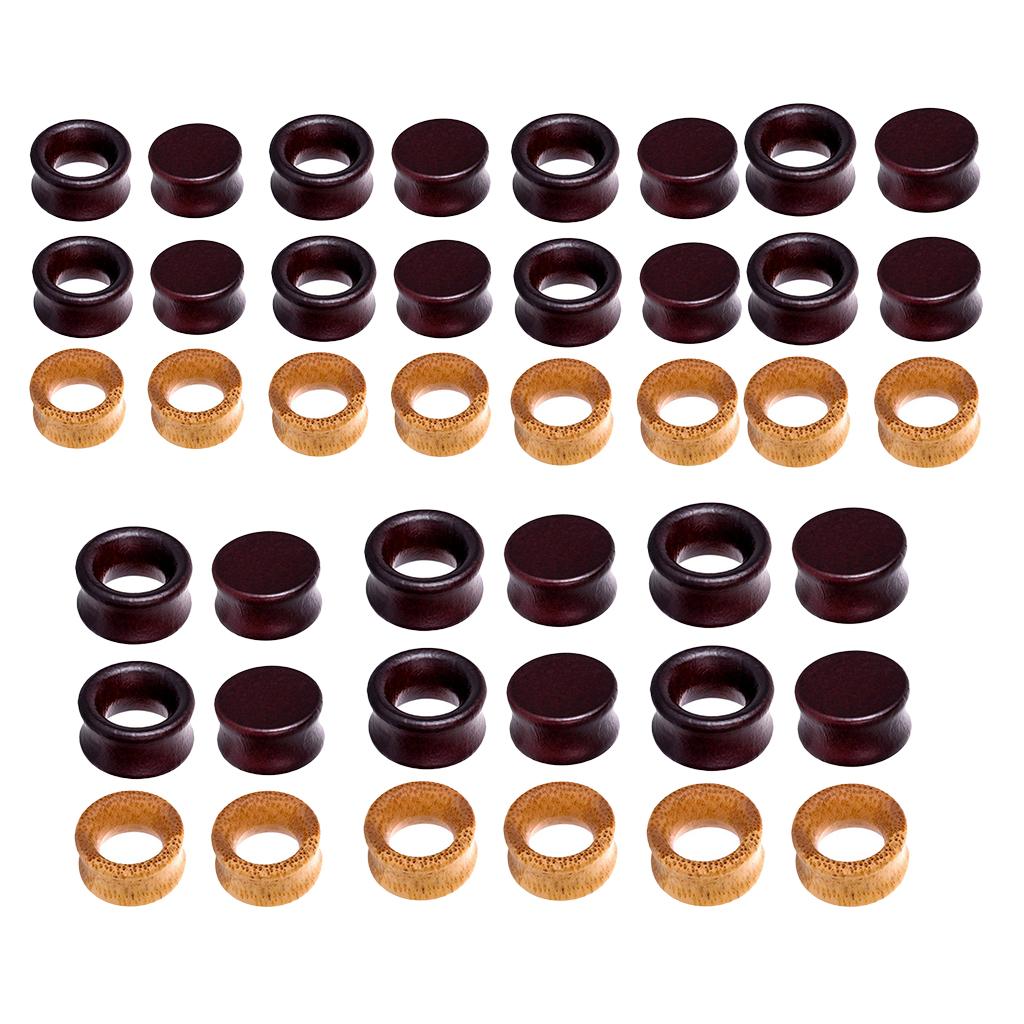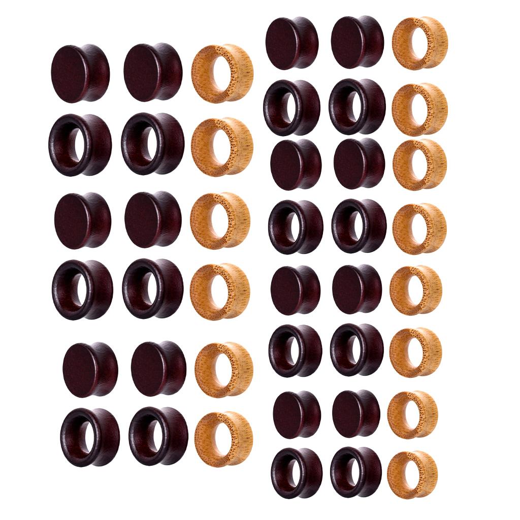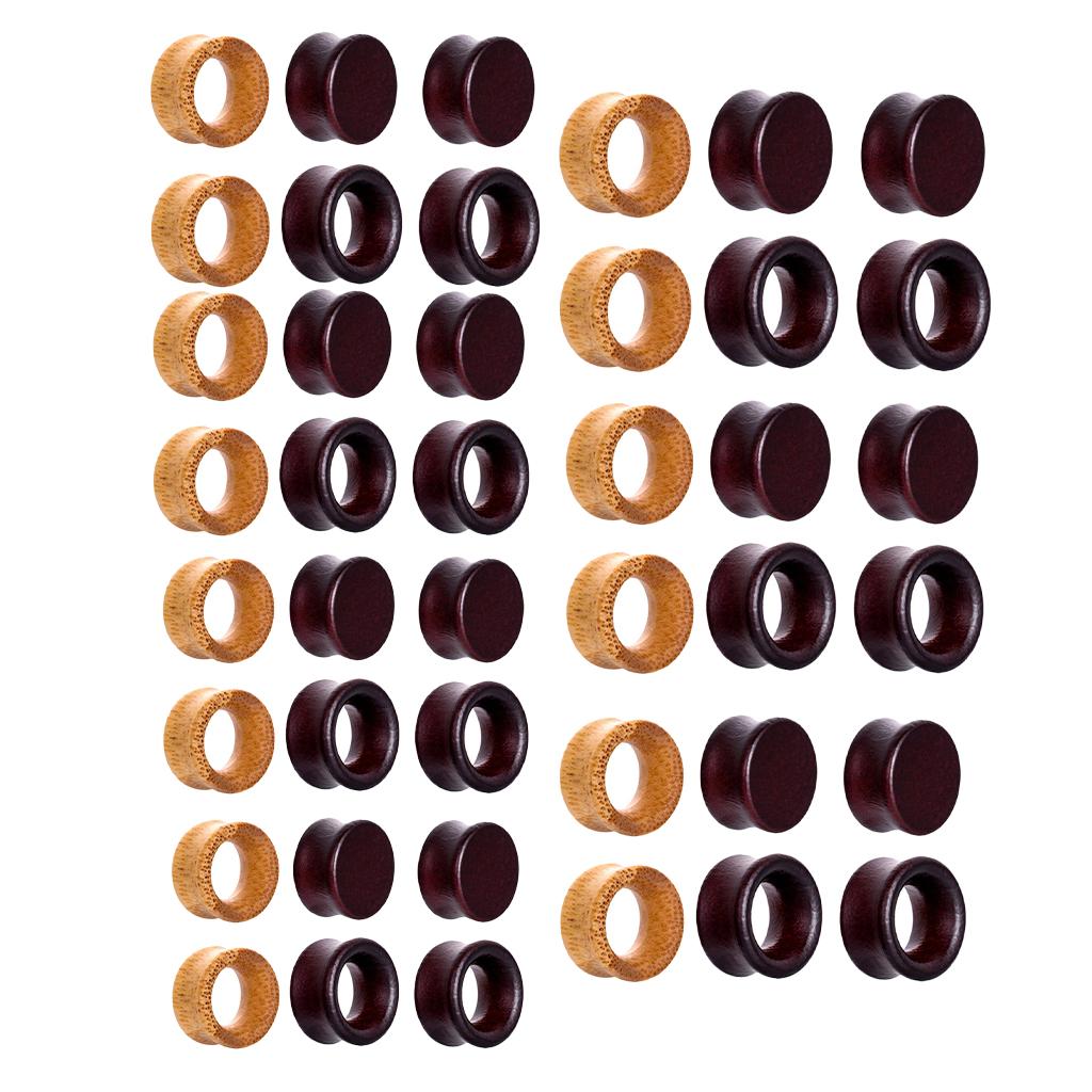 Organic wooden double flared/saddle. Includes 3 Pairs same size ear plugs gauges in different color.