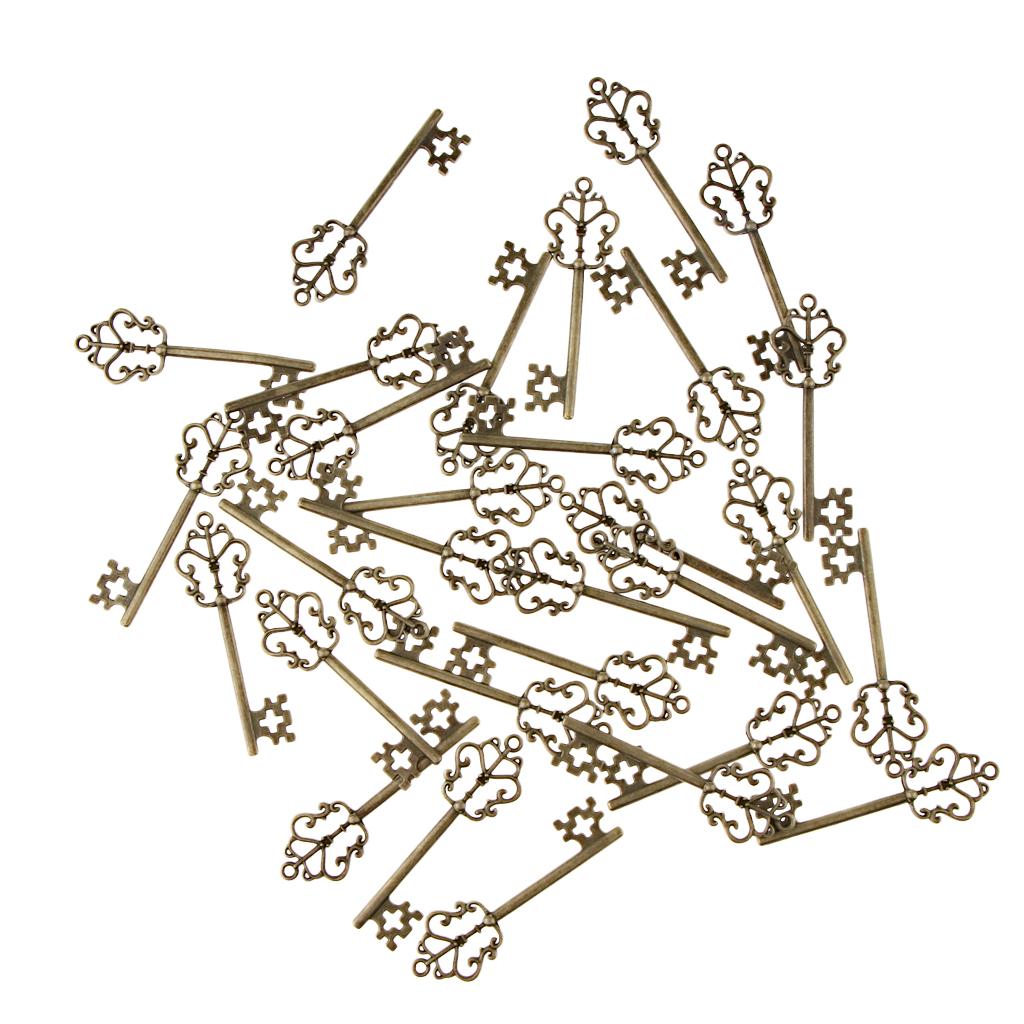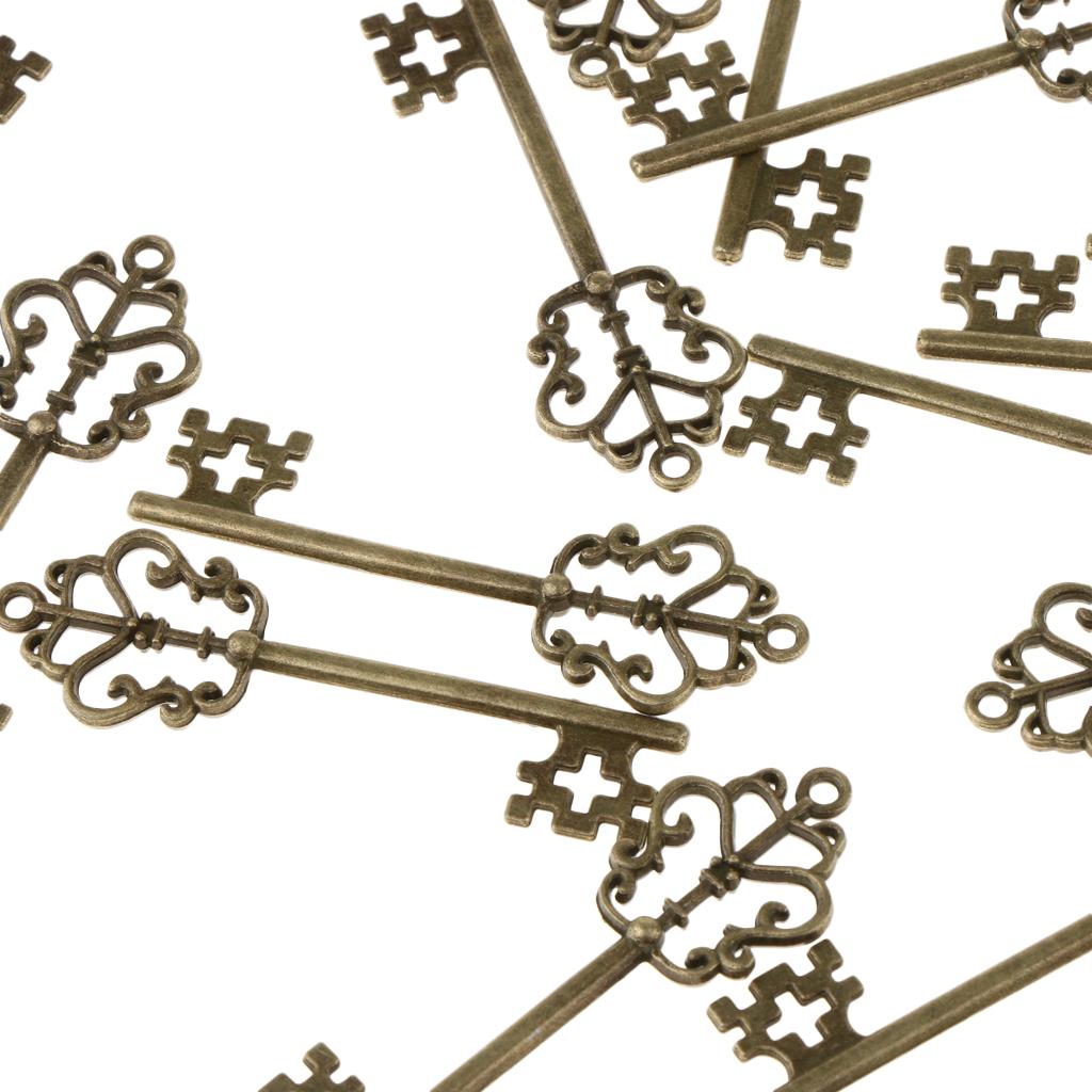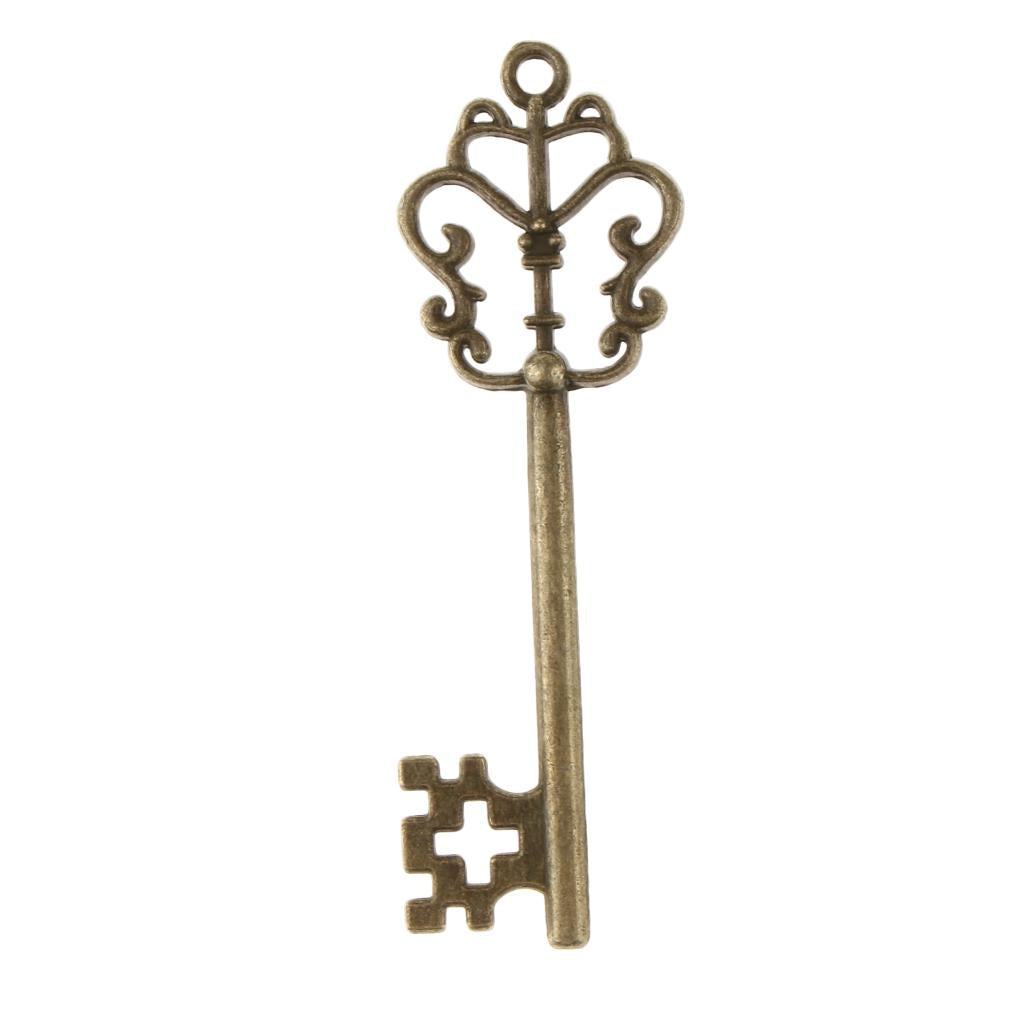 Antique Tibetan Alloy Key shaped charm pendant with filigree hollow crown for Jewelry DIY Making.
