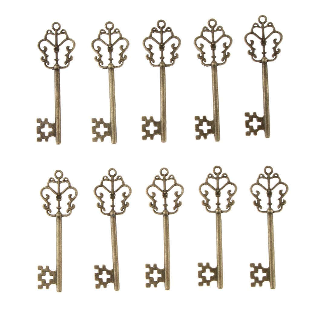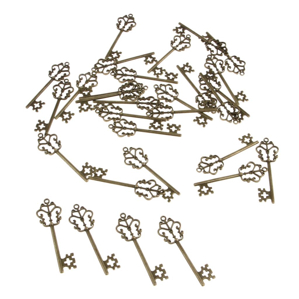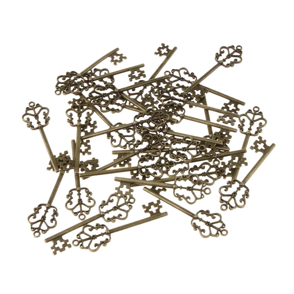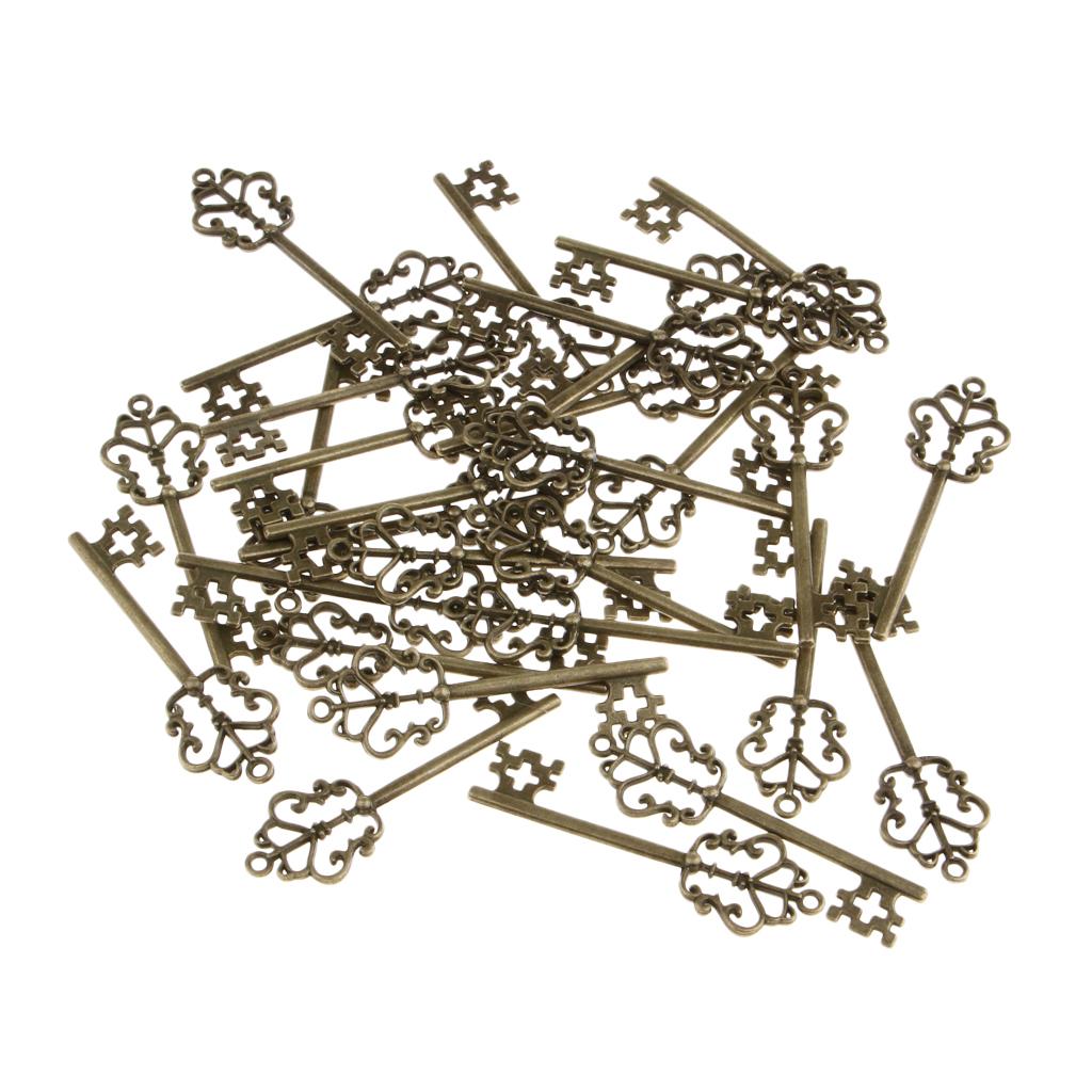 Antique Tibetan Alloy Key shaped charm pendant with filigree hollow crown for Jewelry DIY Making.