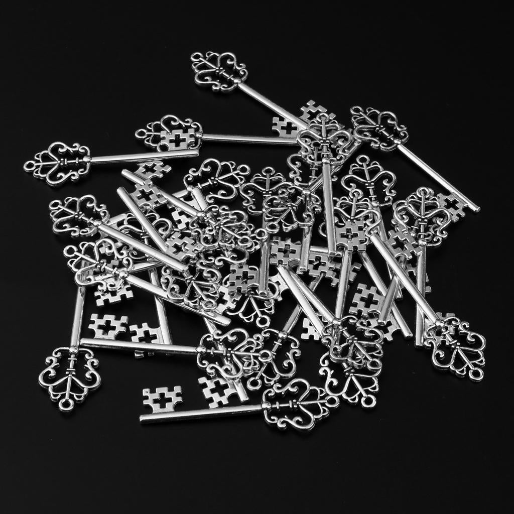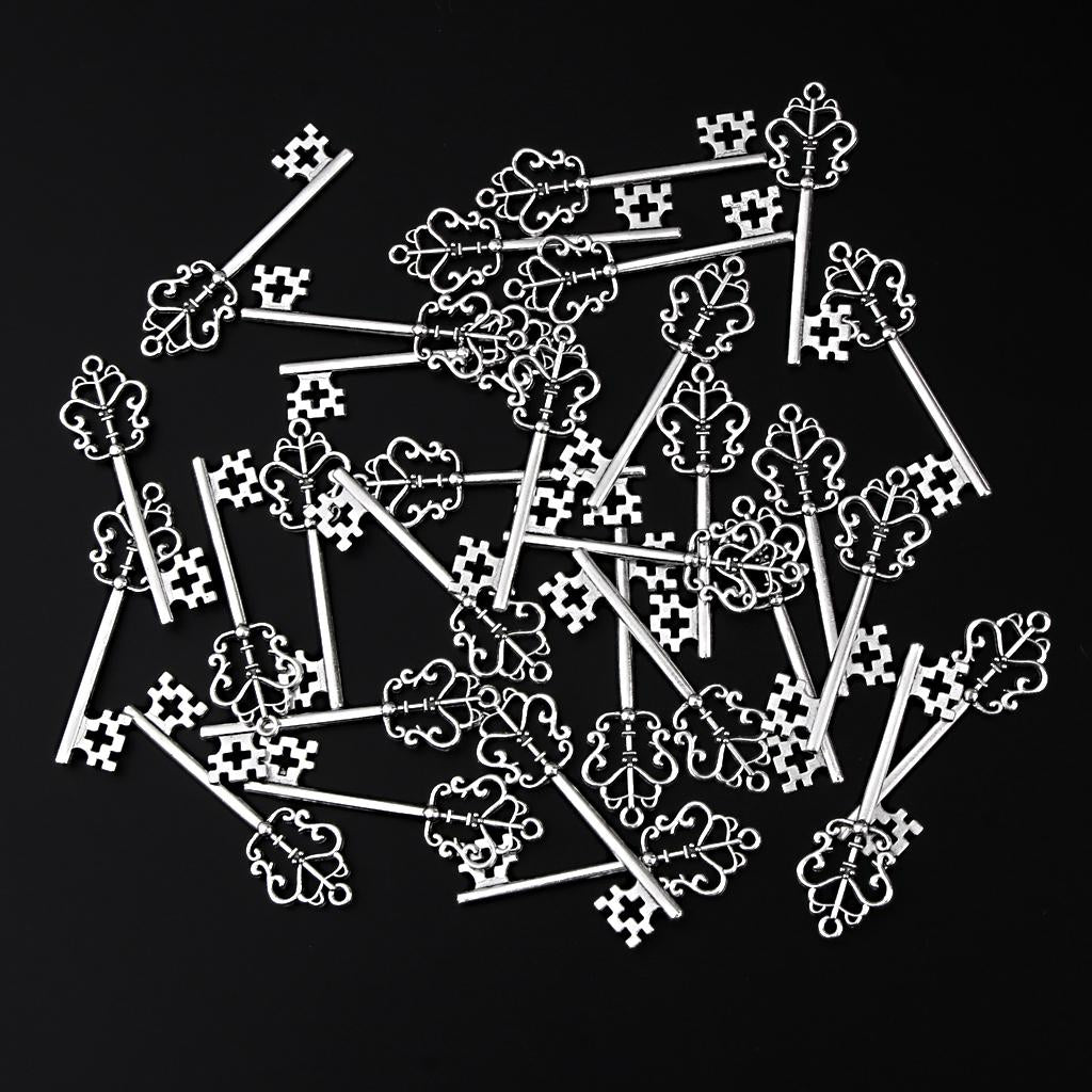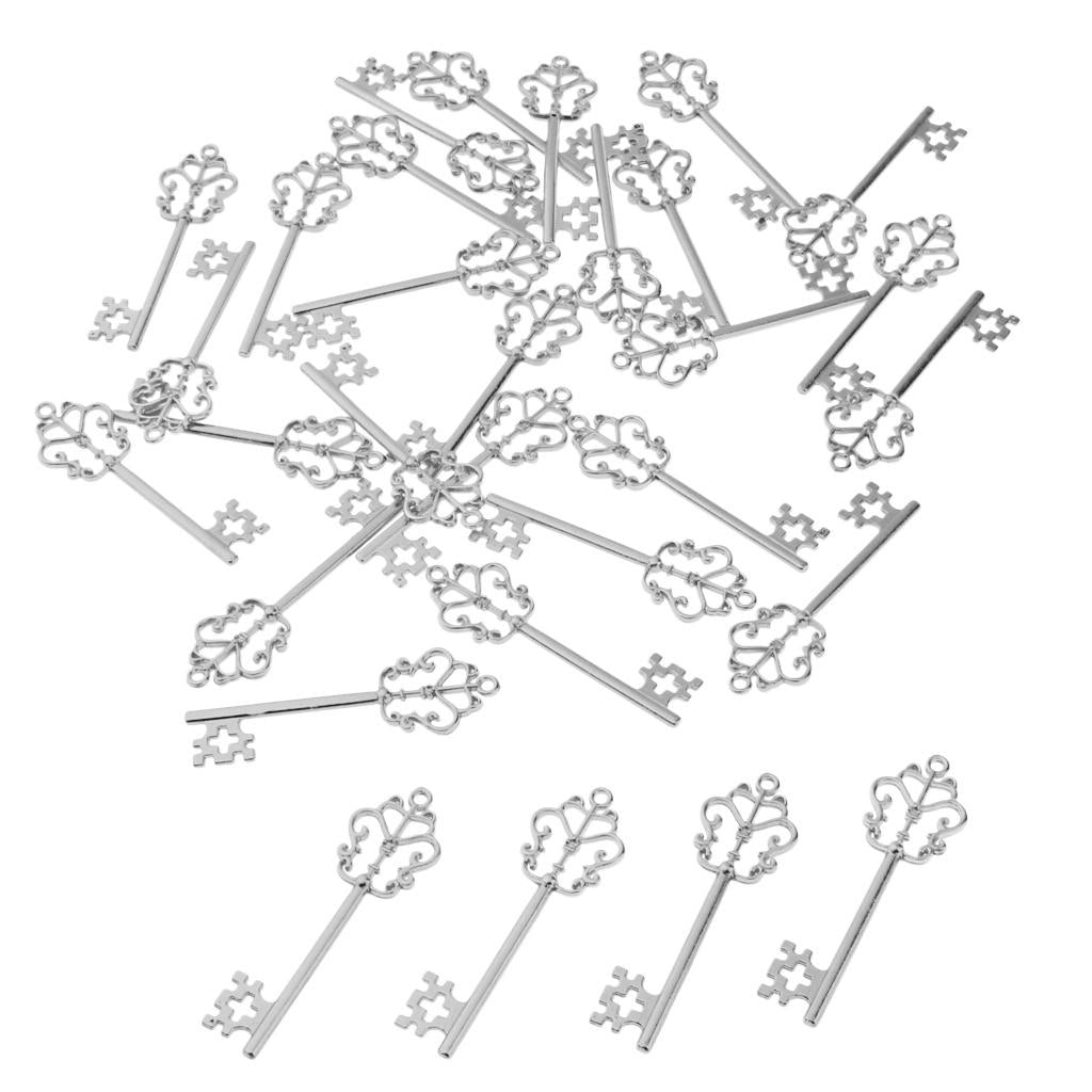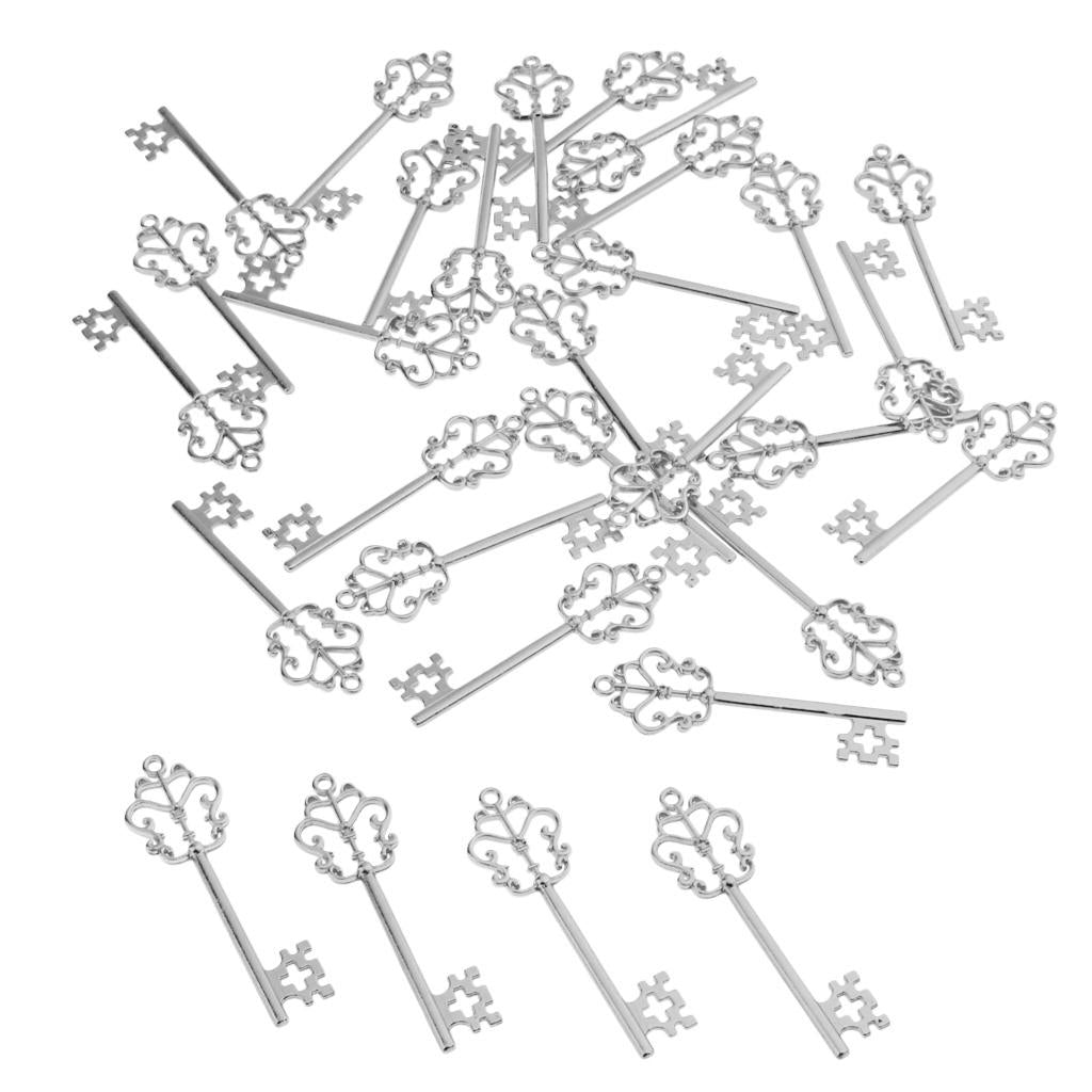 30 Pieces Vintage Key Hollow Charm Pendant Jewelry DIY Making Antique Silver