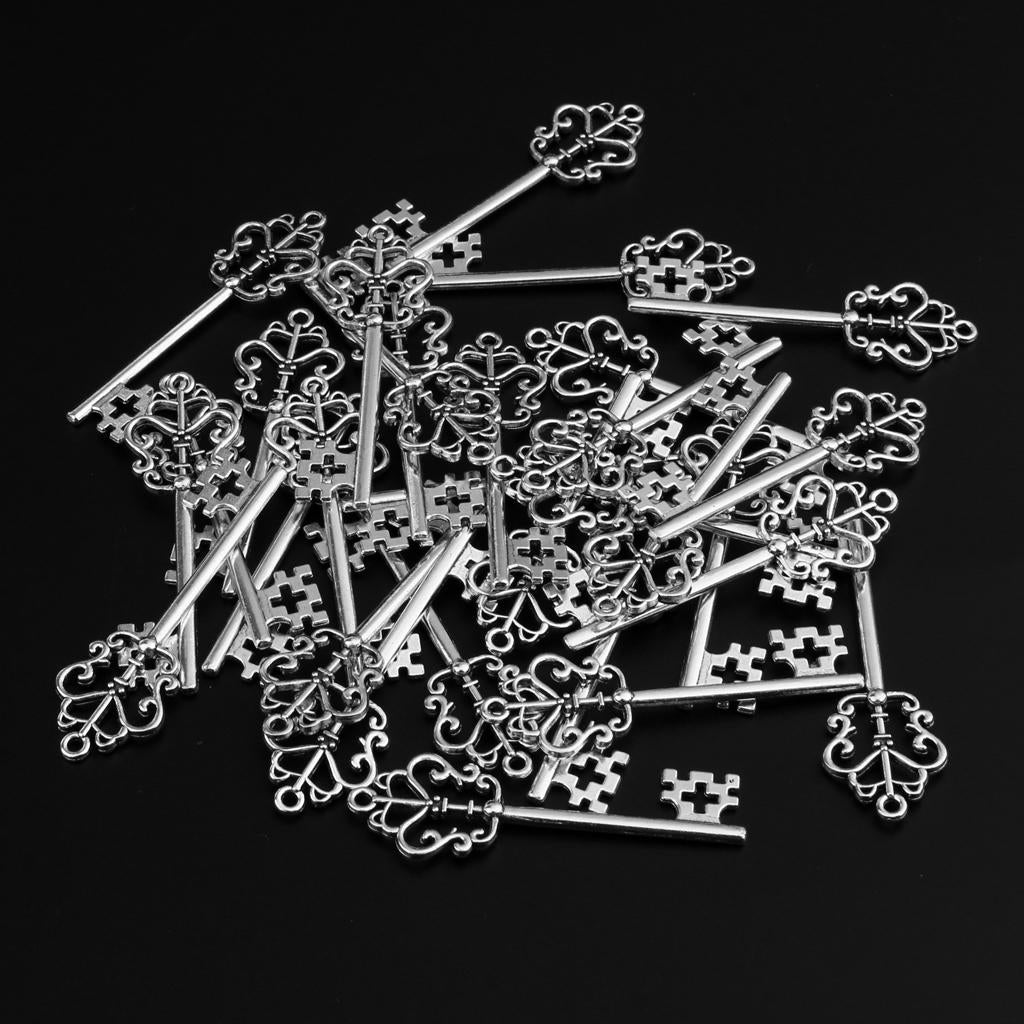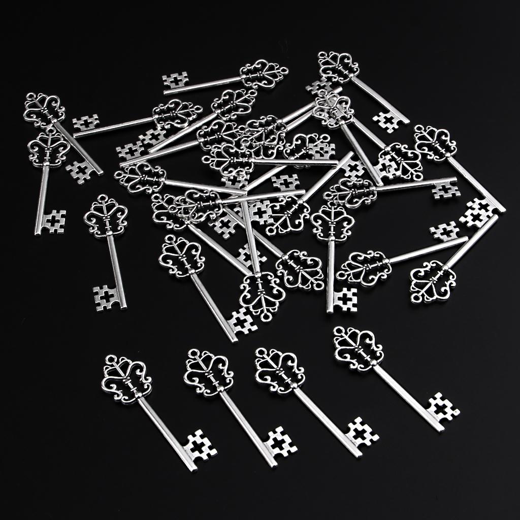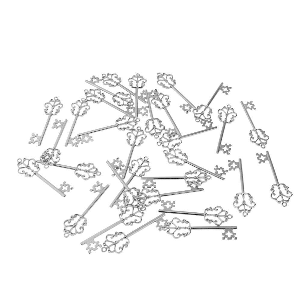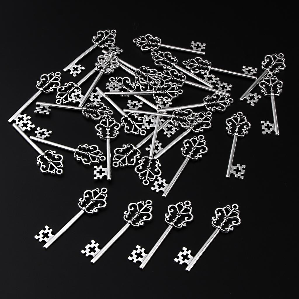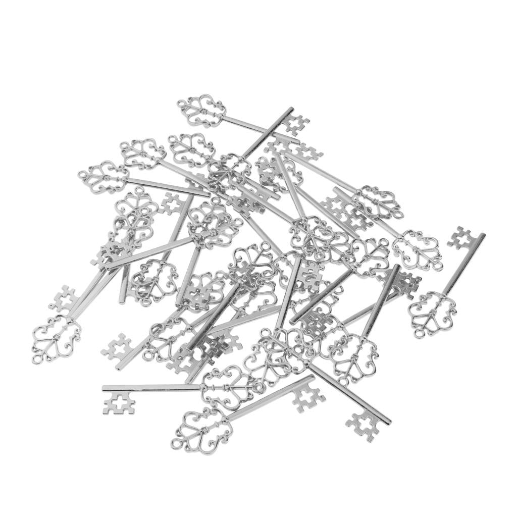 30 Pieces Vintage Key Hollow Charm Pendant Jewelry DIY Making Antique Silver