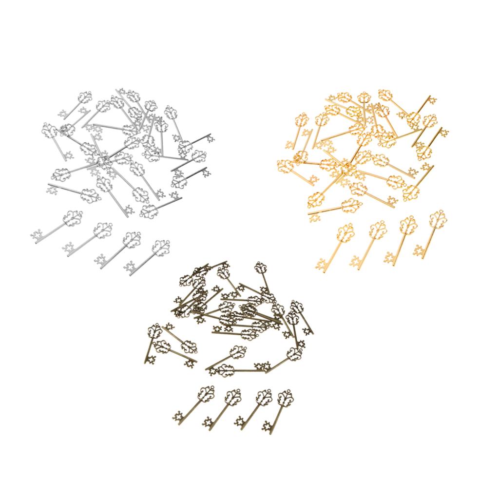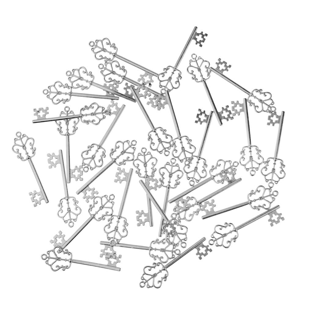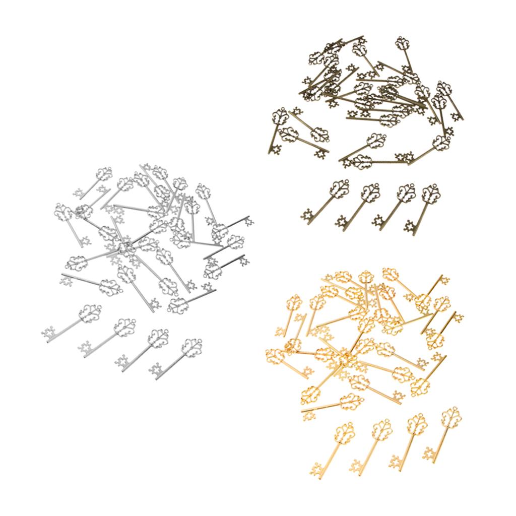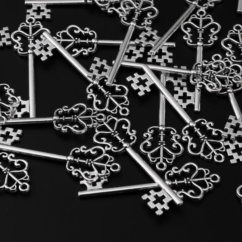 30 Pieces Vintage Key Hollow Charm Pendant Jewelry DIY Making Antique Silver