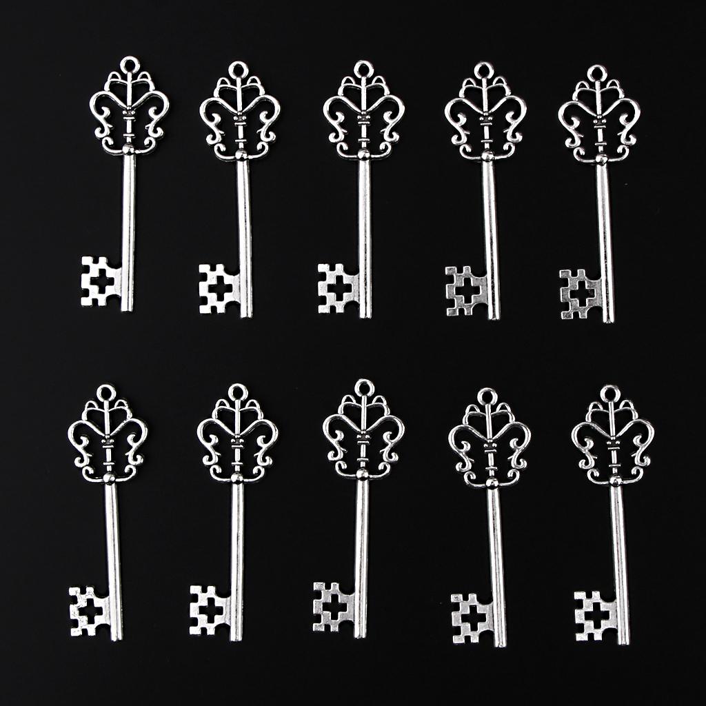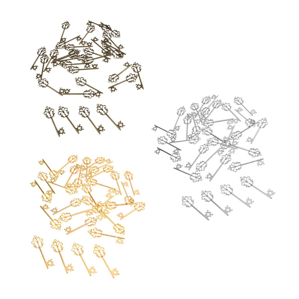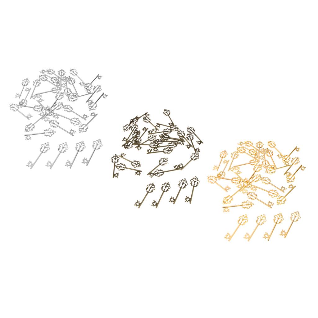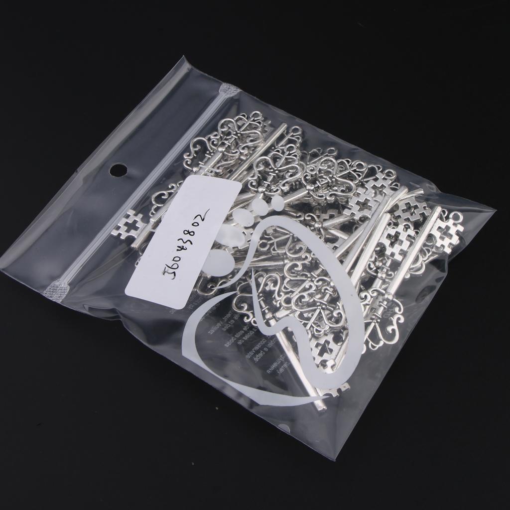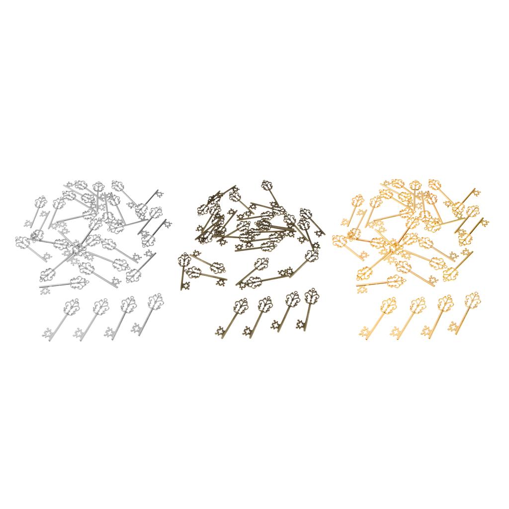 30 Pieces Vintage Key Hollow Charm Pendant Jewelry DIY Making Antique Silver