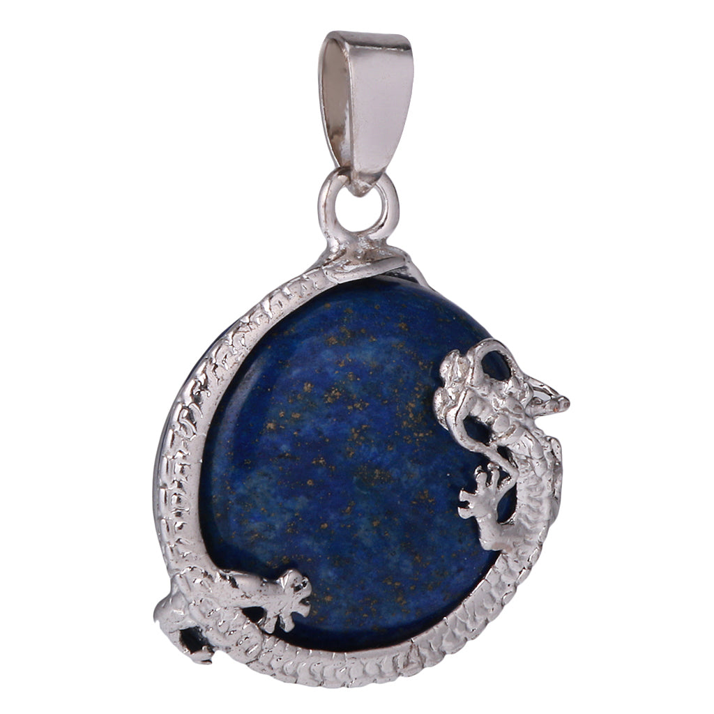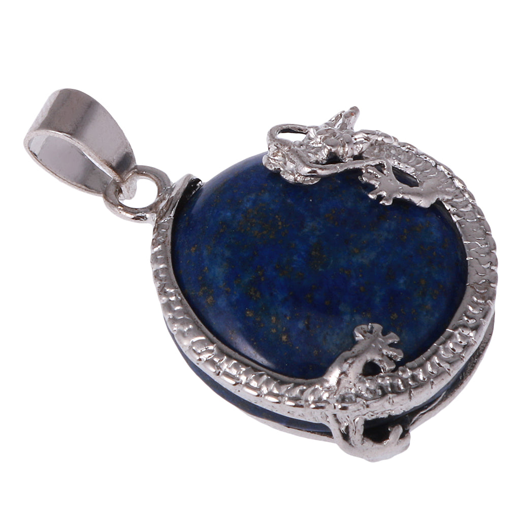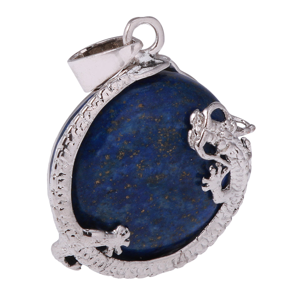 30mm Dragon Inset Gem Pendant DIY Necklace Jewelry Cyan Tapis Lazuli