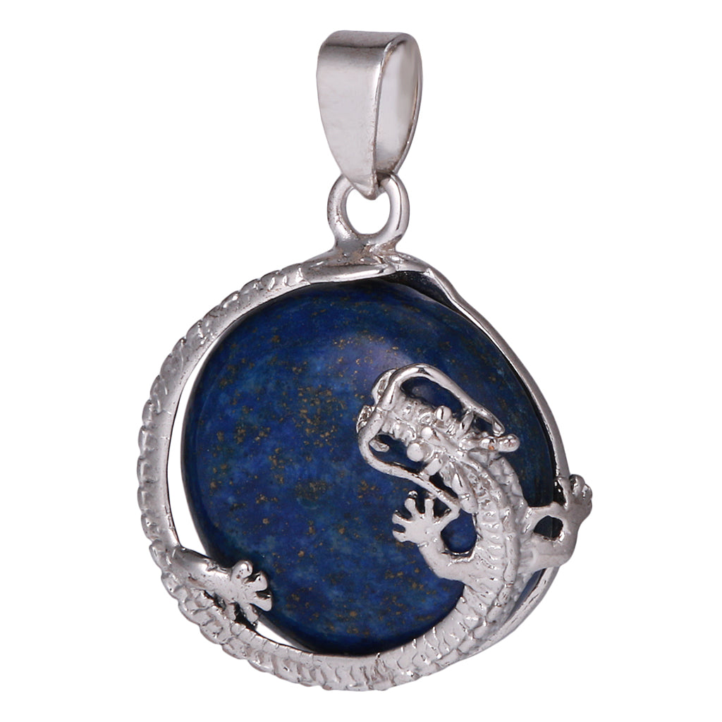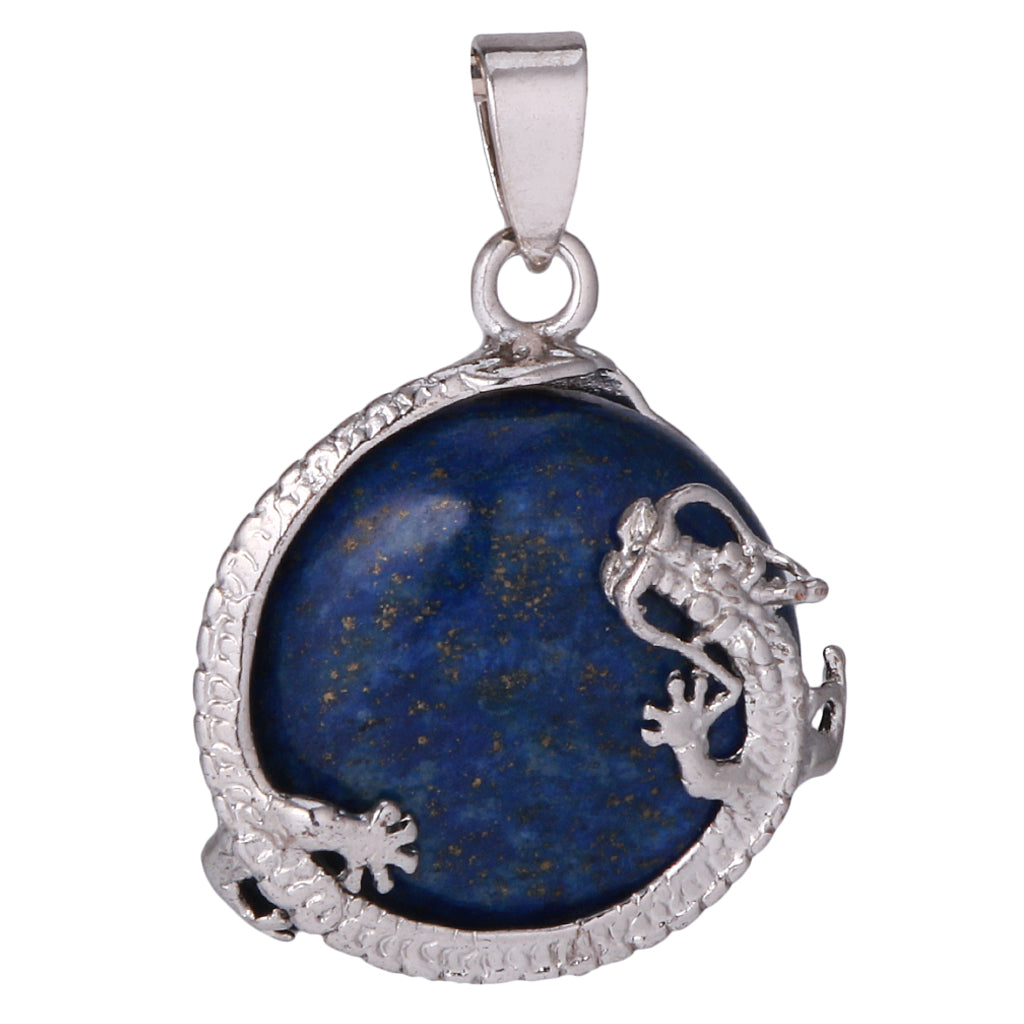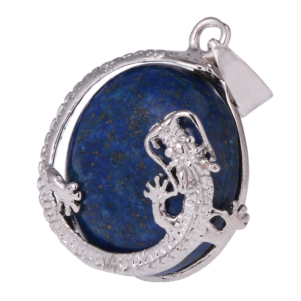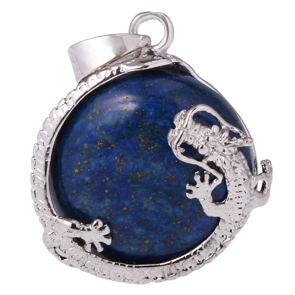 30mm Dragon Inset Gem Pendant DIY Necklace Jewelry Cyan Tapis Lazuli
