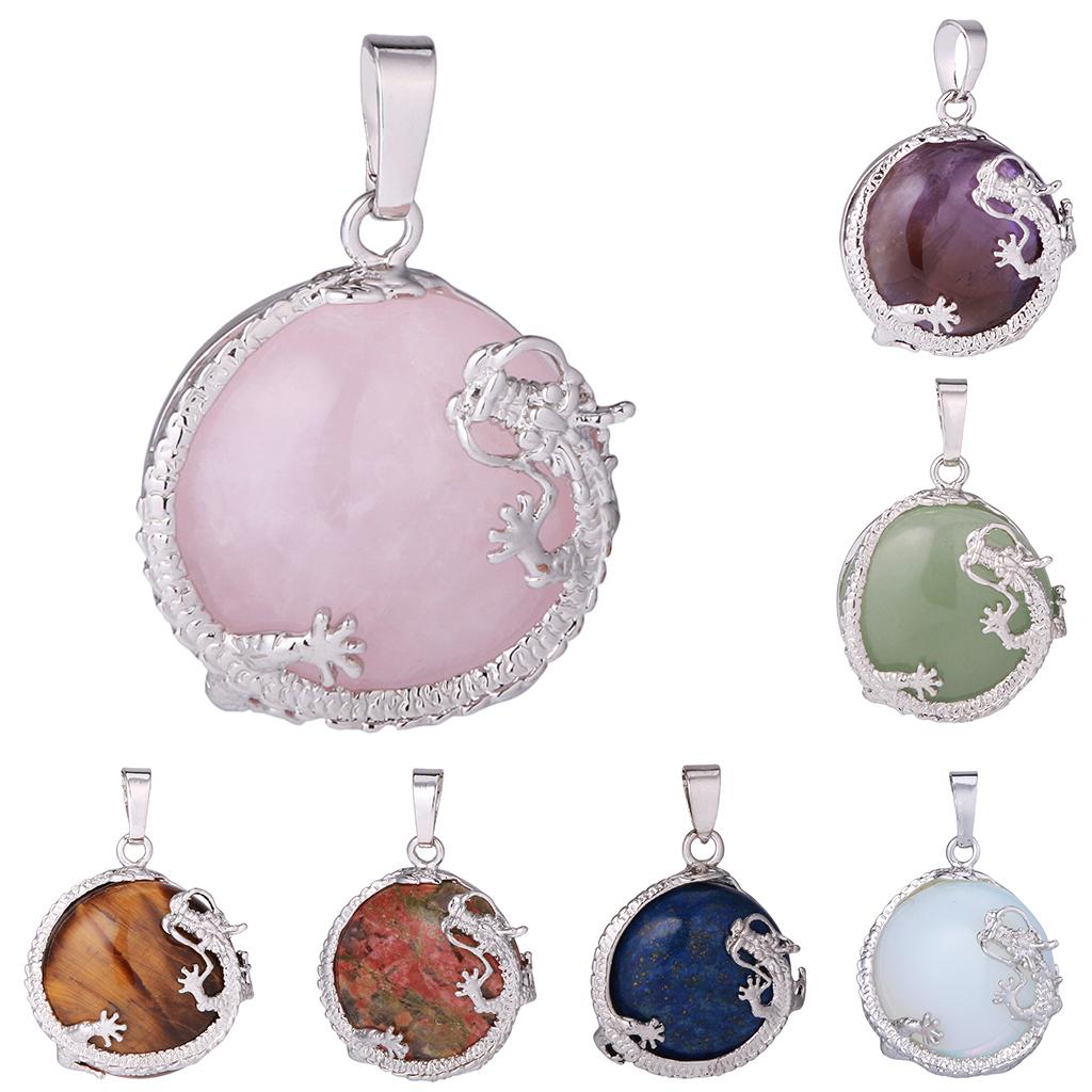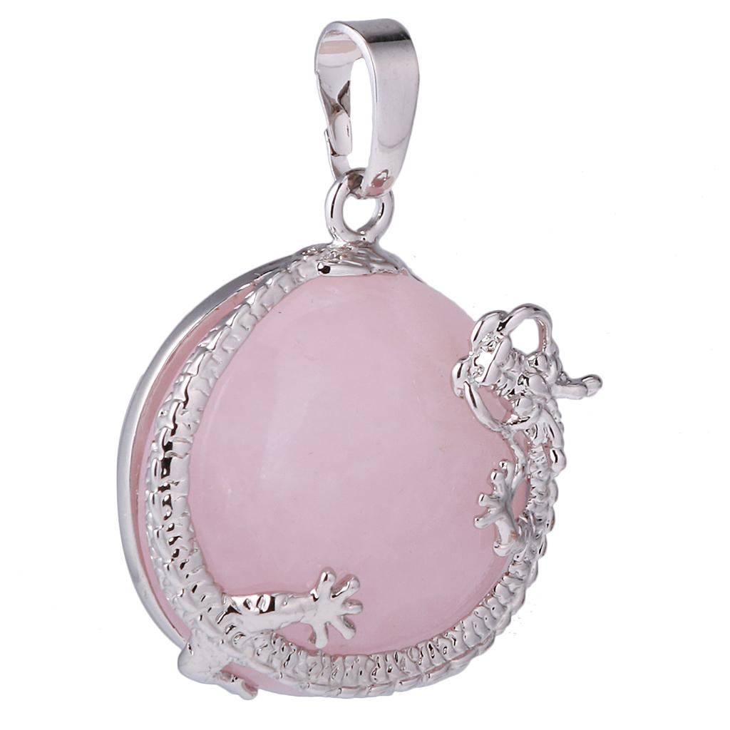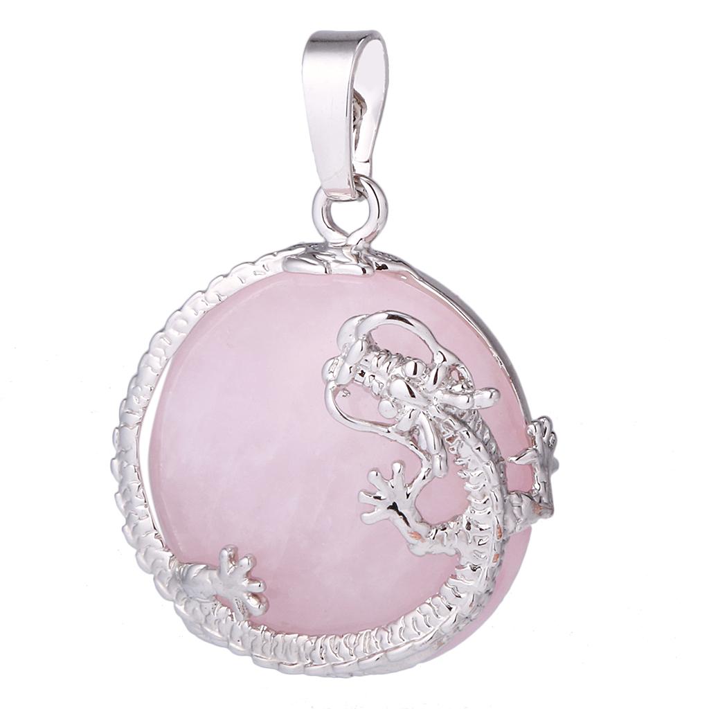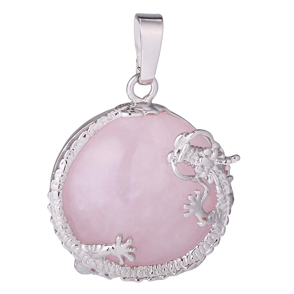 30mm Dragon Inset Gemstone Pendant for DIY Necklace Jewelry Making Pink