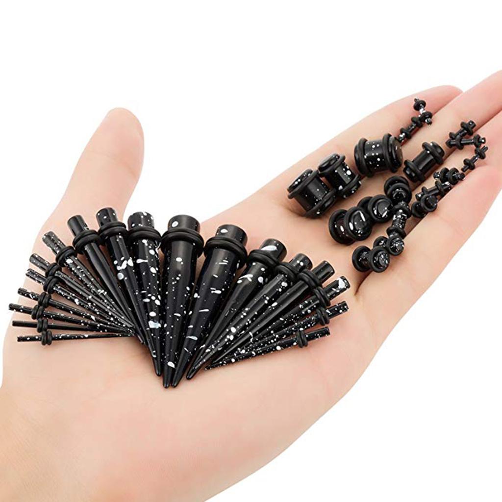You will receive 36 Pieces ,18 Pieces Acrylic Ear Taper Stretching Kit 14G - 00G And 18 Pieces Acrylic Double O-Ring Plug Set 14G - 00G Ear Expander Kit