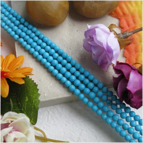 4mm Blue Turquoise Round Gemstone Loose Beads Strand 15.5 Inch