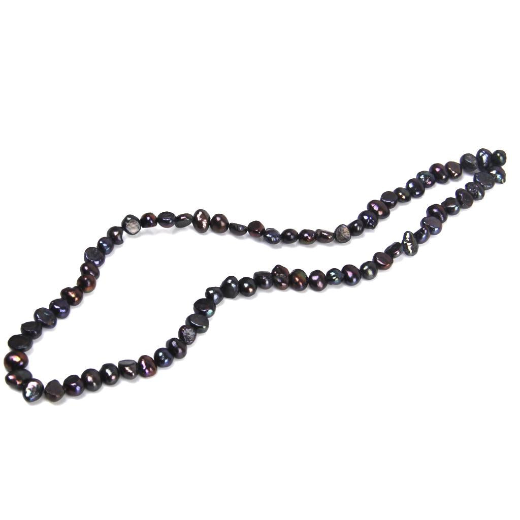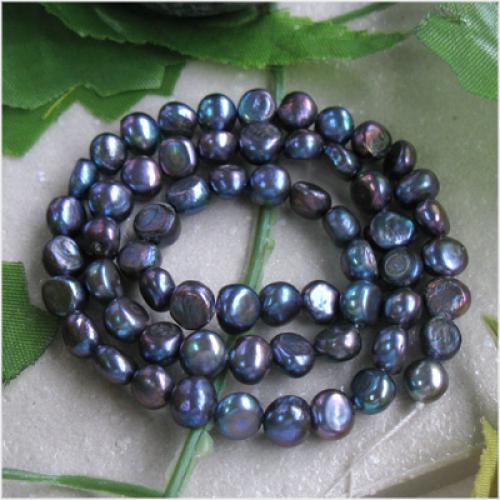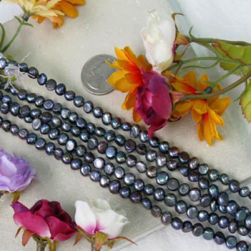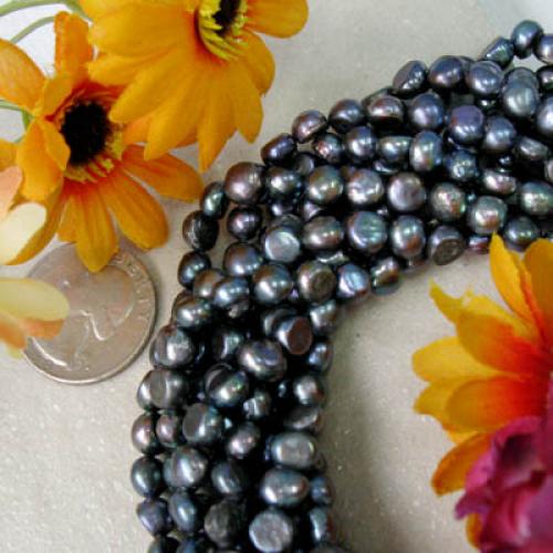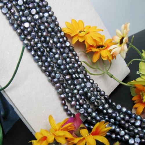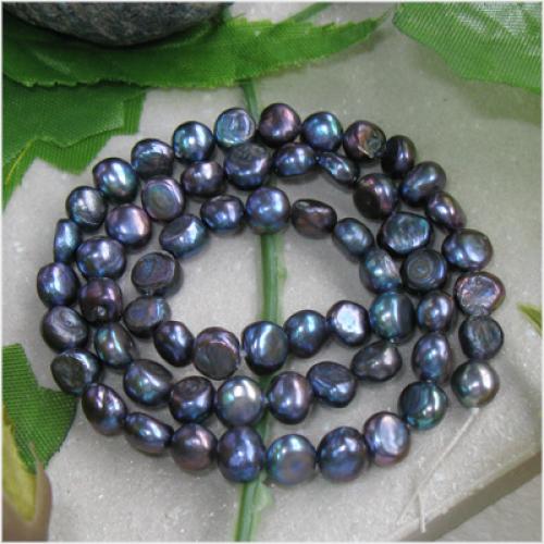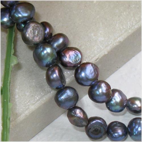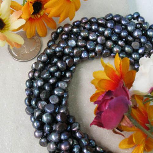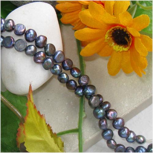 The fashionable Peacock Black freshwater cultured pearls are great for all kinds of jewelry, and have a shiny luster. Pearls are flattened button strung from side to side. They look especially good when you twist multiple strands together.They are good for necklace, bracelets and earrings.
