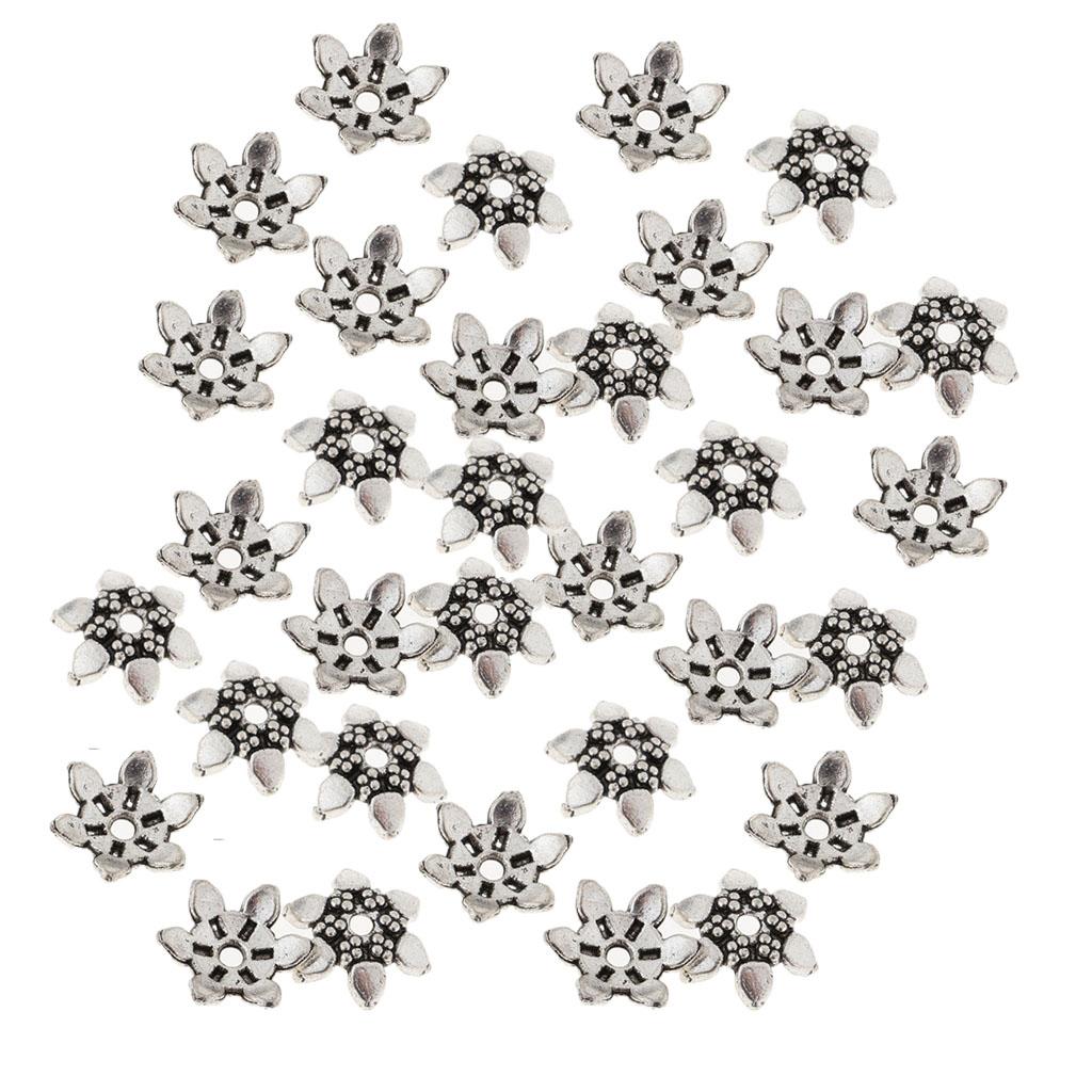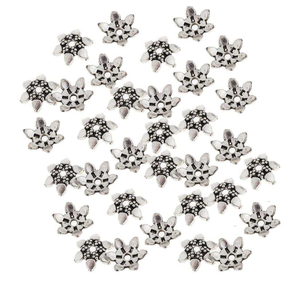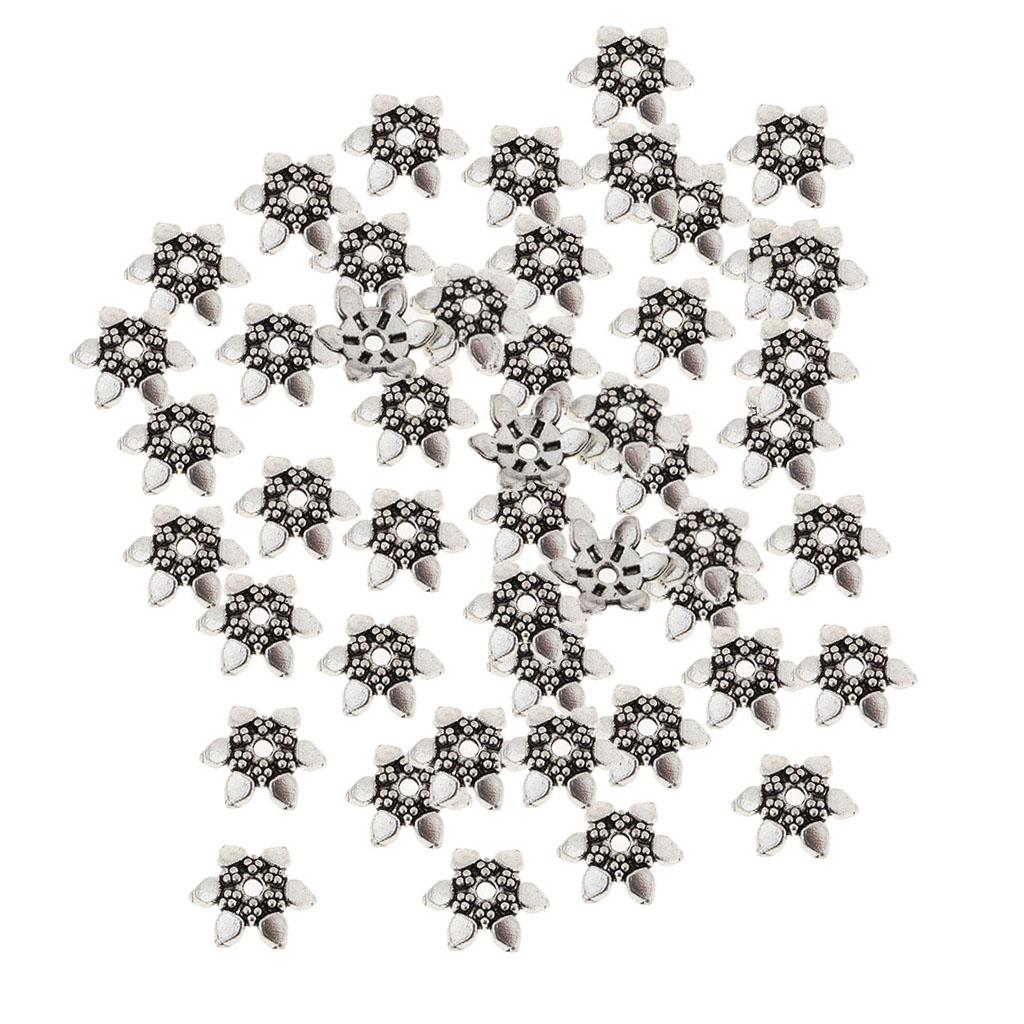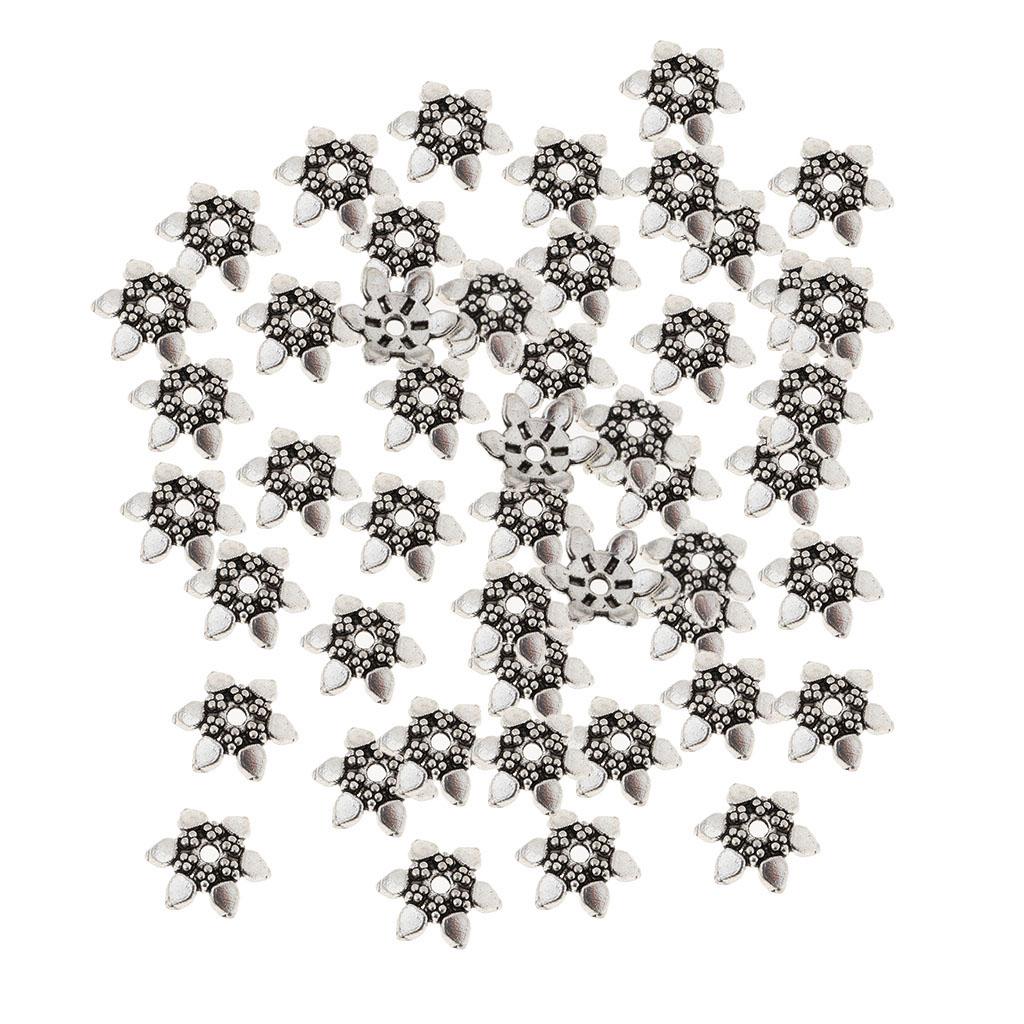 50Pcs Antique Silver Filigree Pendant Bead Flower Spacers For Jewelry Making