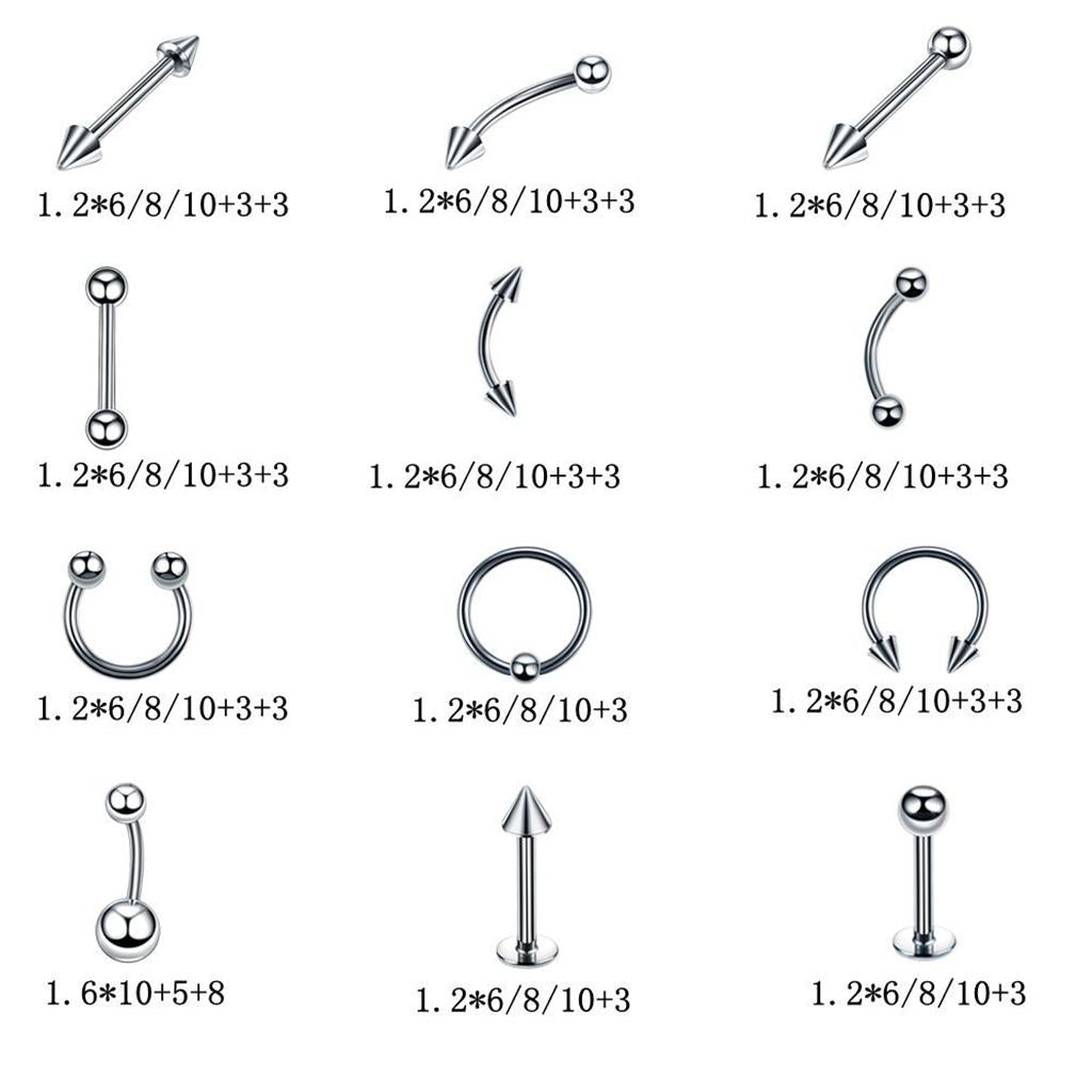 12 Different Kinds Piercing Styles, You Can Use Them To Your Lips,Tongue,Navel,Eyebrows and Noses;Value Pack In Velvet Bag,It is a Good Gift for Your Lover,Family,Friends and Coworkers.
